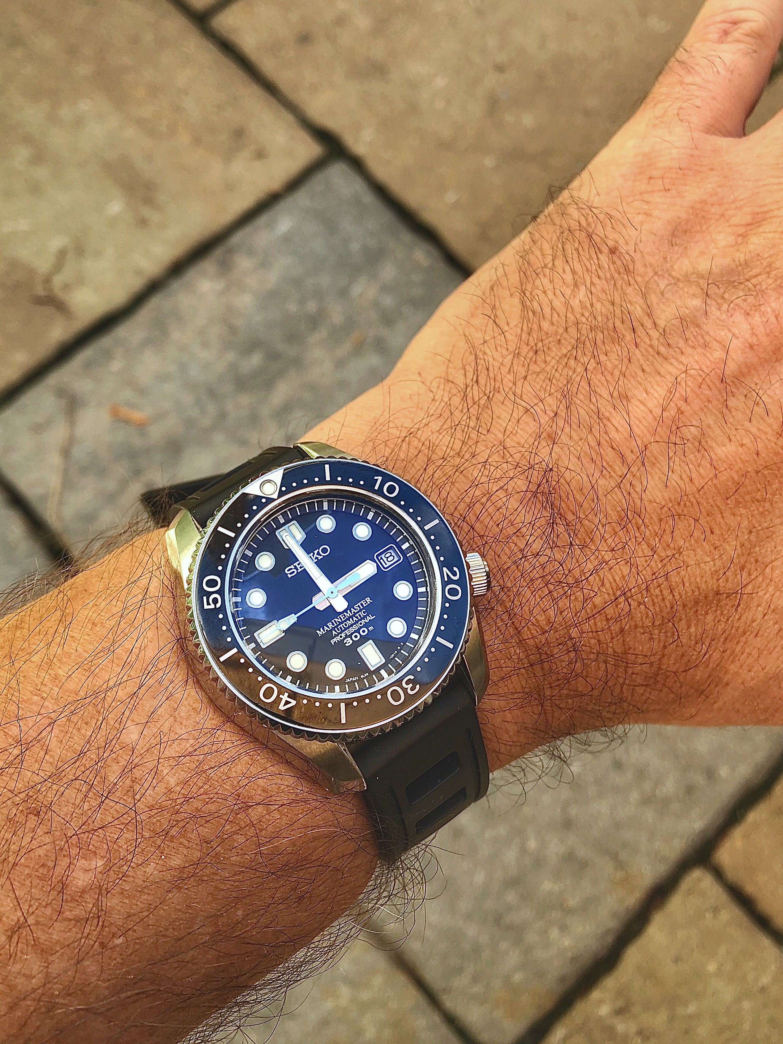 On my wrist is a Omega Seamaster 300M in blue. It's been my daily wearer for over 18 months and I love it.