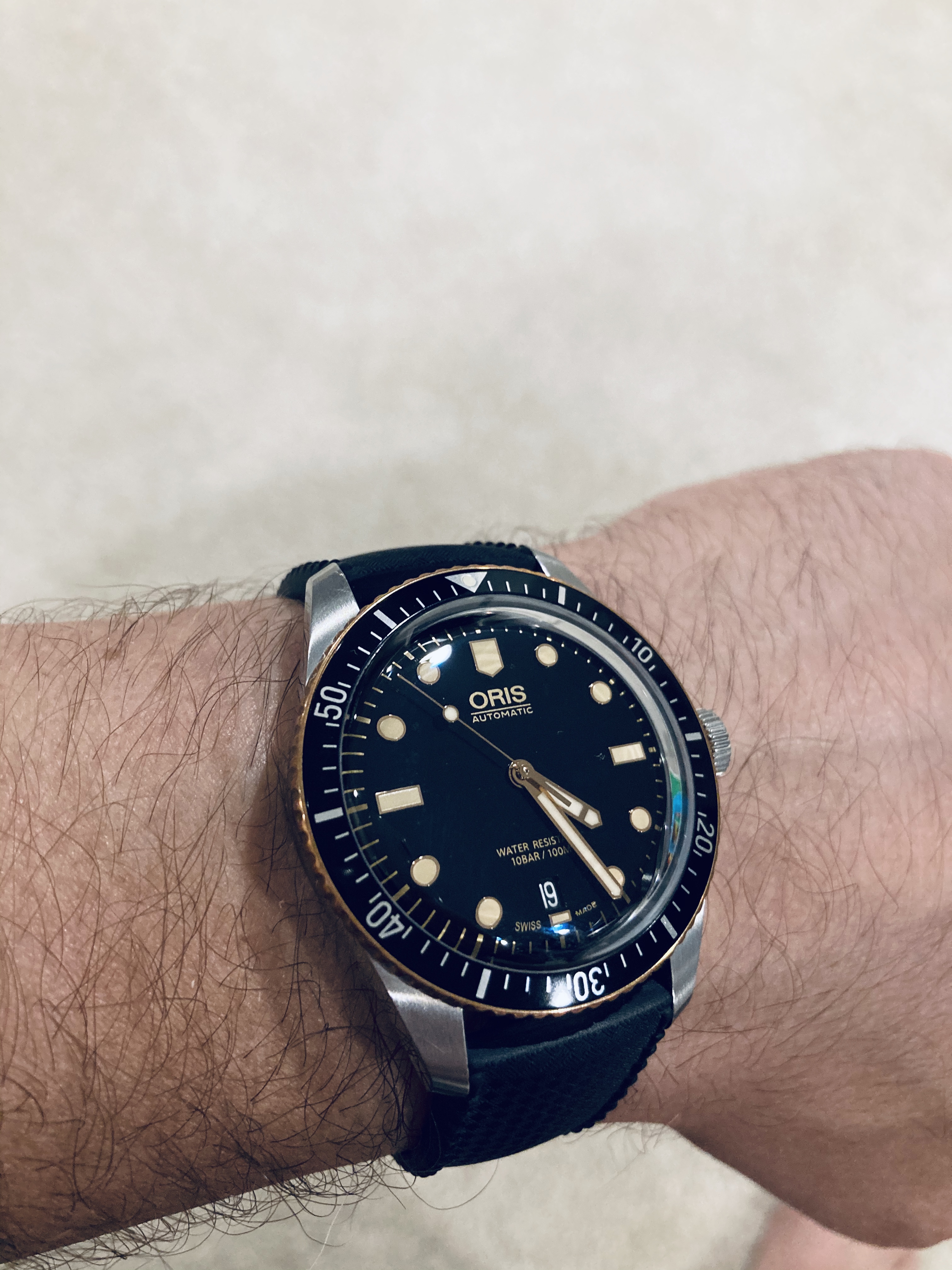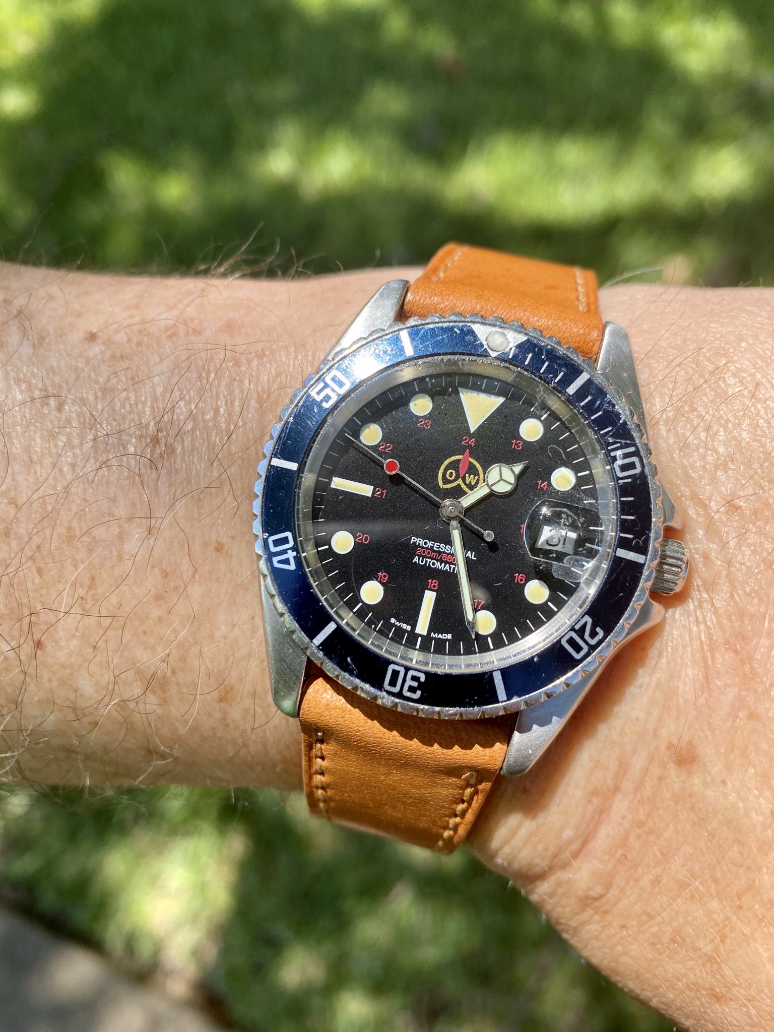 Insanely rare Ollech & Wajs Precision Sportsman’s Chrono-Sailer w/Yachting Bezel attaches and Tidal Bezel to the left. While the Precision Diver was marketed mainly towards GI’s during Vietnam, O&A sold these Sportsman’s with 4 interchangeable bezel inserts (Tidal, Diving, Yachting & International) to the civilian population during the same time. Rarely have I seen any of these bezels except the diver.