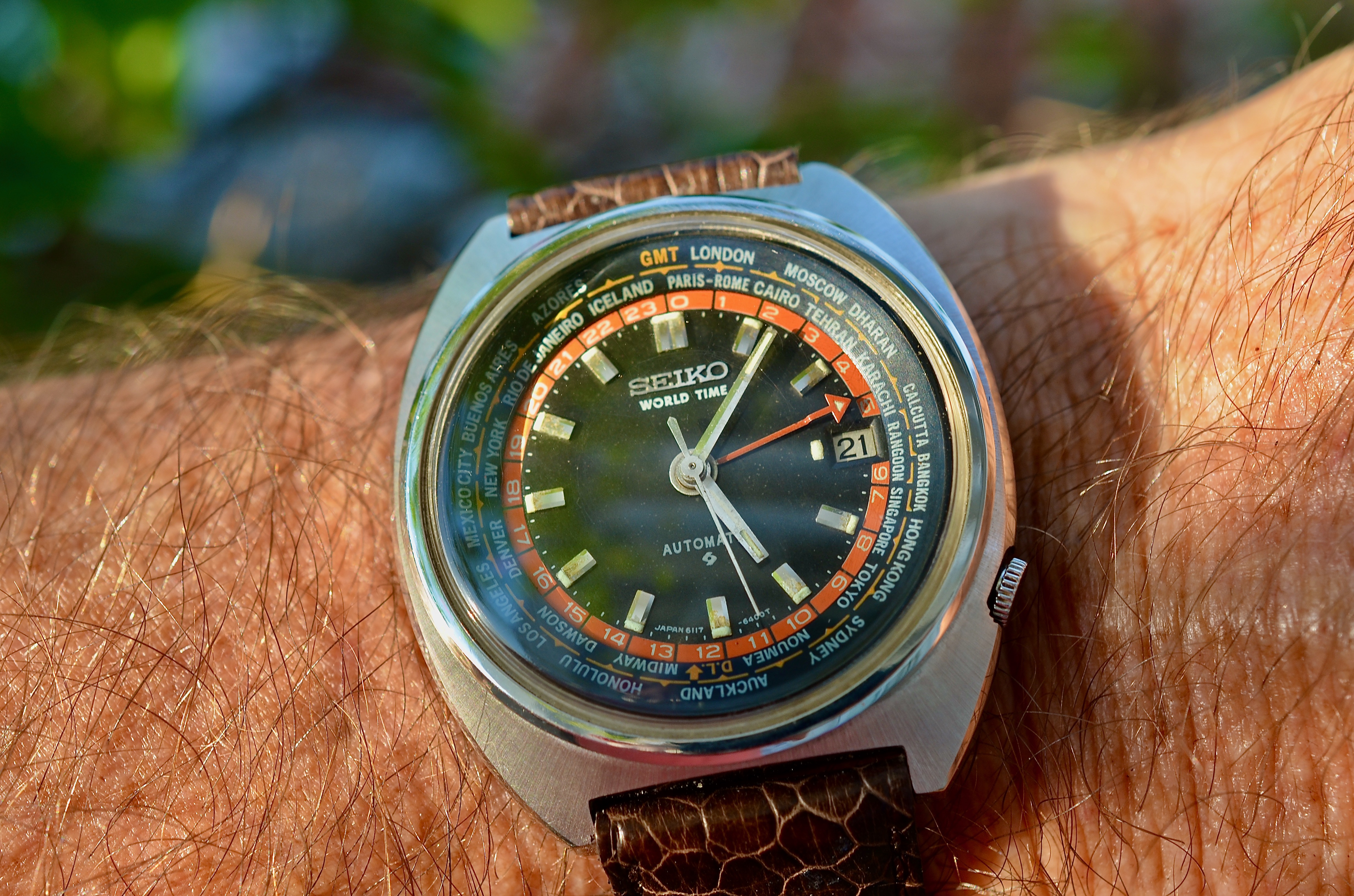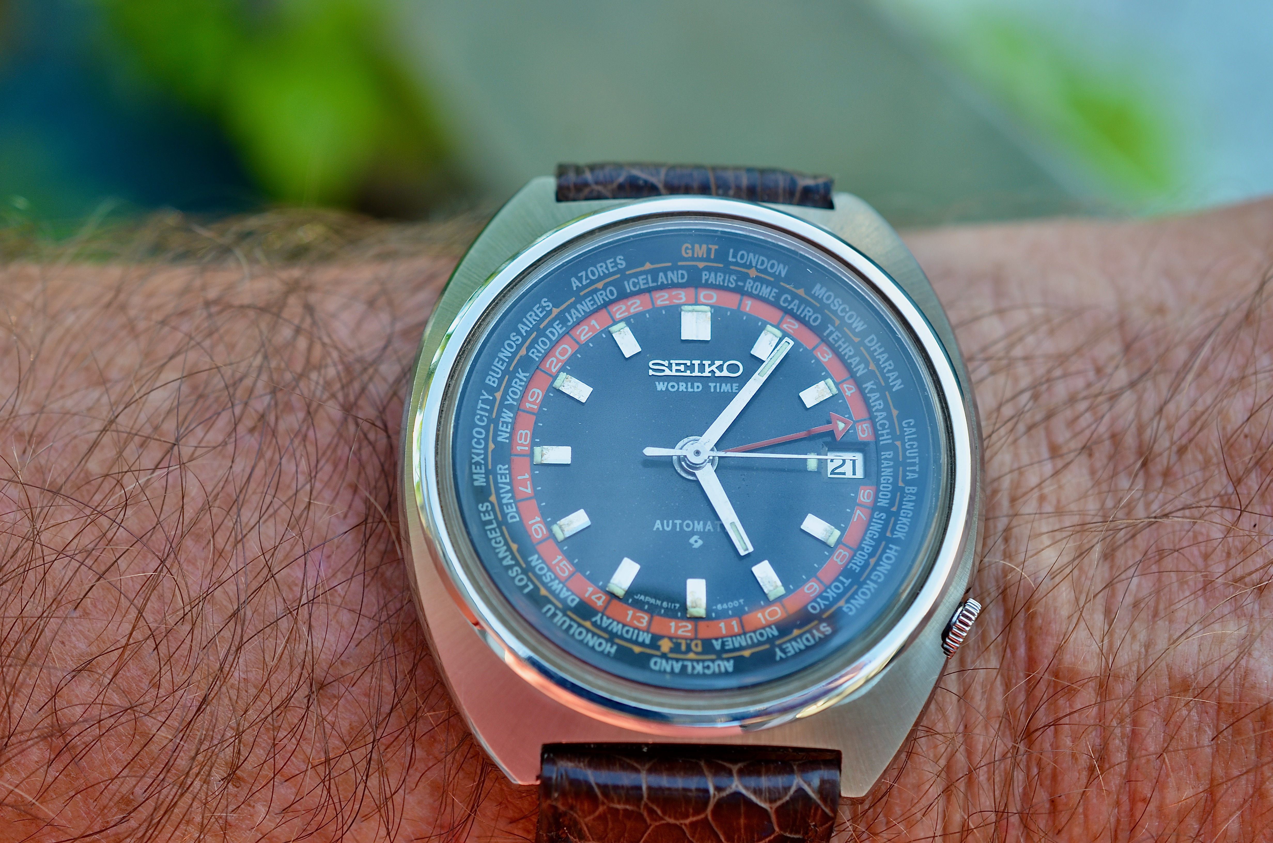 A little World Time love for Friday cocktails. The little step in the GMT hand so that it clears the hour indices is a cool detail (more evident in the second pic).