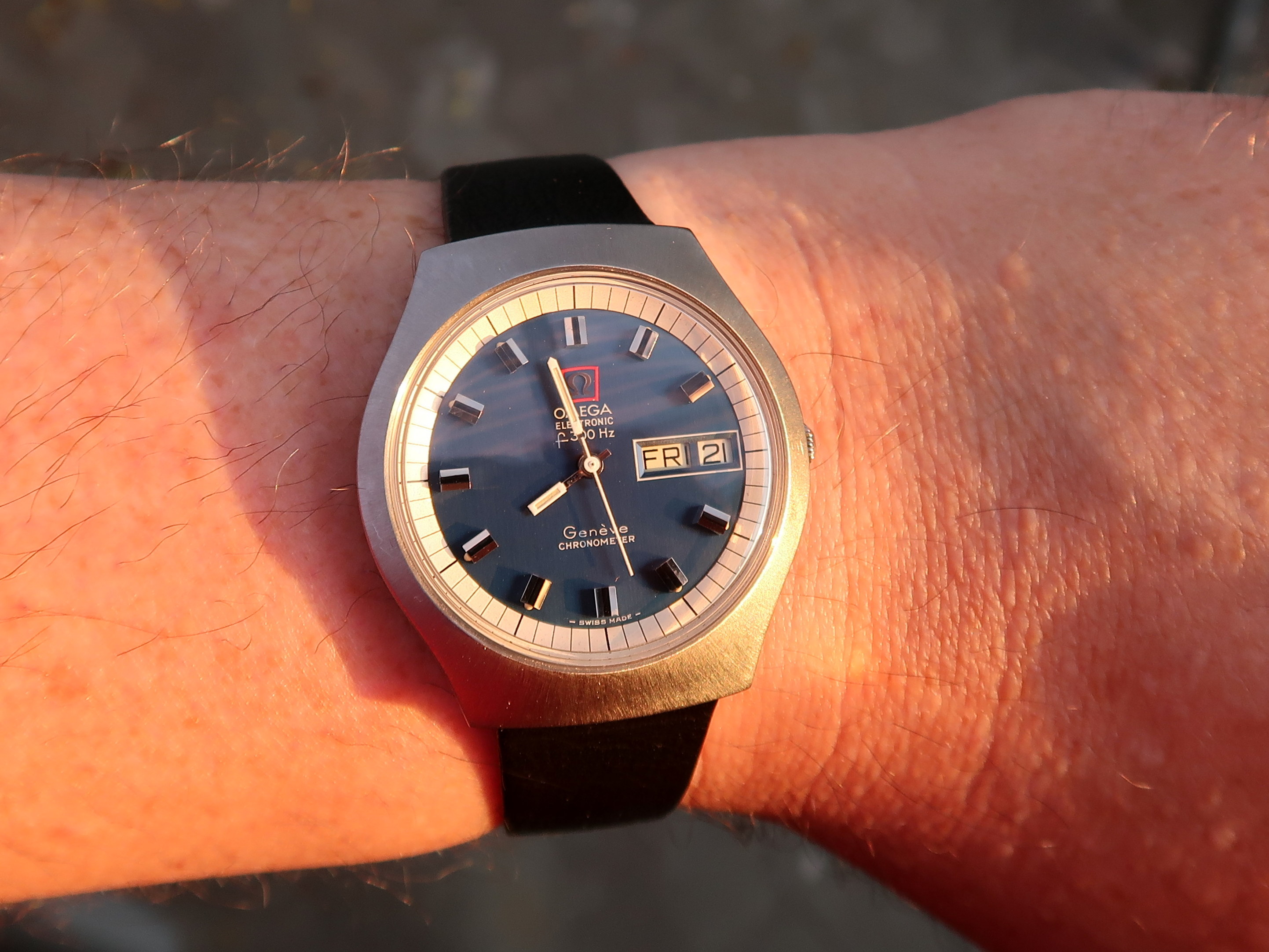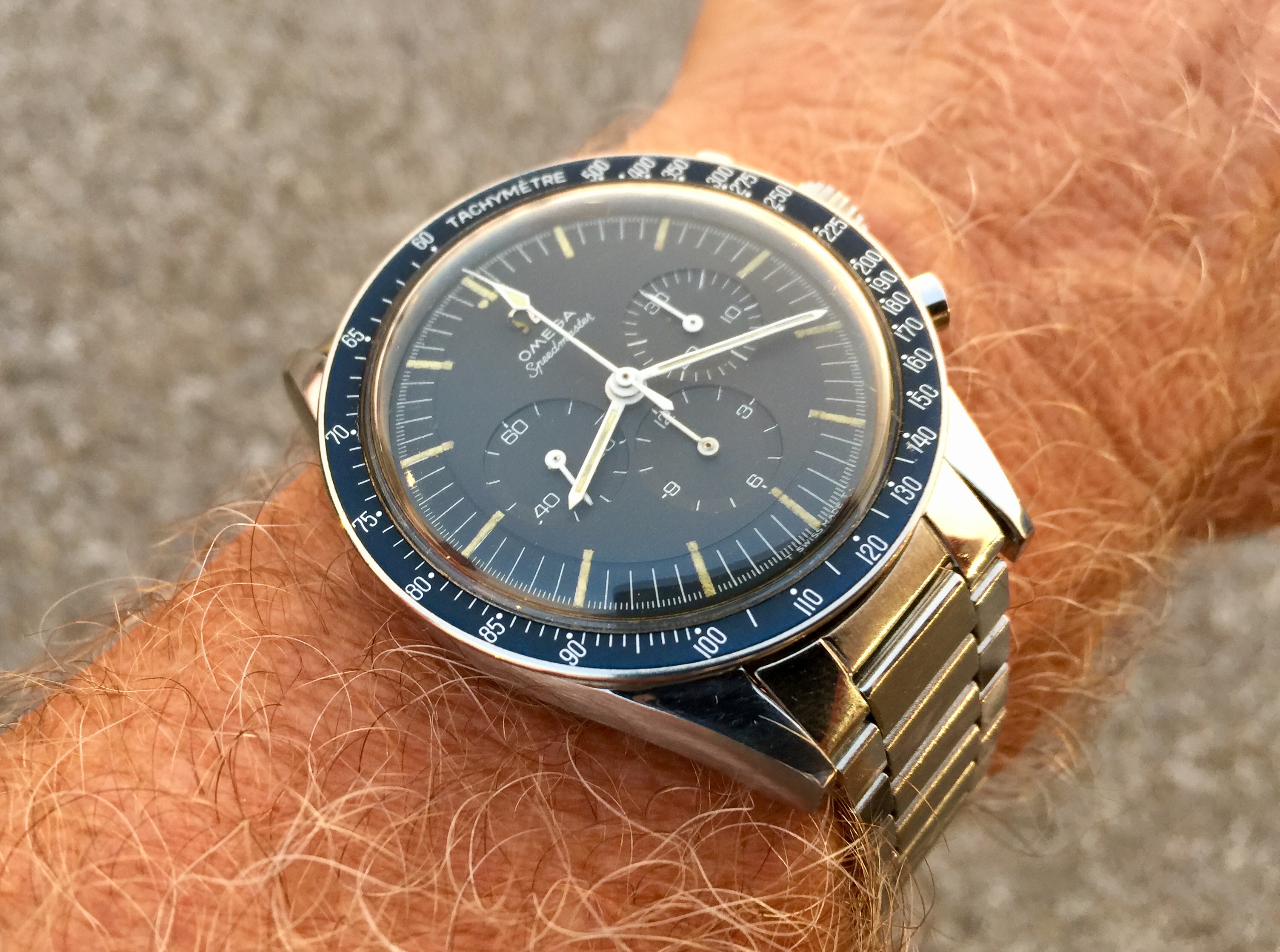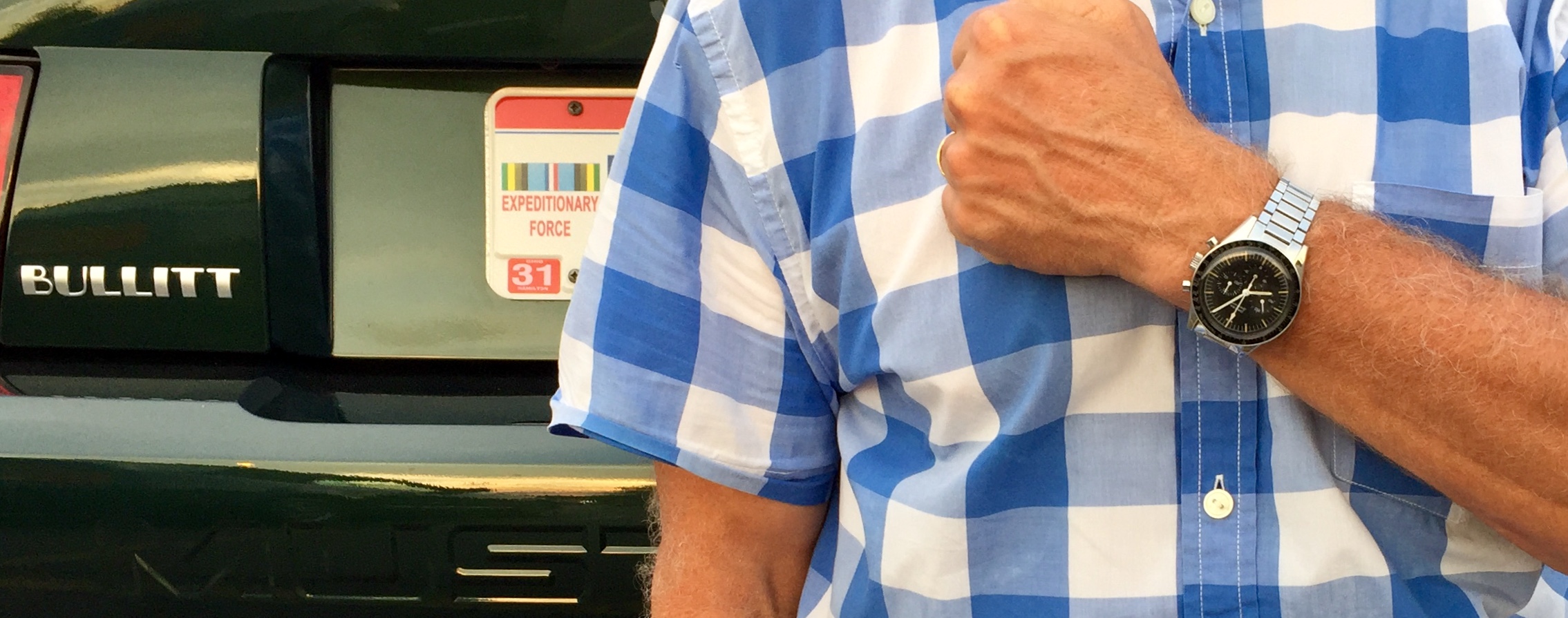 Astronaut watch, astronaut shirt...but NOT an astronaut car. At the local Friday cruise with my Omega 105.003-64 and my 2001 Ford Mustang Bullitt GT...