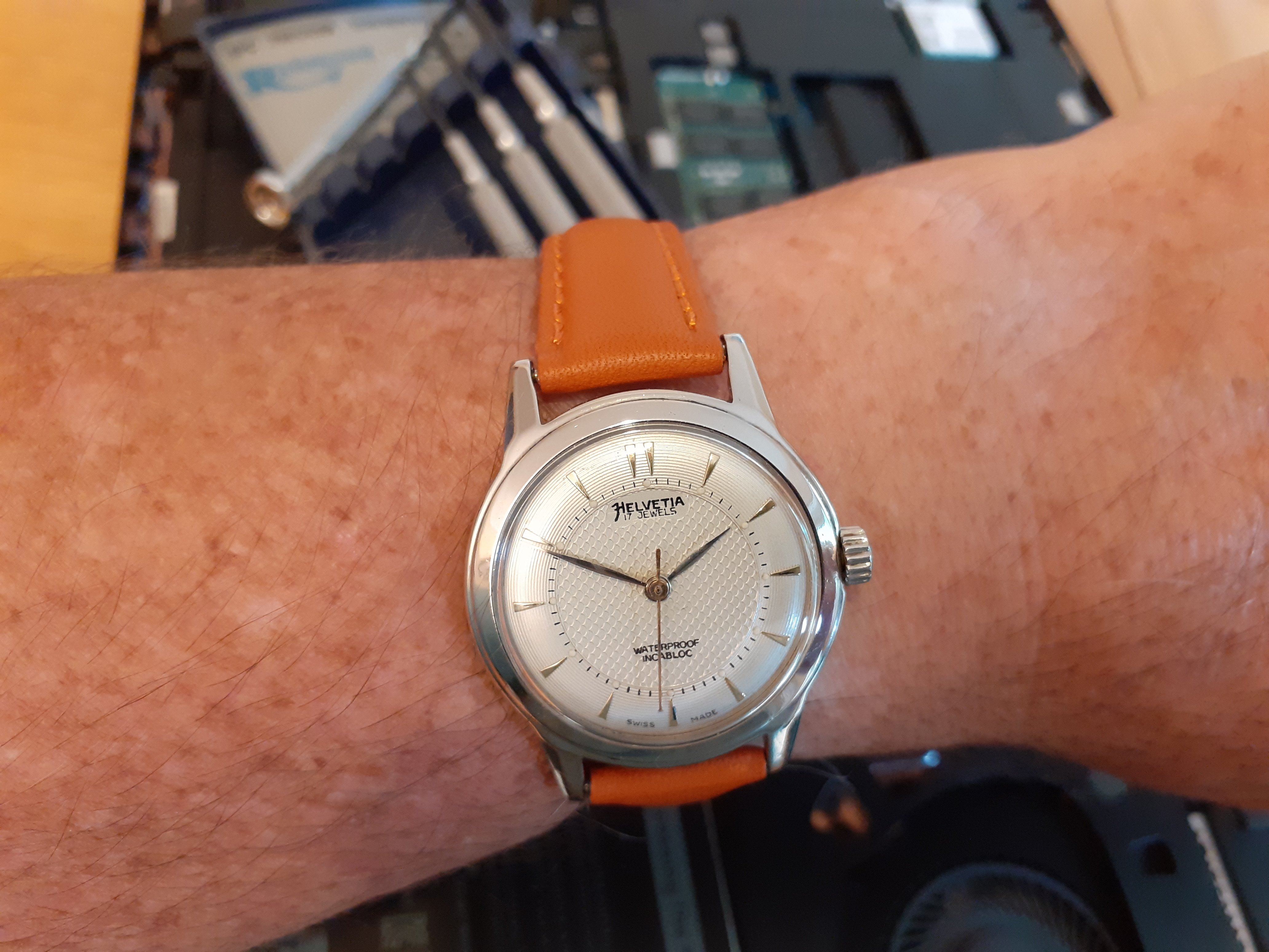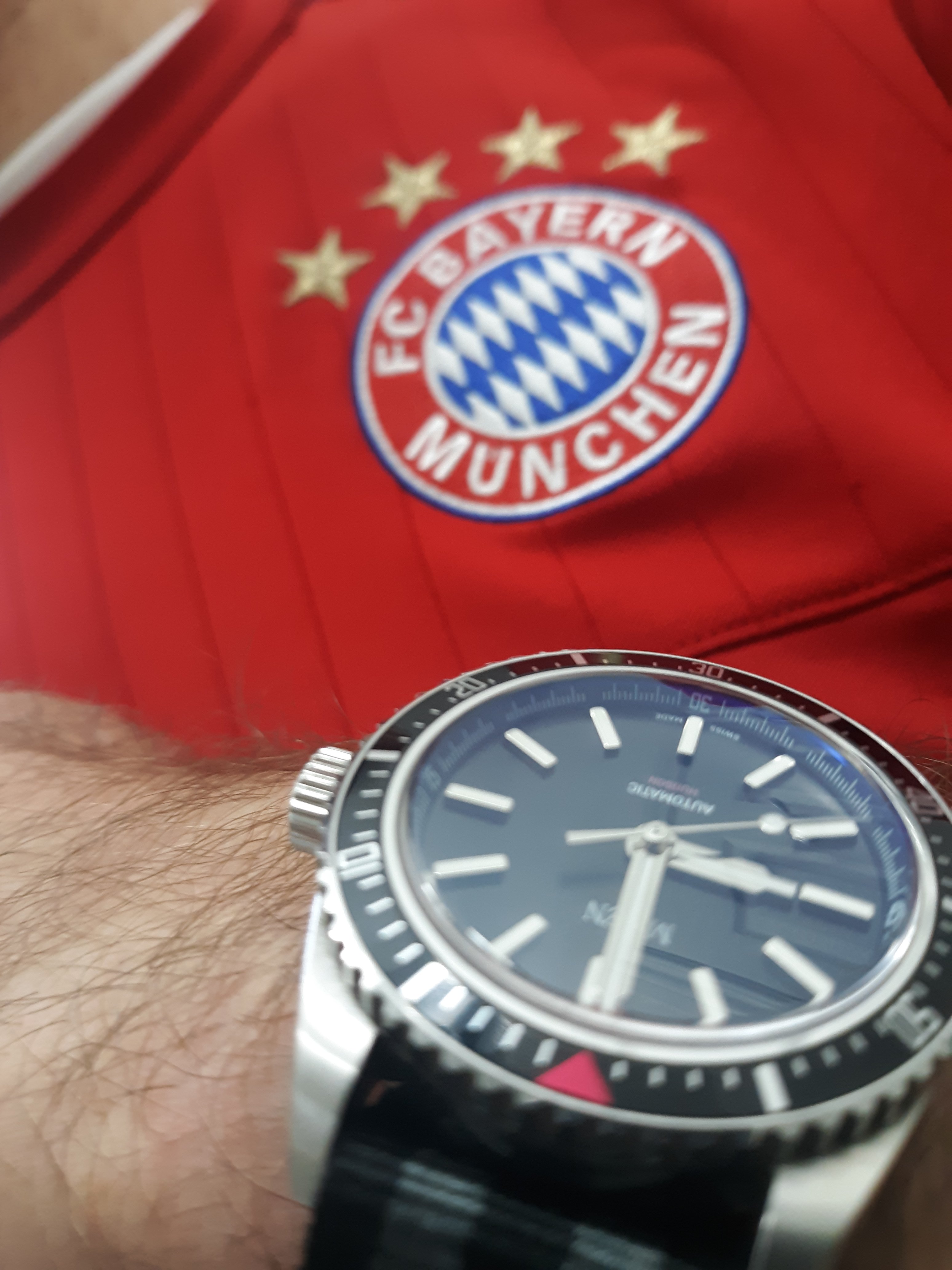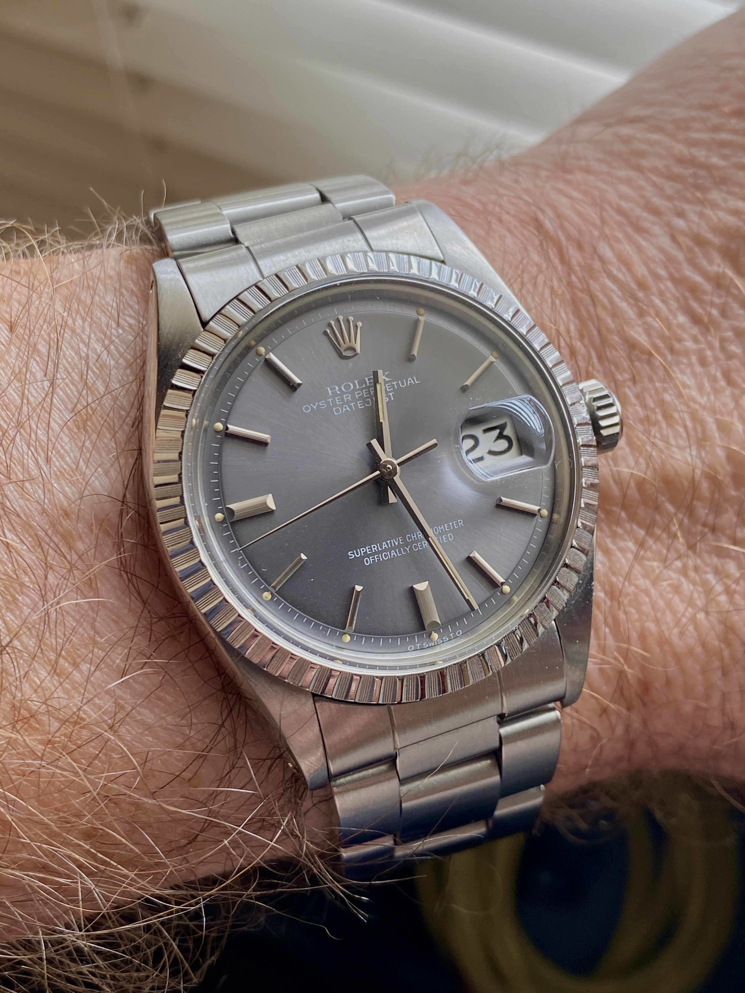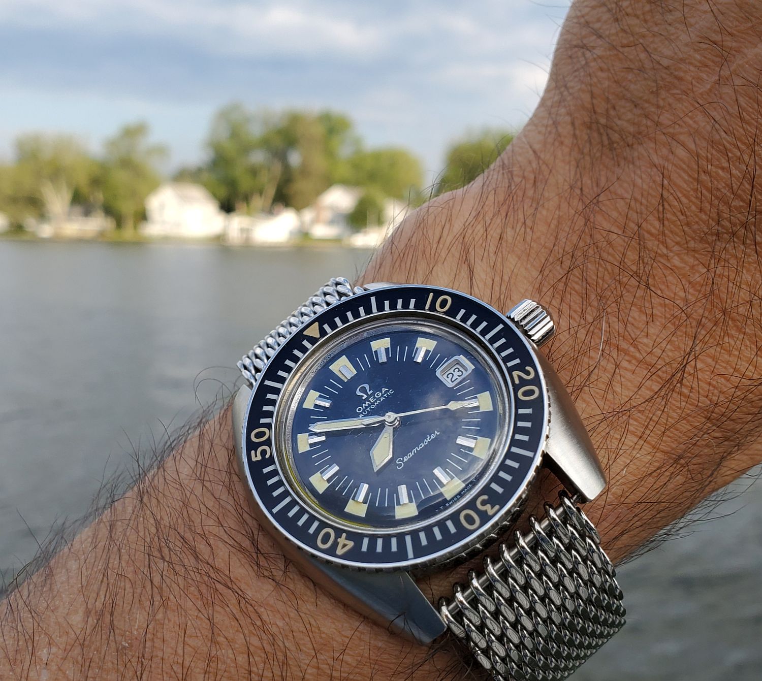 Bought this odd 70s Glycine diver from Analog/Shift back before they went legit. Can’t find much in the way of info about it online, and it doesn’t get much time on the wrist. But when it does, I always enjoy the cushion case and the radial finish on the dial.