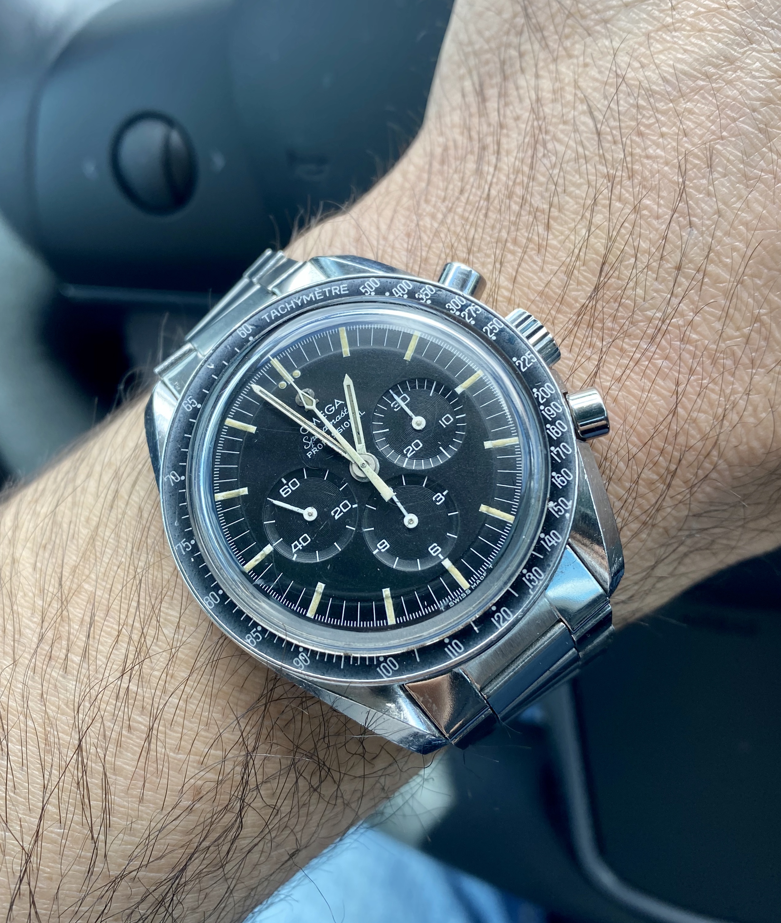The Omega date at 6, caliber 355, bumper automatic I have worn continually now for about two weeks. This one also has been a challenge! It is little wonder to me how vintage watches end up being retired. If an owner had to pay someone like me to coax one of these old babies back to life, the watch would have been retired, or worse. Thrown out!