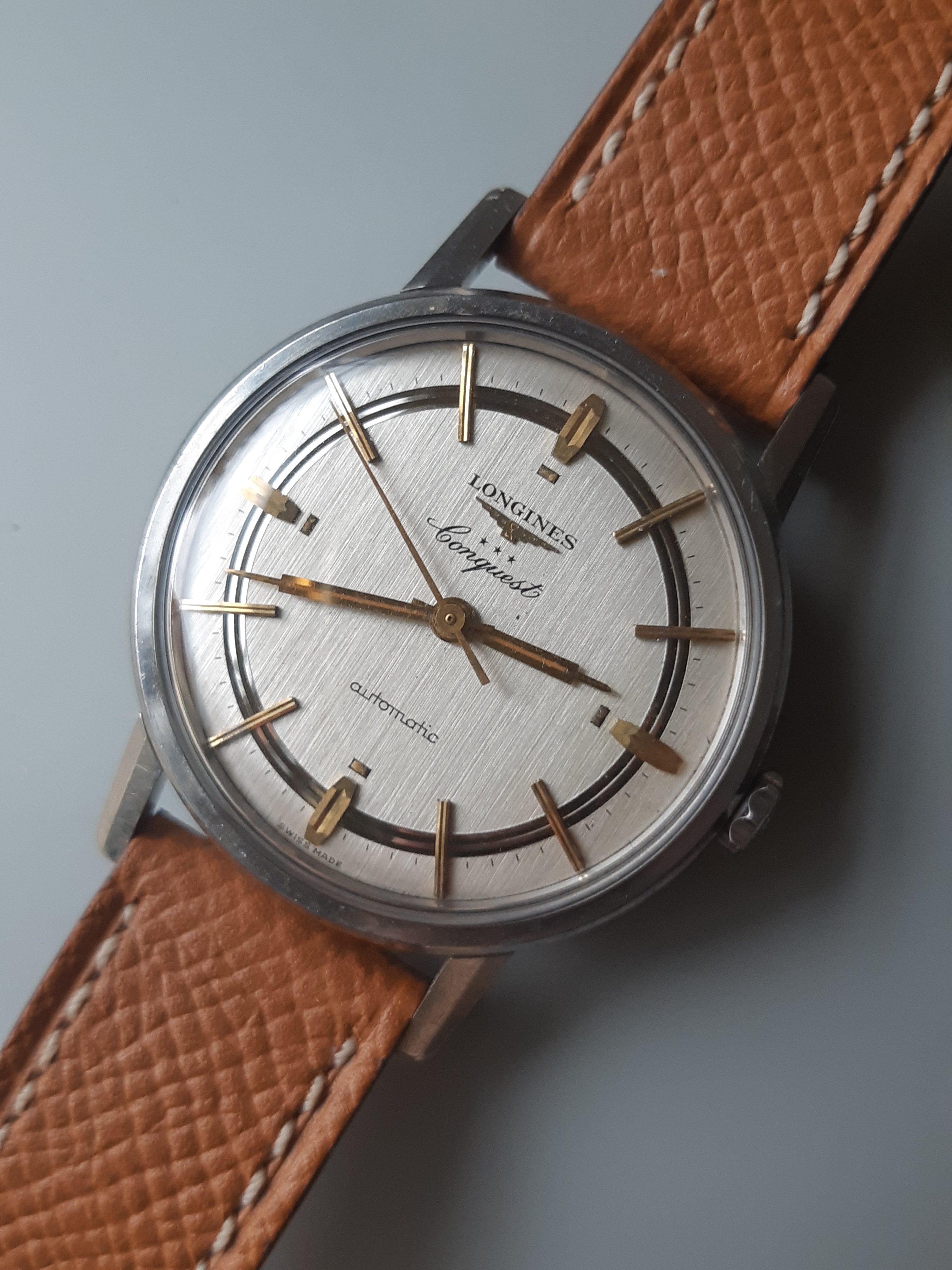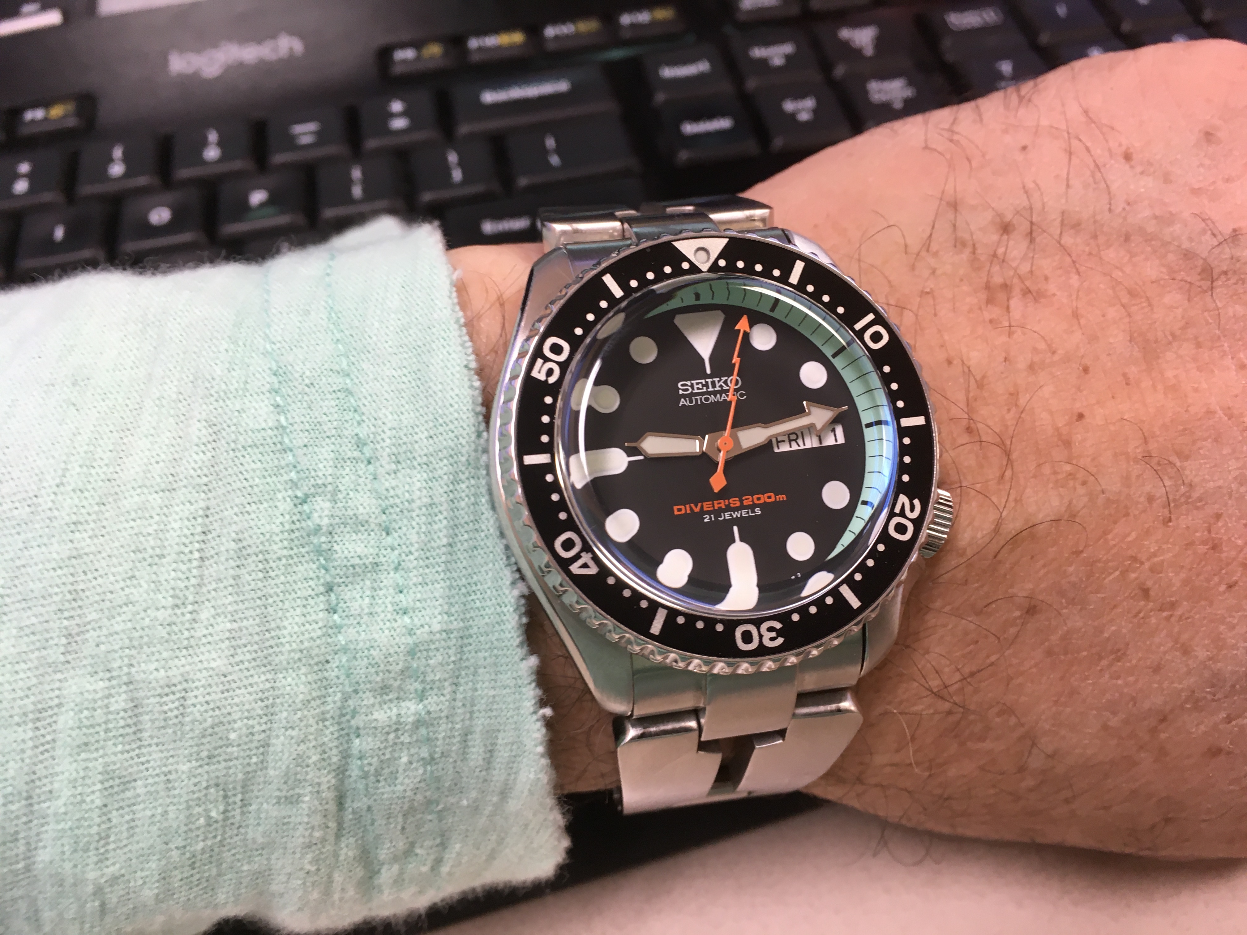 While delving into my stash today, searching for a Gruen movement to cannibalize, I dug into a box of orphan watches that I had forgotten about, for at least the past 35 years, and lo and behold, what do I uncover? The latest addition to my collection. The movement is a 23-jewel Gruen, calibre 629SS, Automatic wind, and is in nice shape. The case is 14-karat gold shell over stainless steel. So today, I stripped it and conditioned it, fitted a period correct bracelet to it, and put it on. I’m running out of places to store my burgeoning collection of watches. What a nice problem to have. The best part of this is that tomorrow (the 10th) is my birthday. 😀