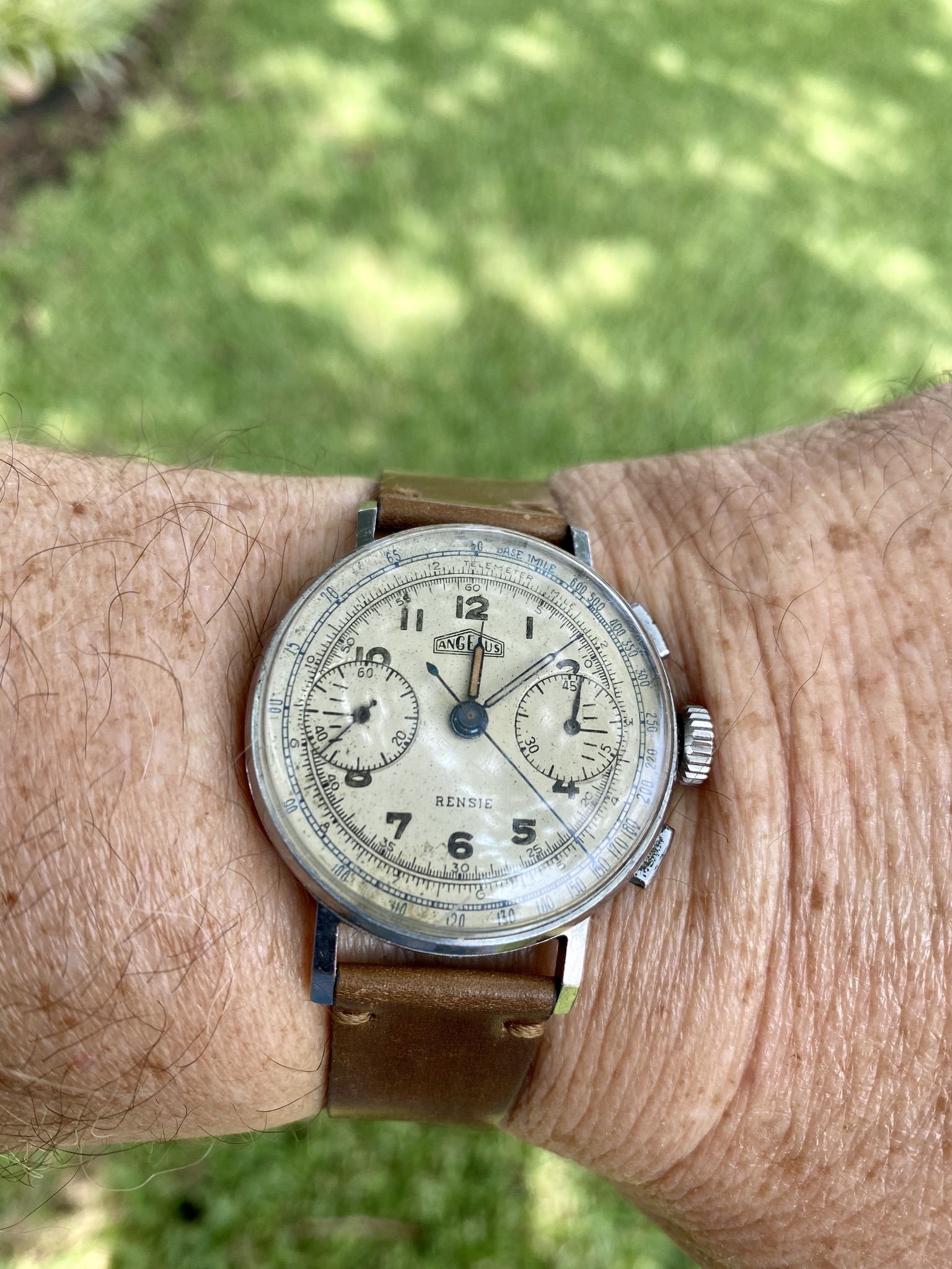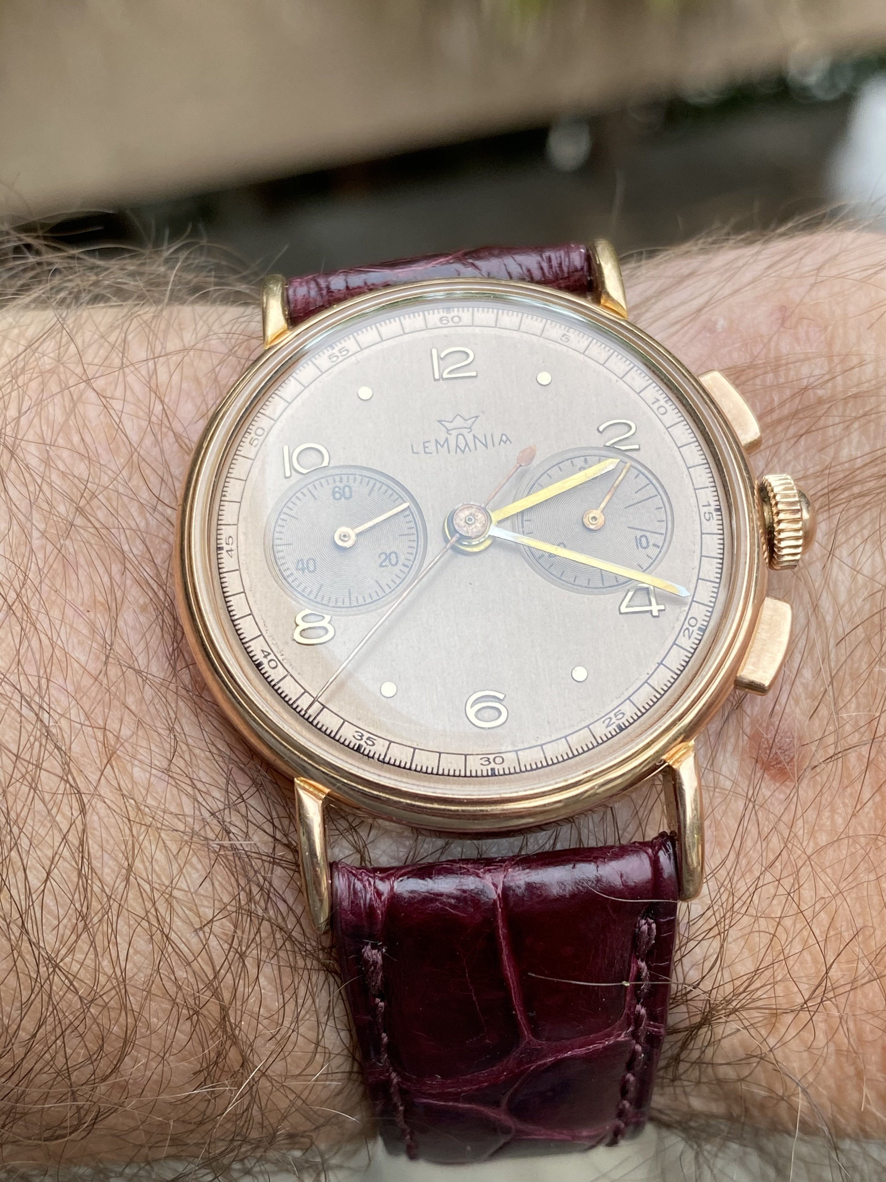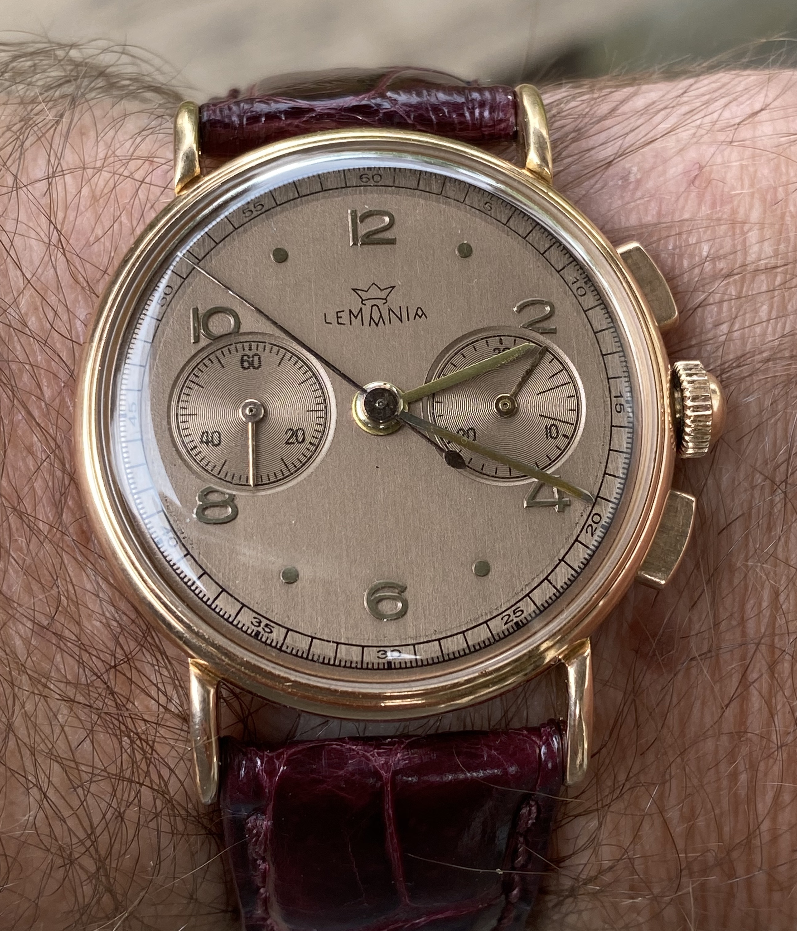 I believe this was one of that initial Lemania run, as the very low serial number puts it in 1942, when that run occurred.