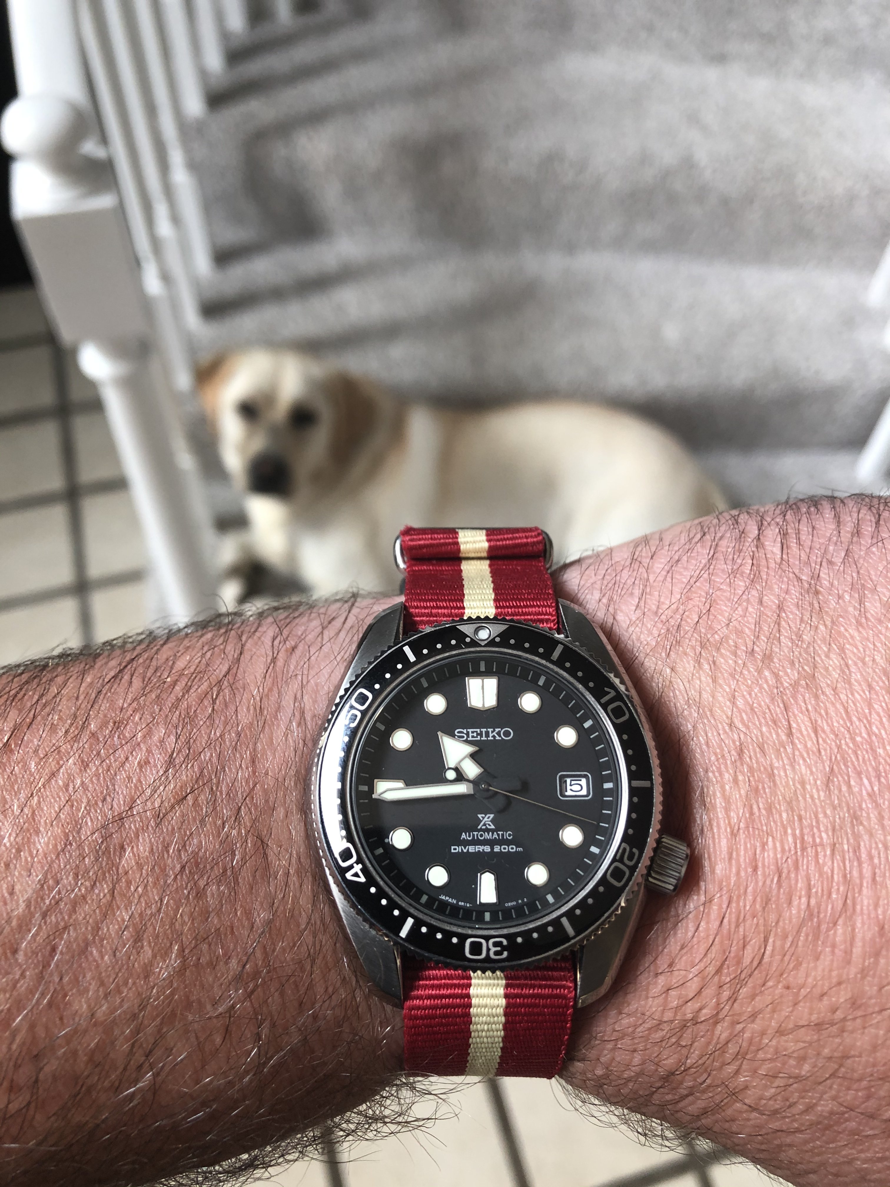 Did you notice mz_cle matched the off-white stripe in the nato to that beautiful yellow lab? Perhaps we have a new thing, pet - watch strap matching.