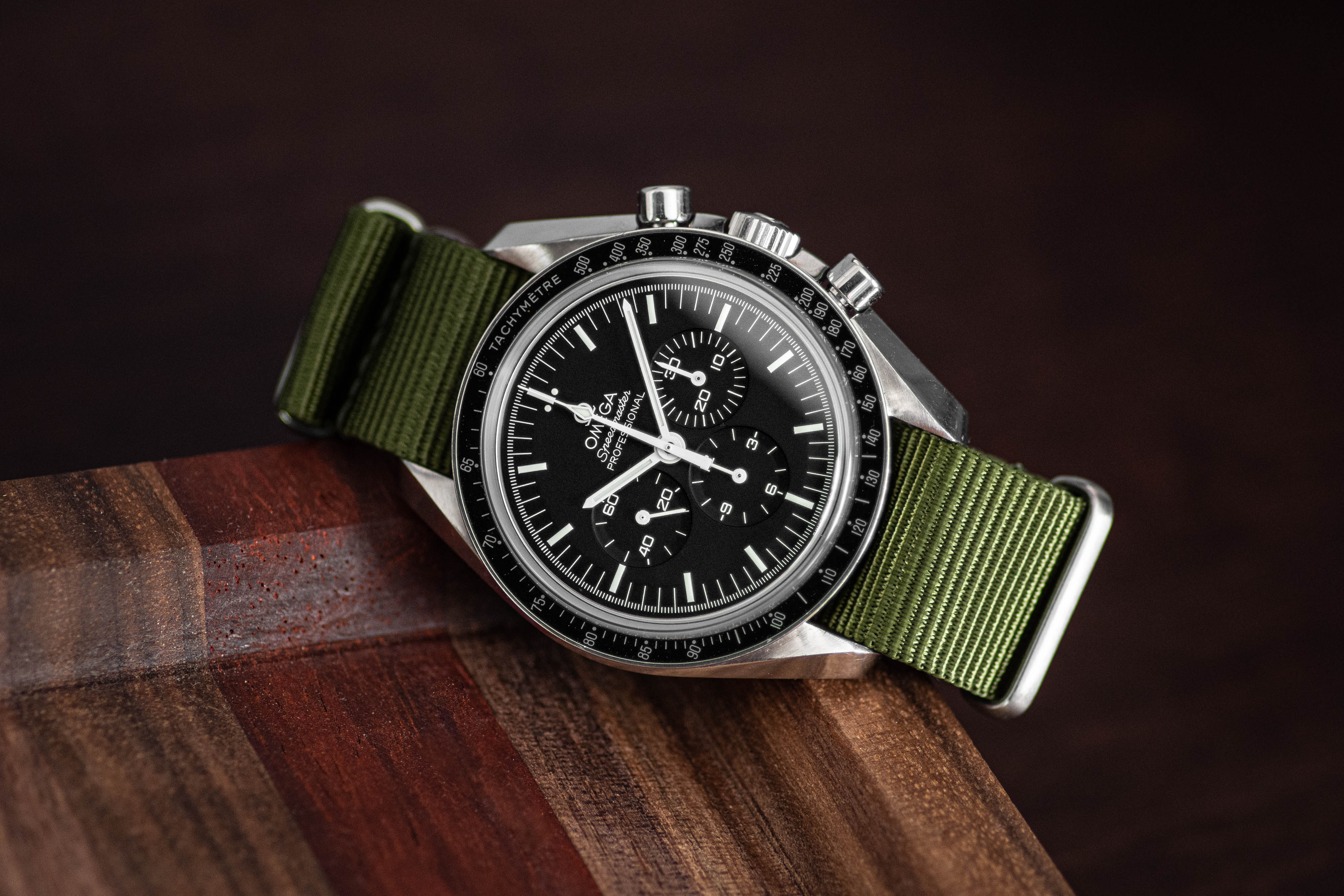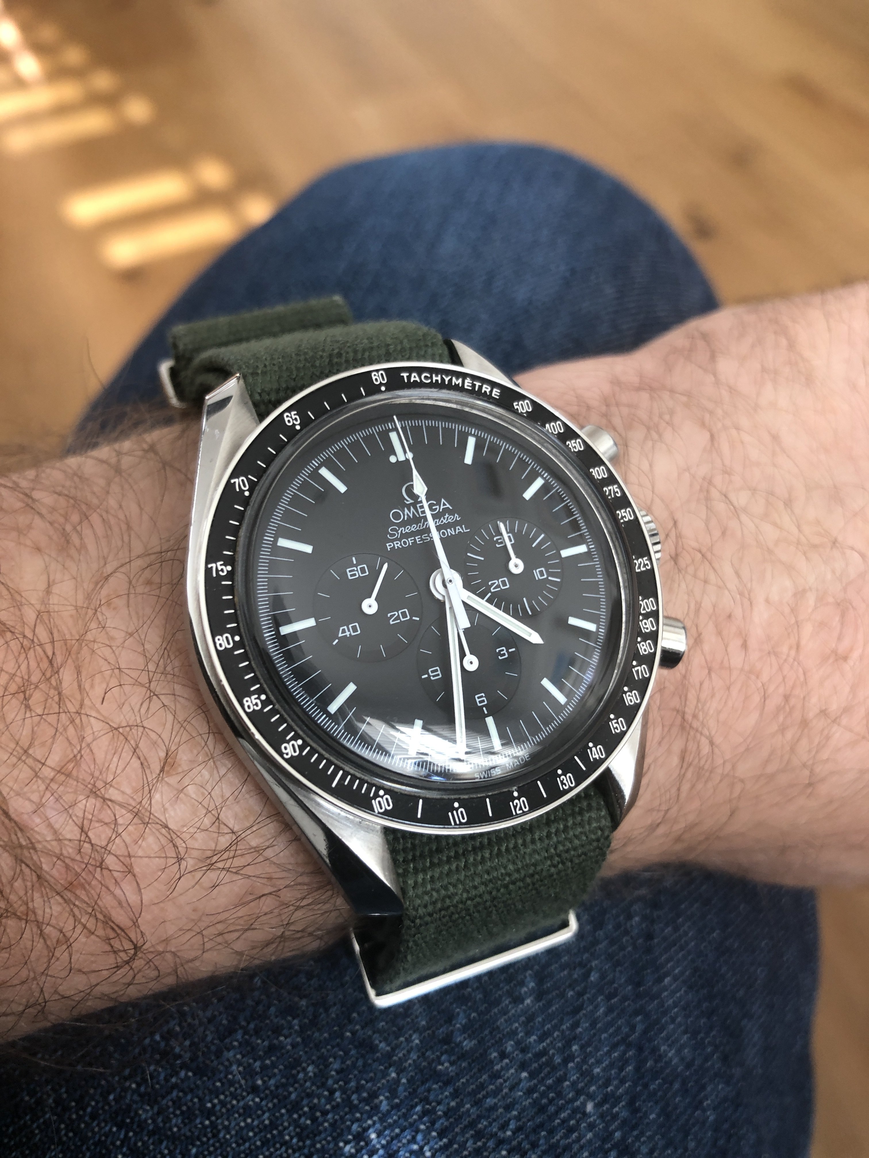 Posts 826 Likes 8,266 Njnjcfp88 ·Sep 18, 2020 uvalaw2005 That black disked Speedie really pops w that olive NATO. Sweet.