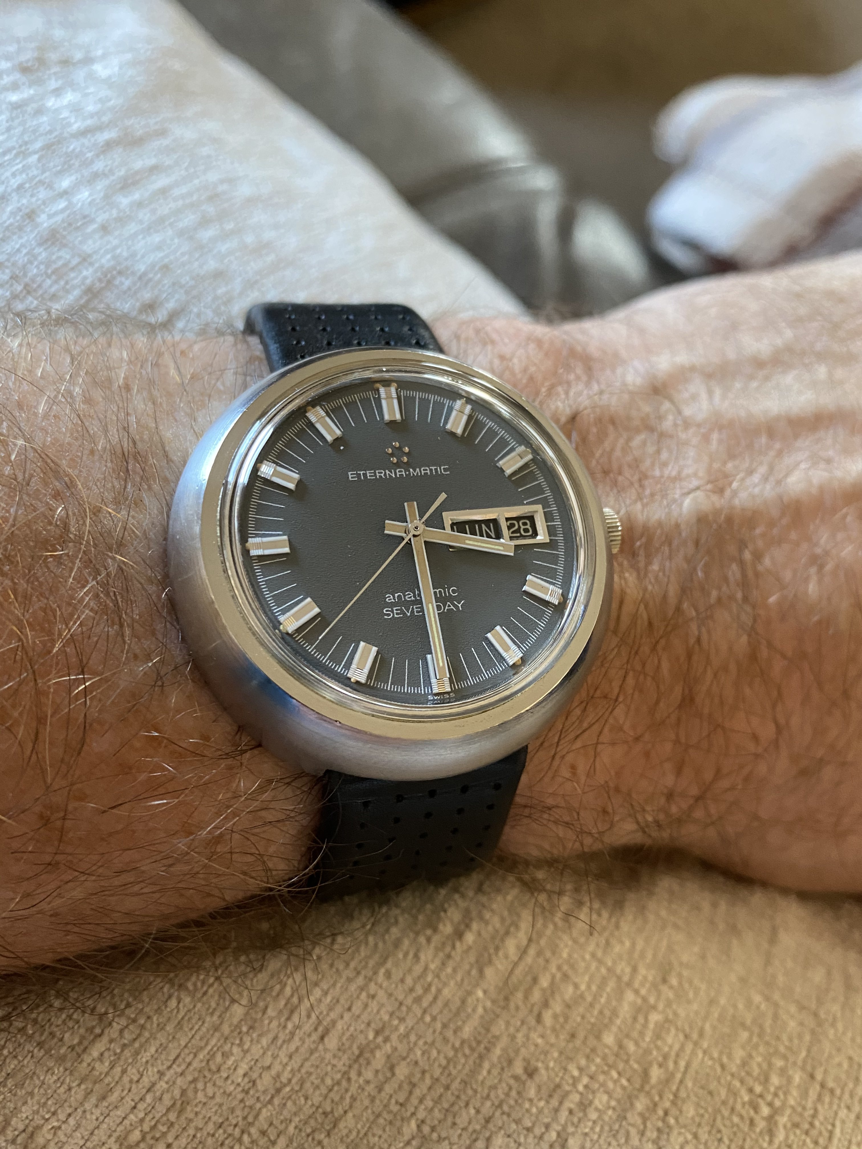 Overcast here, so going with some 1970s sunshine on the wrist today....powered by Tissot's Astrolon 2250 plastic caliber, a.k.a. SYSTAL (Systeme Total AutoLubrification). Here's a link for anyone interested in learning more about the Tissot Astrolon https://www.watchonista.com/articles/technology/tissot-astrolon-synthetic-revolution.