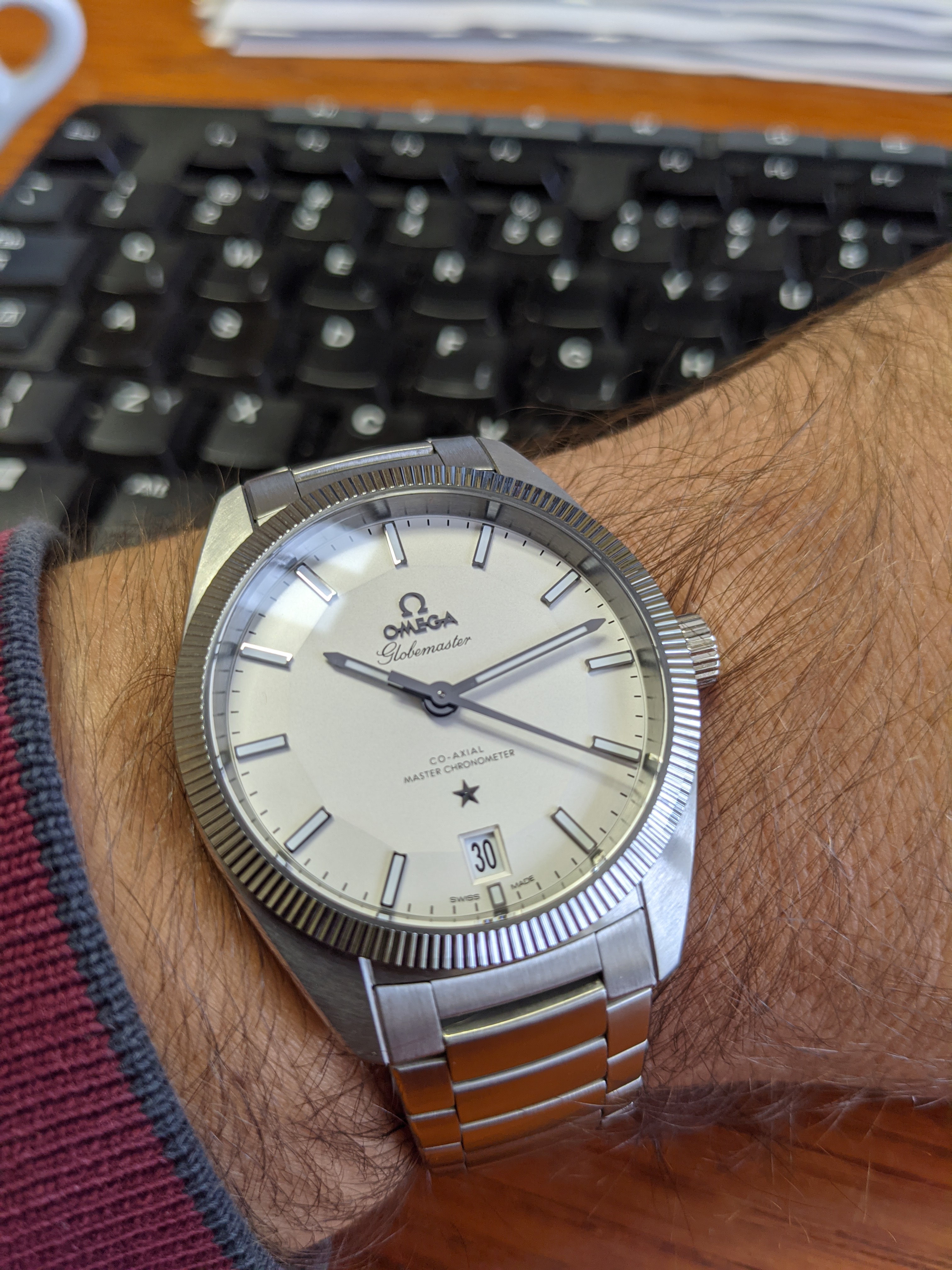 My IWC was ready, the shop sent it to IWC for a complete service, I picked it up yesterday. The service took about two weeks, which seems really quick. Fortunately it was under the watch shop's 2-year warranty, as the bill was $998.00 (reduced to $798.00 presumably b/c the shop didn't take its cut, being a warranty repair.) So, a good as new IWC is today's choice.