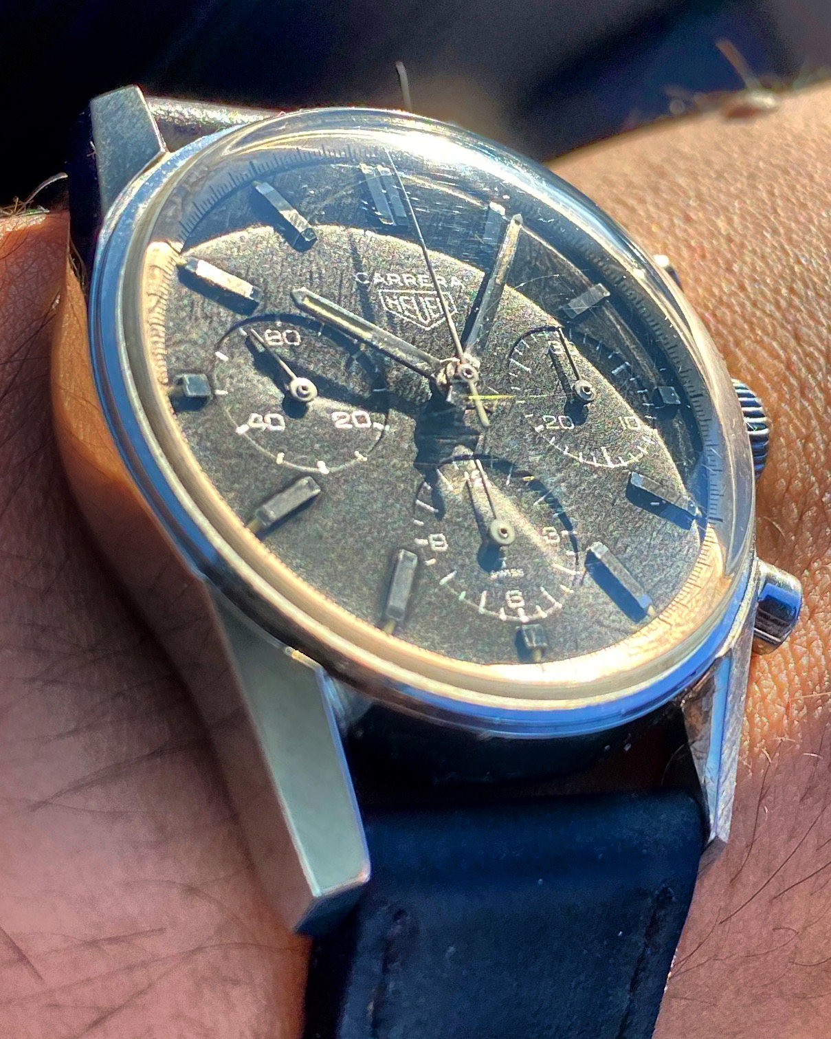 Posts 338 Likes 3,921 phodinkee 路Oct 1, 2020 1967 Heuer Carrera 2447N, First Execution, Silver Print, 36mm, Unpolished ___________________