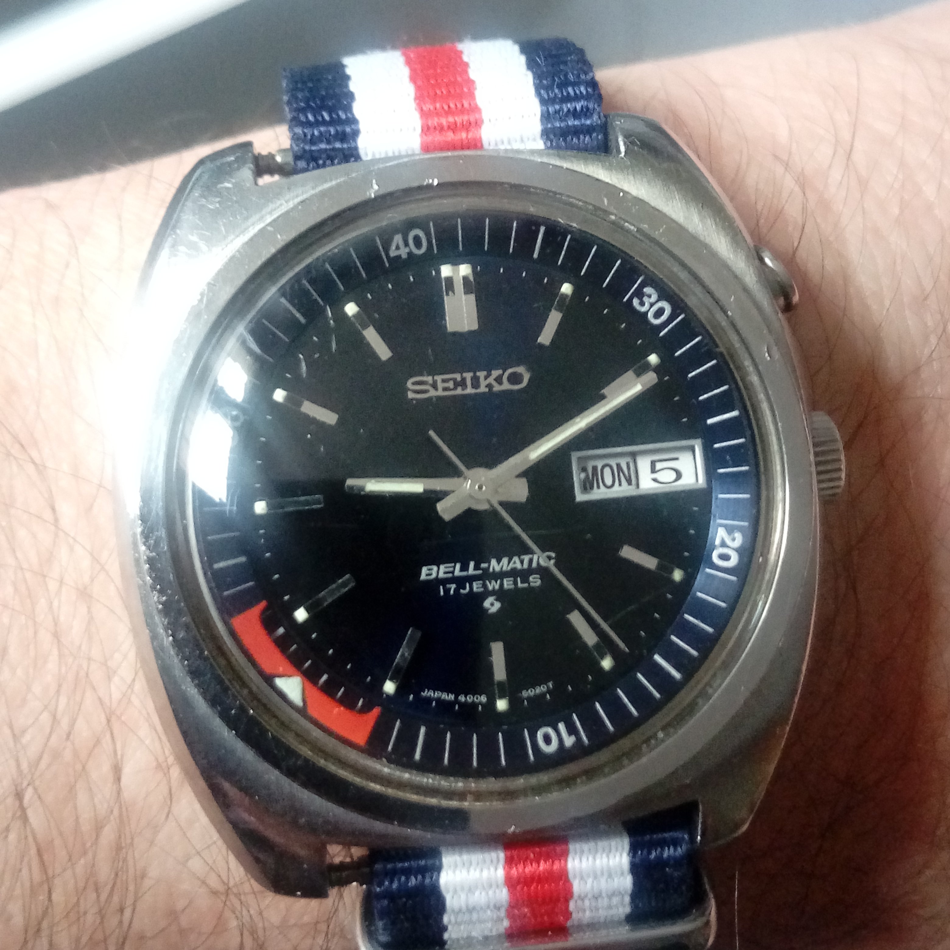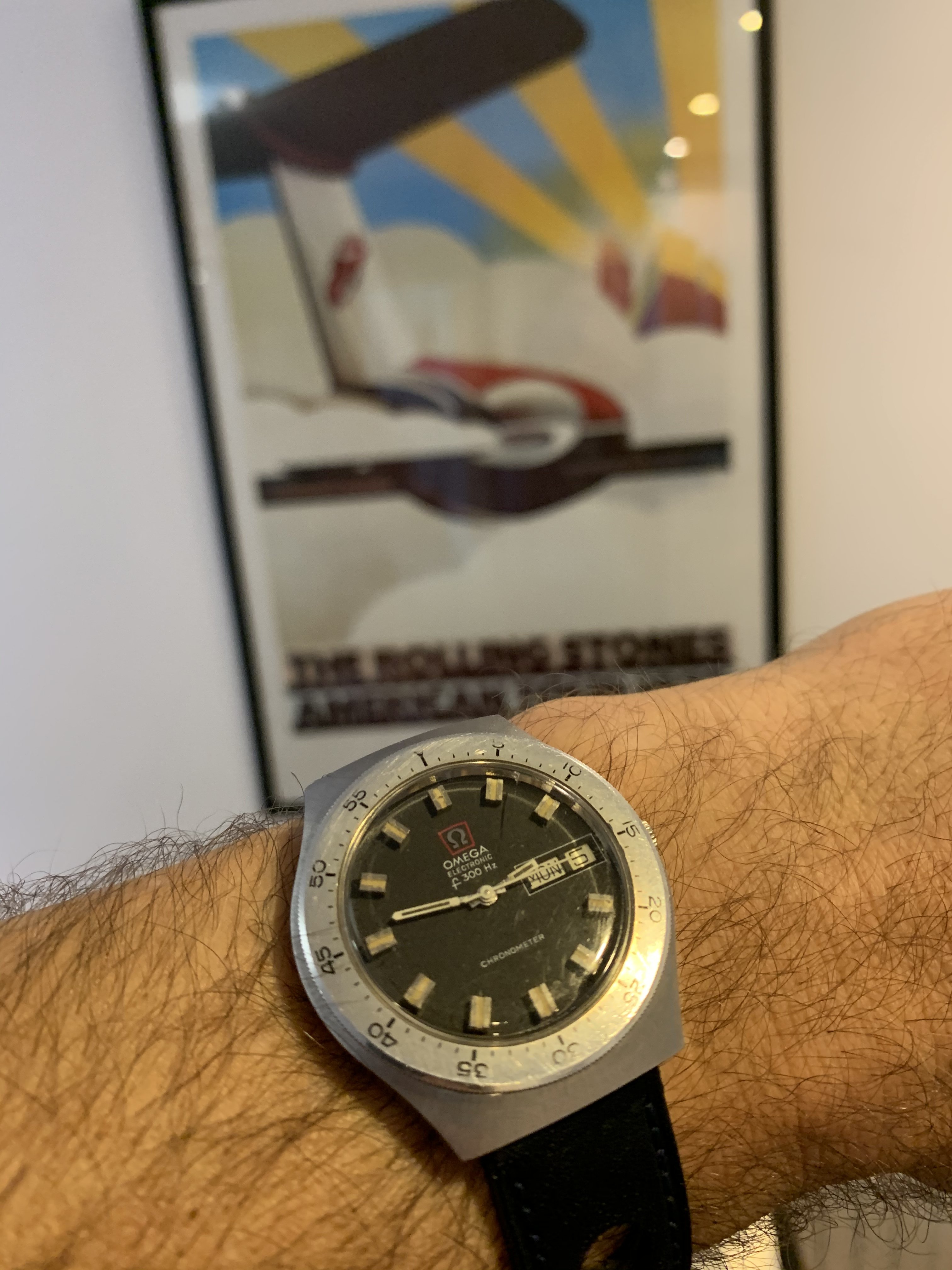 Recently returned to my wrist after service. Put it on deployment and rally. Like having a new watch and humming along nicely in the kitchen! That’s my original Stones tour poster. Always wanted one after seeing it stuck on the wall at CBGB. Watch from the same era!