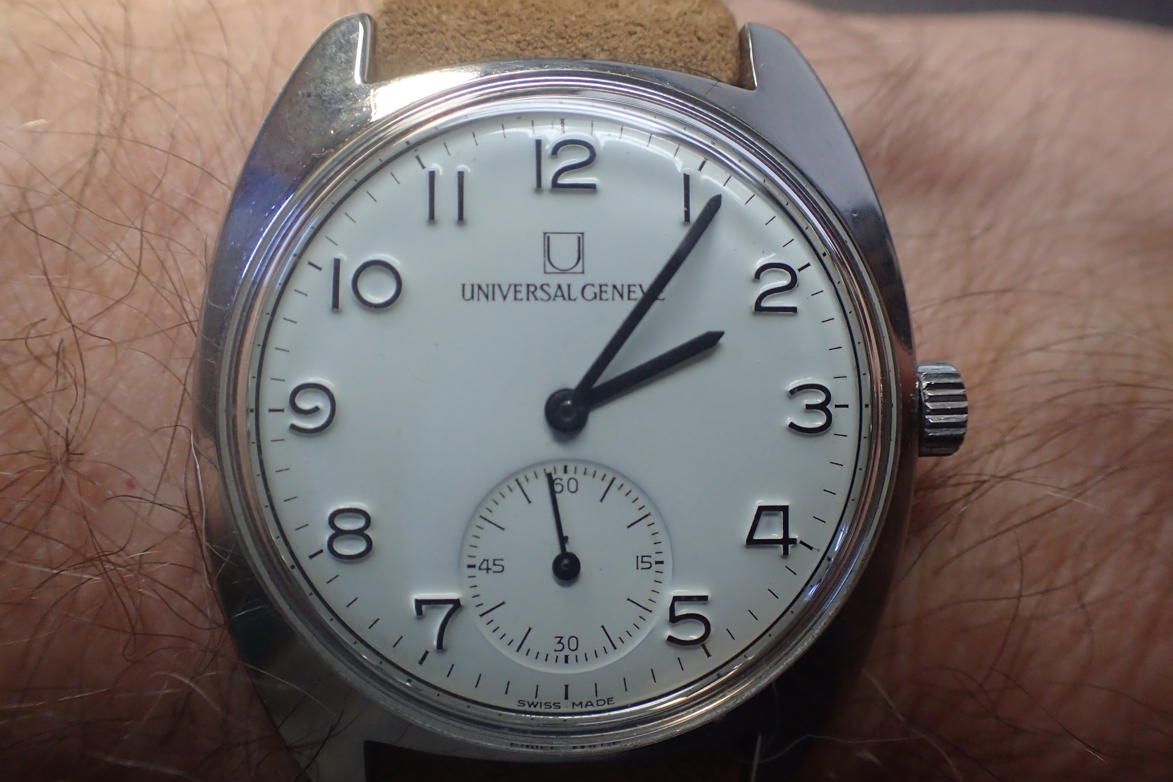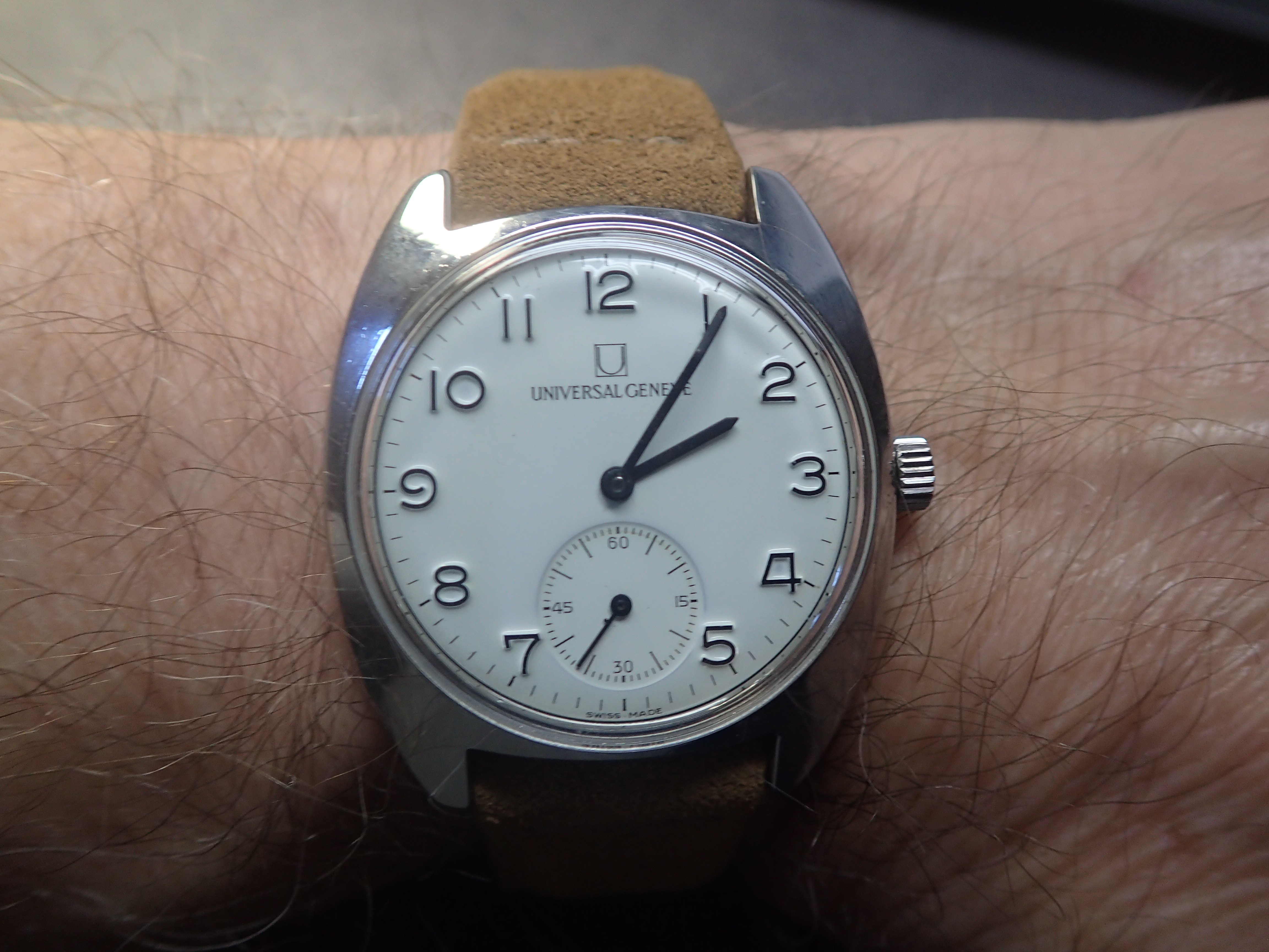 Posts 1,325 Likes 5,829 rbob99 ·Oct 5, 2020 Arrived this morning: Universal Geneve Ferrovie dello Stato, a.k.a. the Italian railroad watch. The watch is from the second of three iterations, with C shape case. I'm lovin' the legibility of that white dial with black hands. Edited: Oct 6, 2020