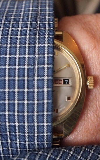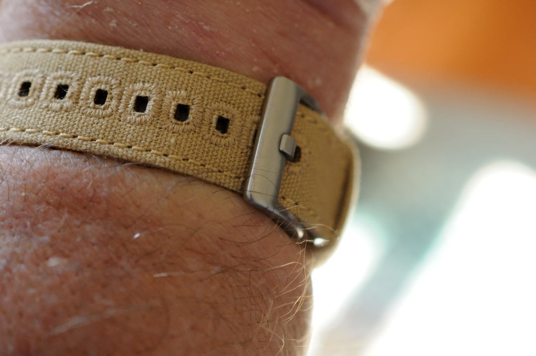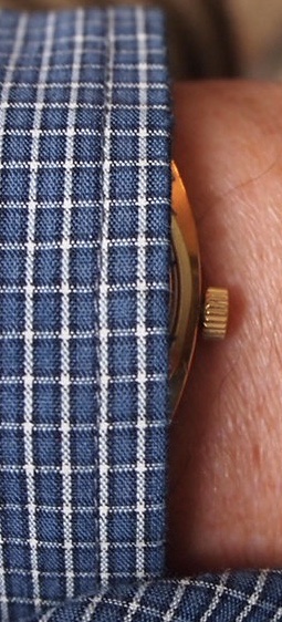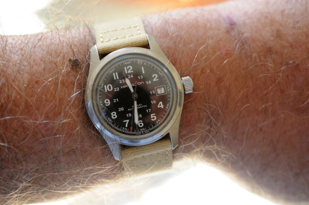 First picture is from a while back, I don't post many pictures of my Khaki here despite it being a much worn watch; a beater if you will. Note how close the tips of the lugs are to the edges of my 7.5 inch wrist: