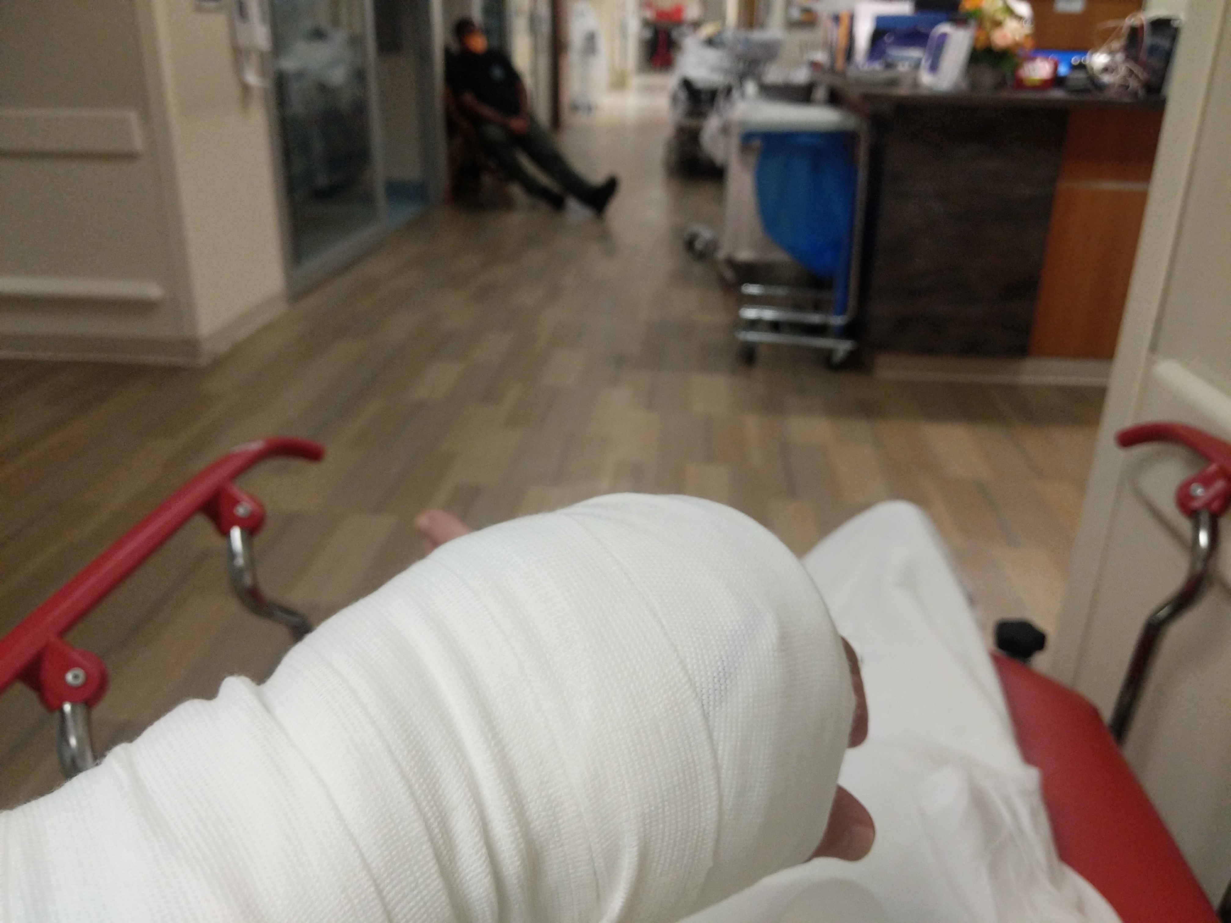I'd suffered a pretty severe trauma to my left hand and wrist. I followed some really bad instructions to enter a garage. Ouch!