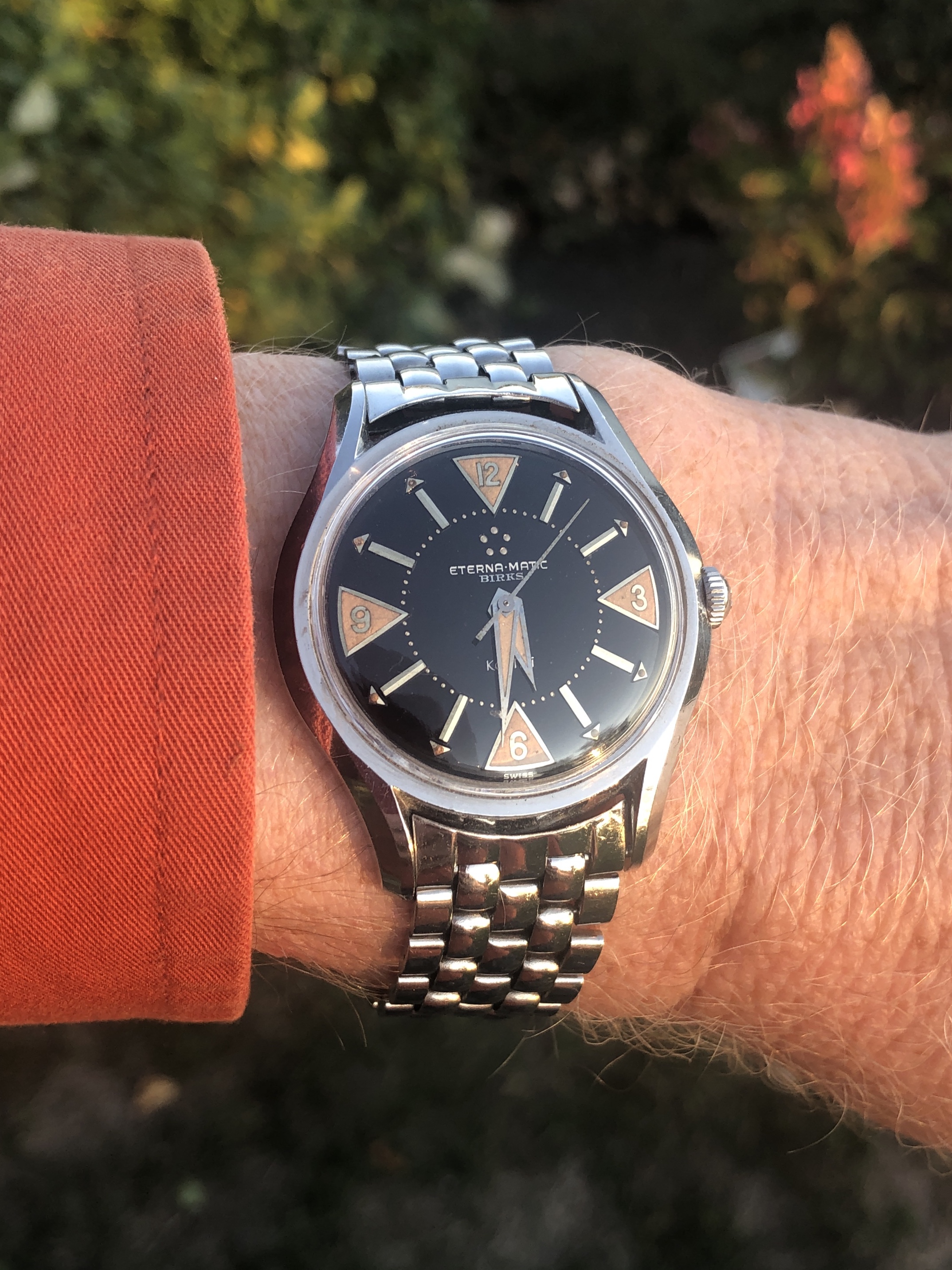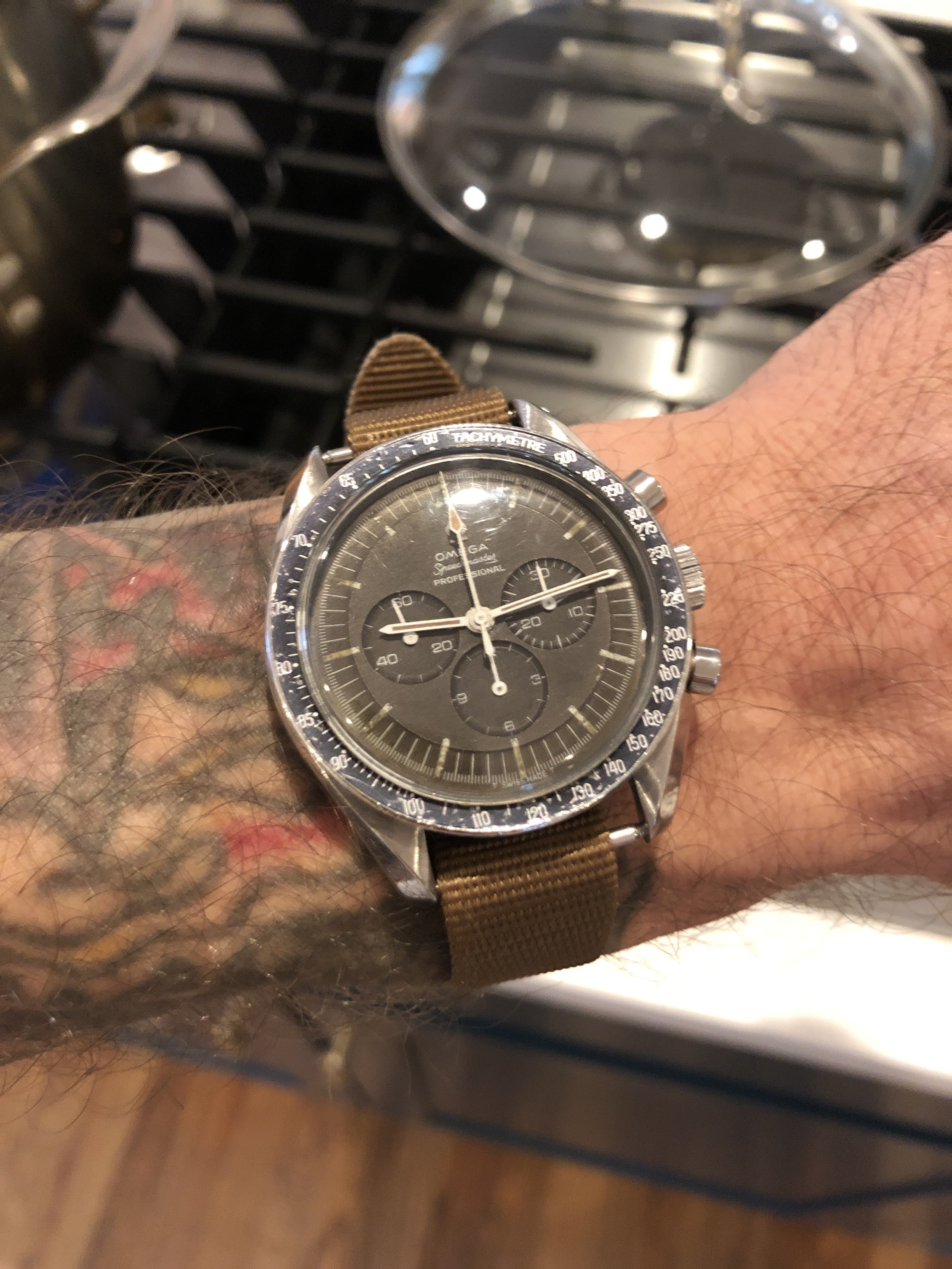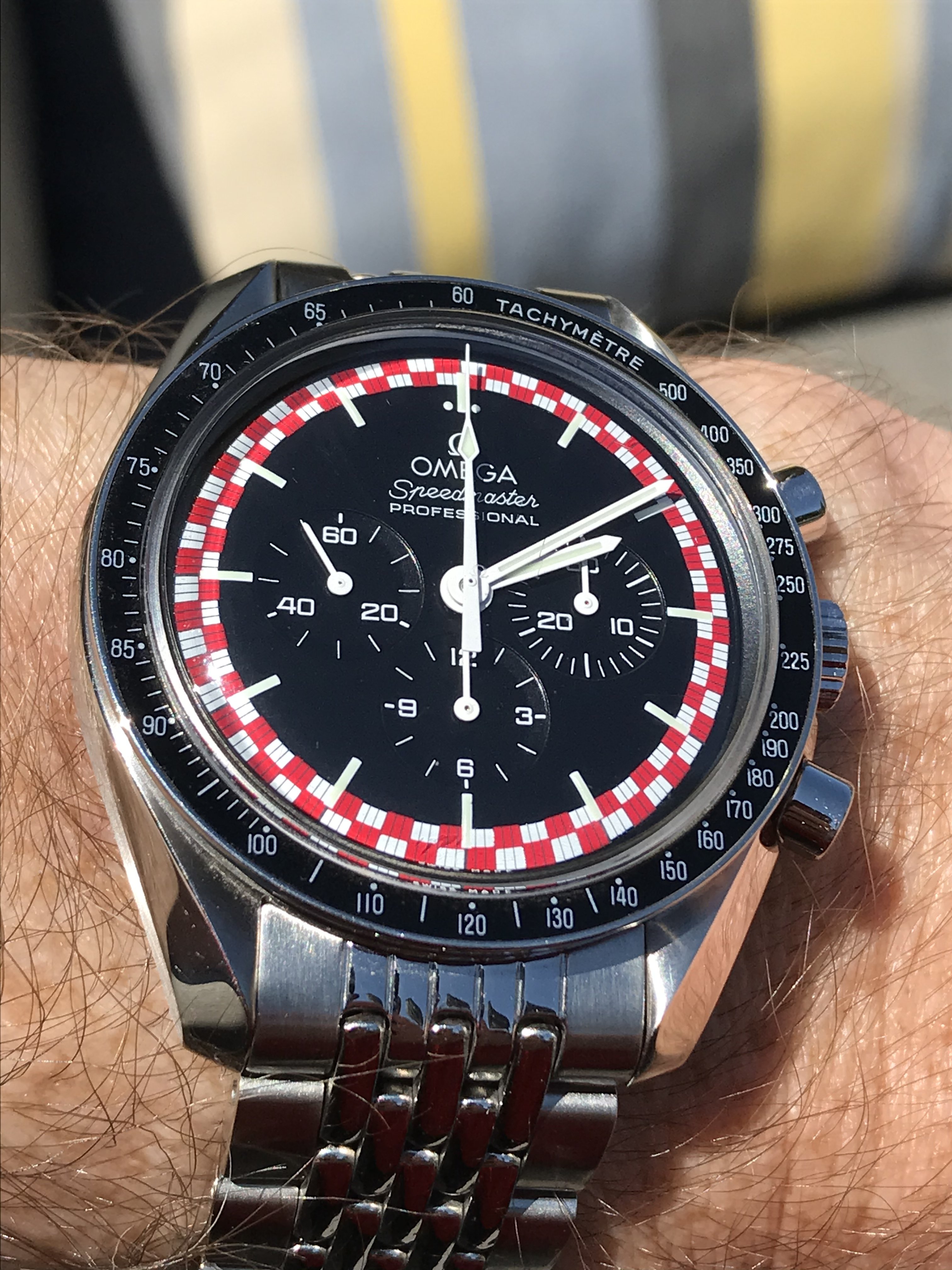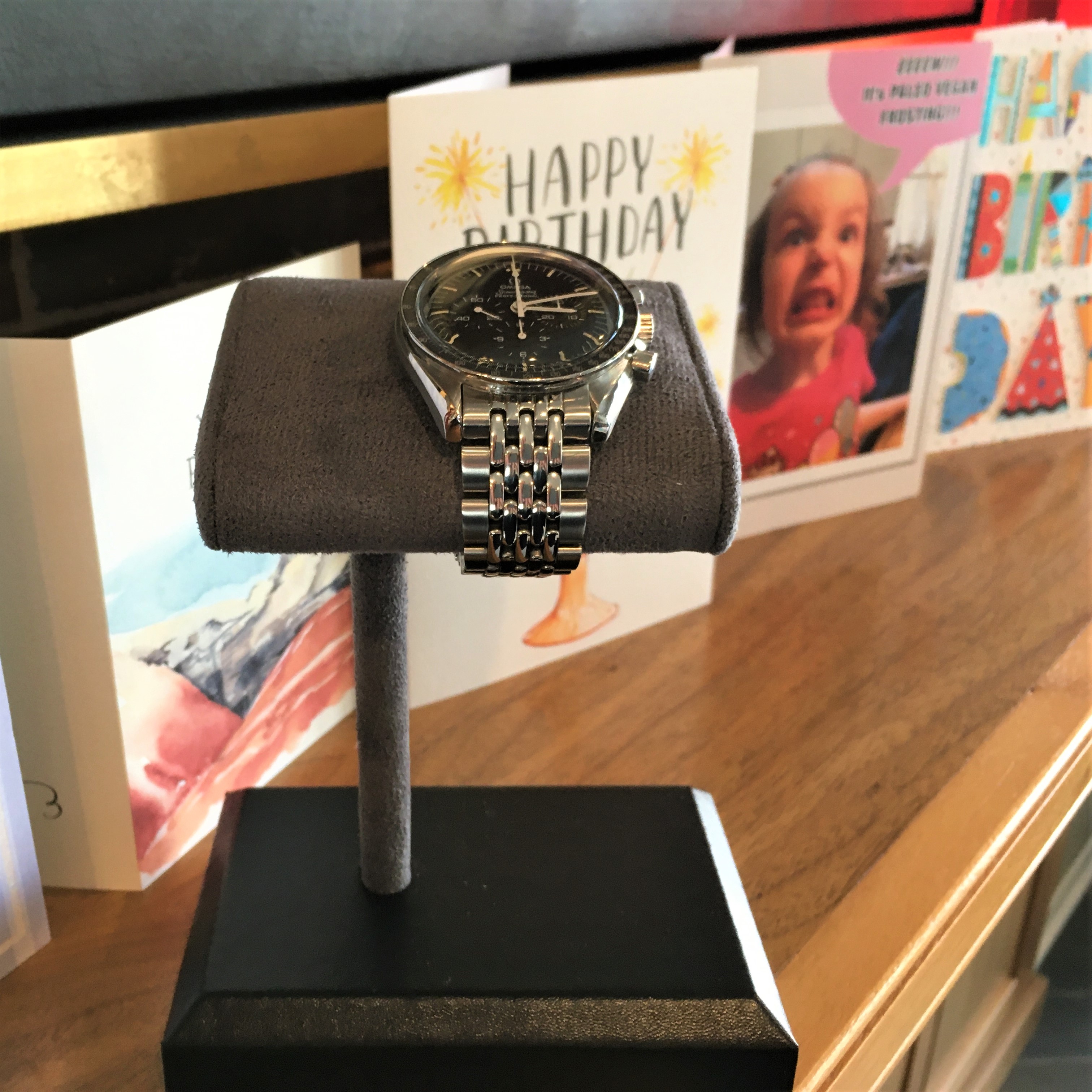 Wanted to share a thoughtful Bday present from my son --- a really nice watch stand. He wanted me to be able to "show off" my watches. I'd say my Speedy looks very nice on the stand... and that's the watch I'm wearing today and this weekend. LOL - my family 'tolerates' my hobby.