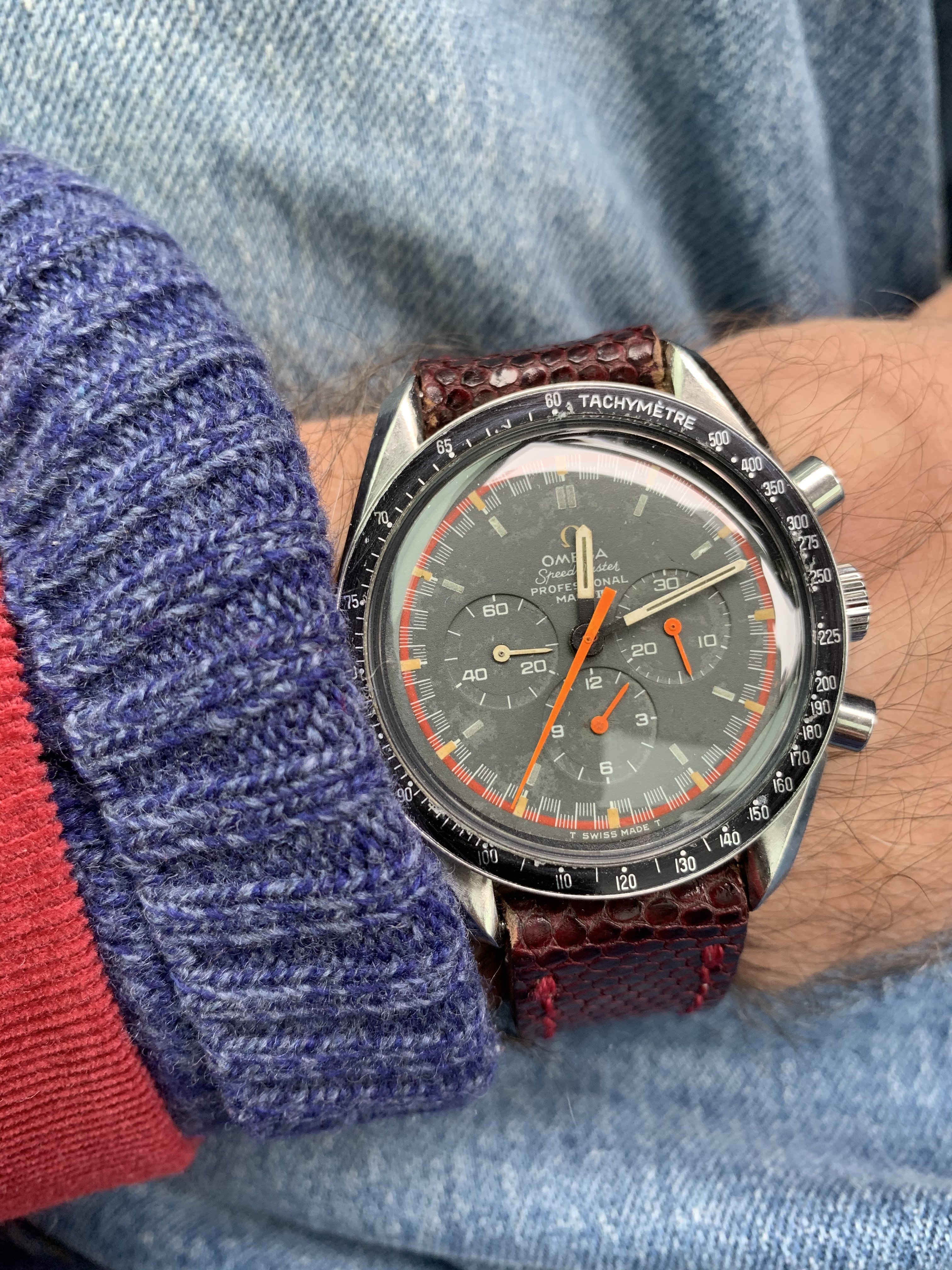 Posts 6,584 Likes 78,290 Mad Dog ·Oct 20, 2020 Speedy Tuesday...1964 Speedmaster with 1979 varsity letterman jacket... Edited: Oct 20, 2020