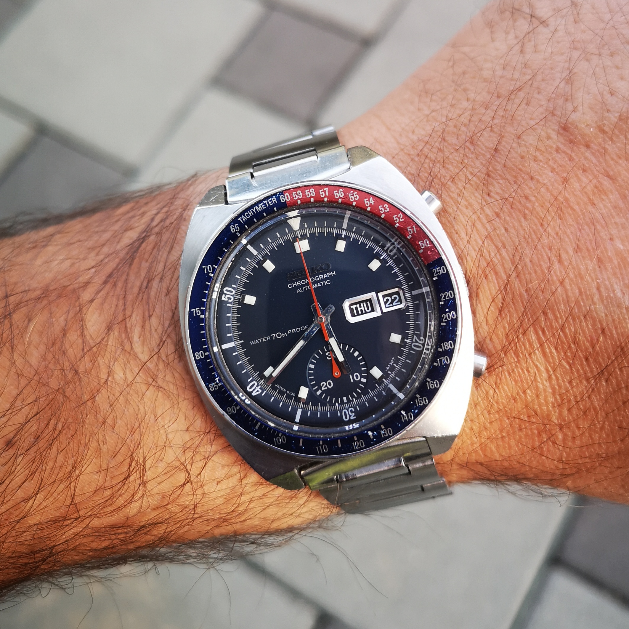 My new to me Seamaster 300m Chronograph. Yes, its big, and yes, it weighs as much as a small anvil, but it wears well and I think its a beauty. Maybe this is the one watch to wear after surviving the apocalypse?