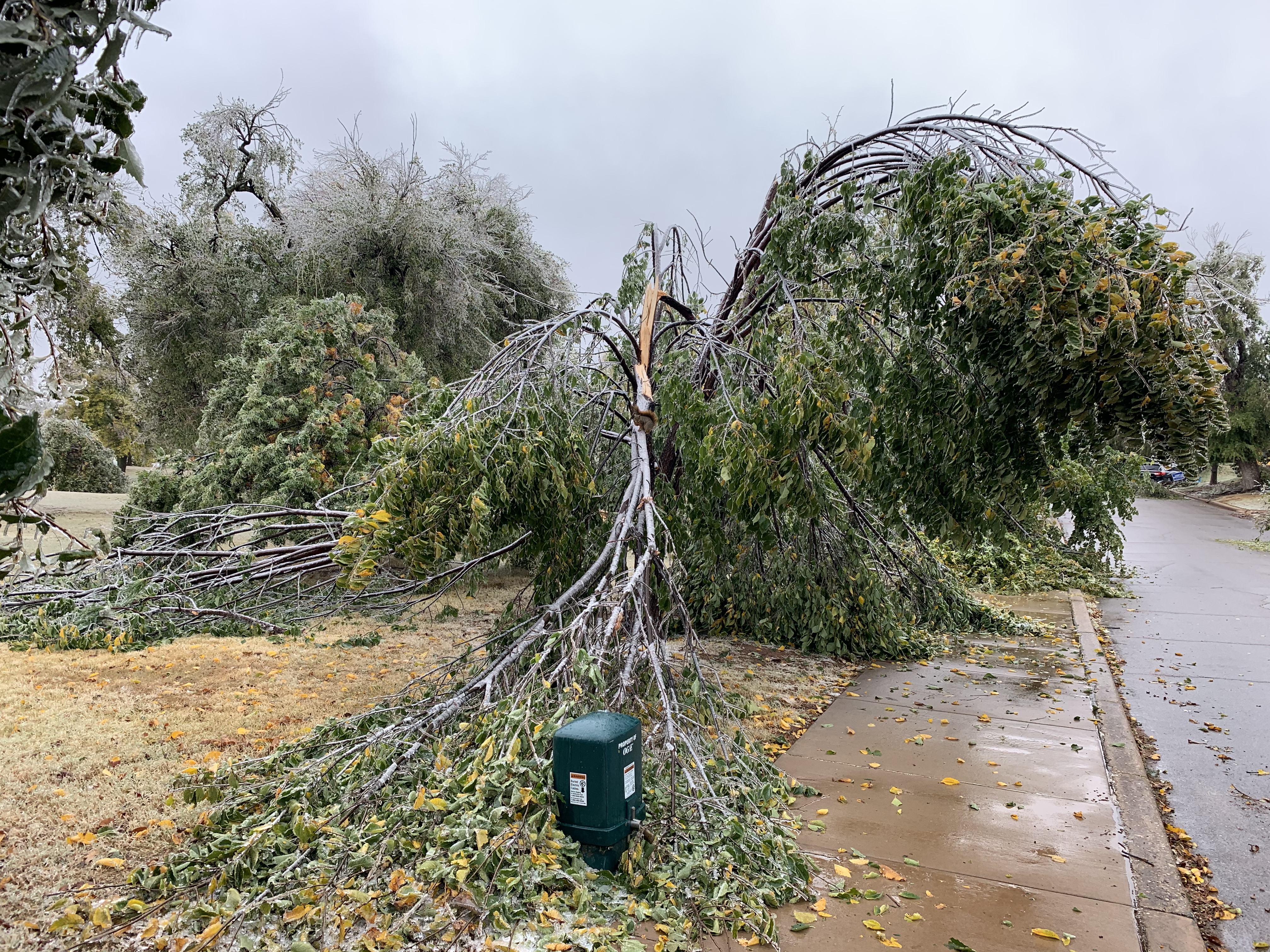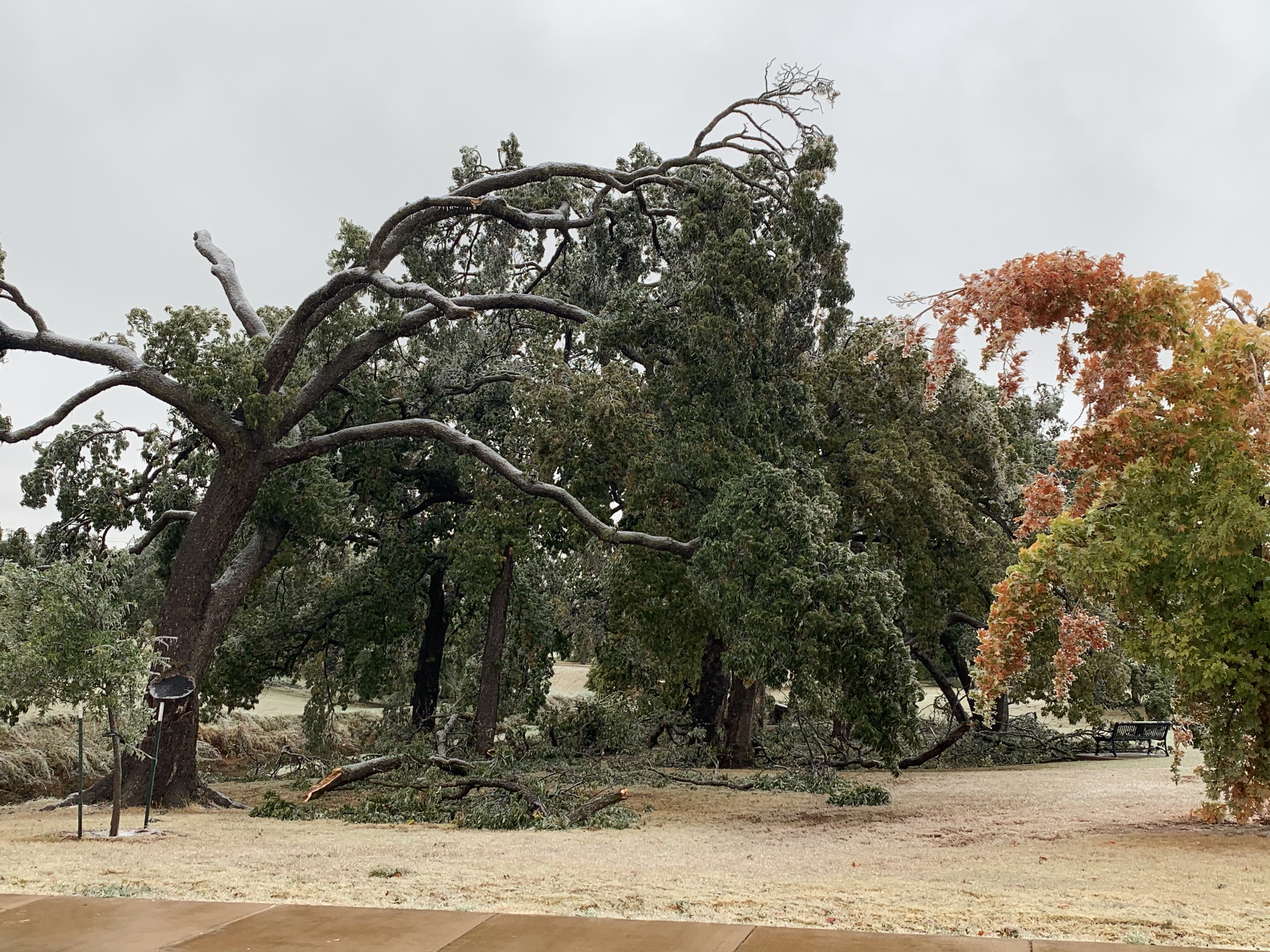 I took my GS for a walk in the cold mist.. it’s rather sad what has happened to every one of the trees in my neighborhood due to the record freezing cold and ice we’ve had the last few days: