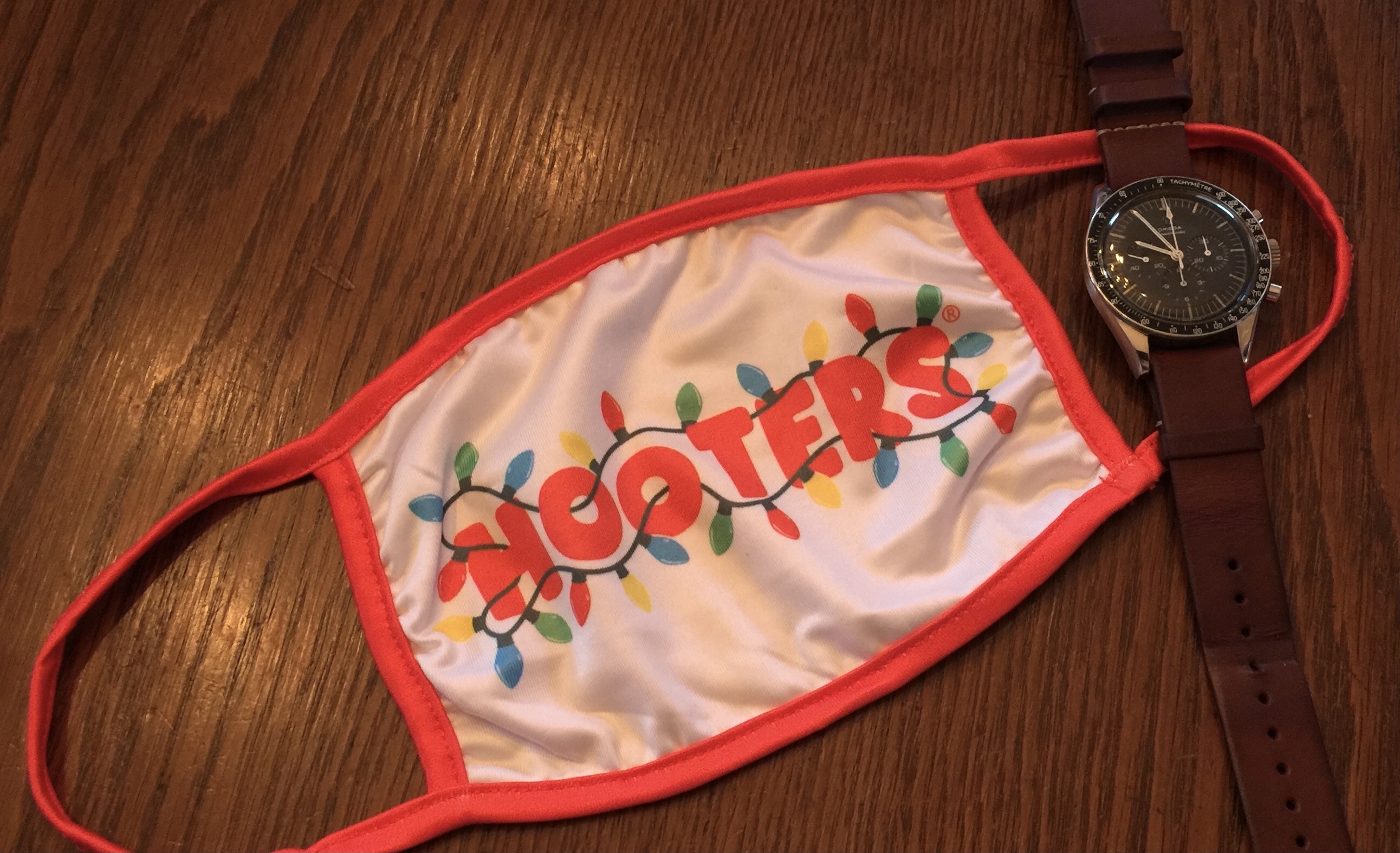 NOTE: The wife unit [MacGyverette] says it’s too early to wear Christmas stuff...so she says I’m not allowed to wear my new Hooters mask until after Thanksgiving. Dang. 😡