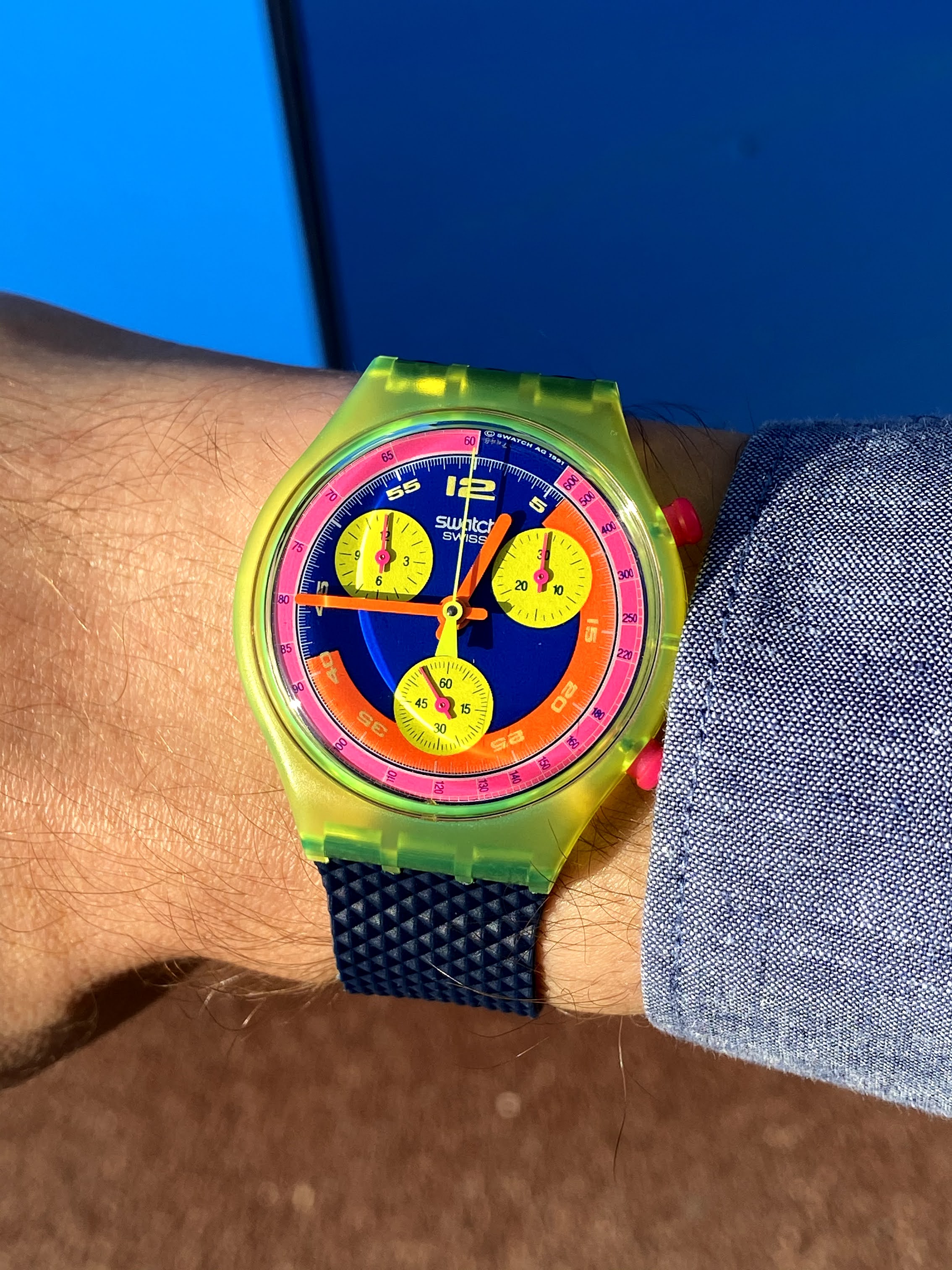 Posts 15,408 Likes 45,544 Canuck 路Nov 27, 2020 MarcelGuinchard 1992 Swatch Chrono "Grand-Prix" My two send salutations. One like yours, and a 30-year old limited edition JFK.