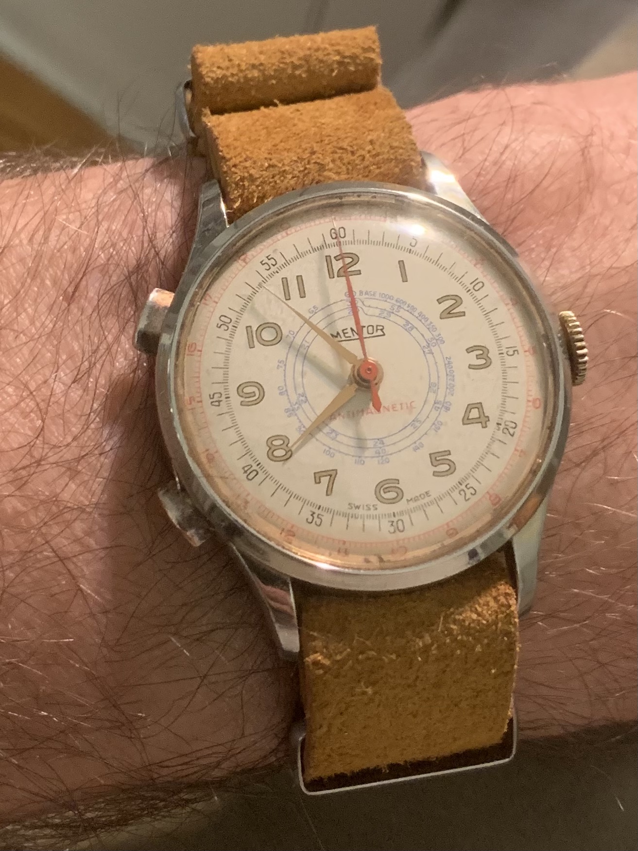 Posts 2,053 Likes 22,099 Norfolk ·Nov 27, 2020 Walrus That is a very interesting dial Thank you kind sir....more here about them.... https://chronopedia.club/Mentor_Chronograph And a more revealing pic....