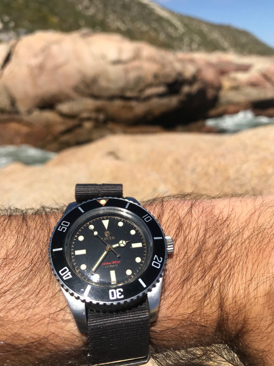 Posts 386 Likes 3,425 kaapstadflaneur ·Nov 28, 2020 Hiking on South Africa's West Coast with a Raven Vintage 40 on a grey NATO.