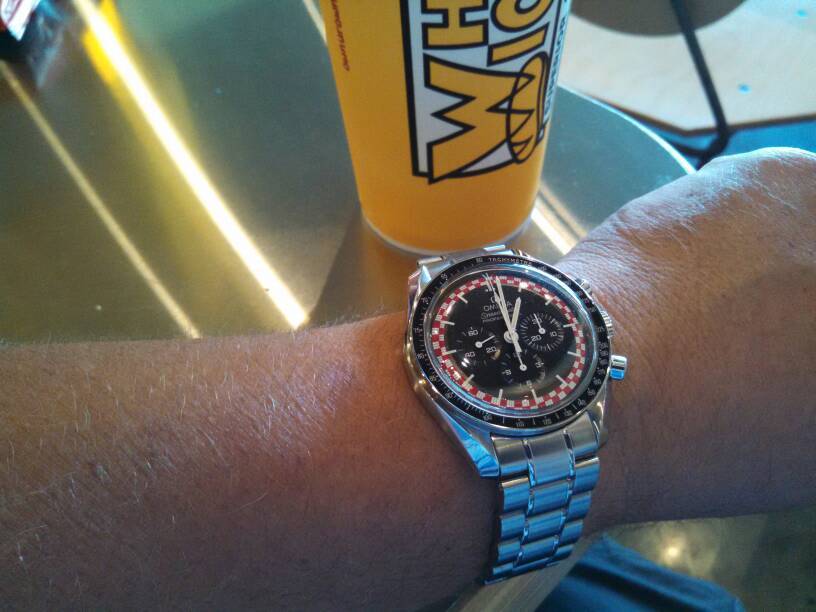 I was riding the prudential London 100 mile bicycle ride today - through hurricane bertha. At various points there was so much water on the road you couldn't see it, for at least 50 miles it was raining so hard you couldn't see. Decided last night there was a high possibility of a crash, didn't want to sacrifice a watch so bare wrist for me today...