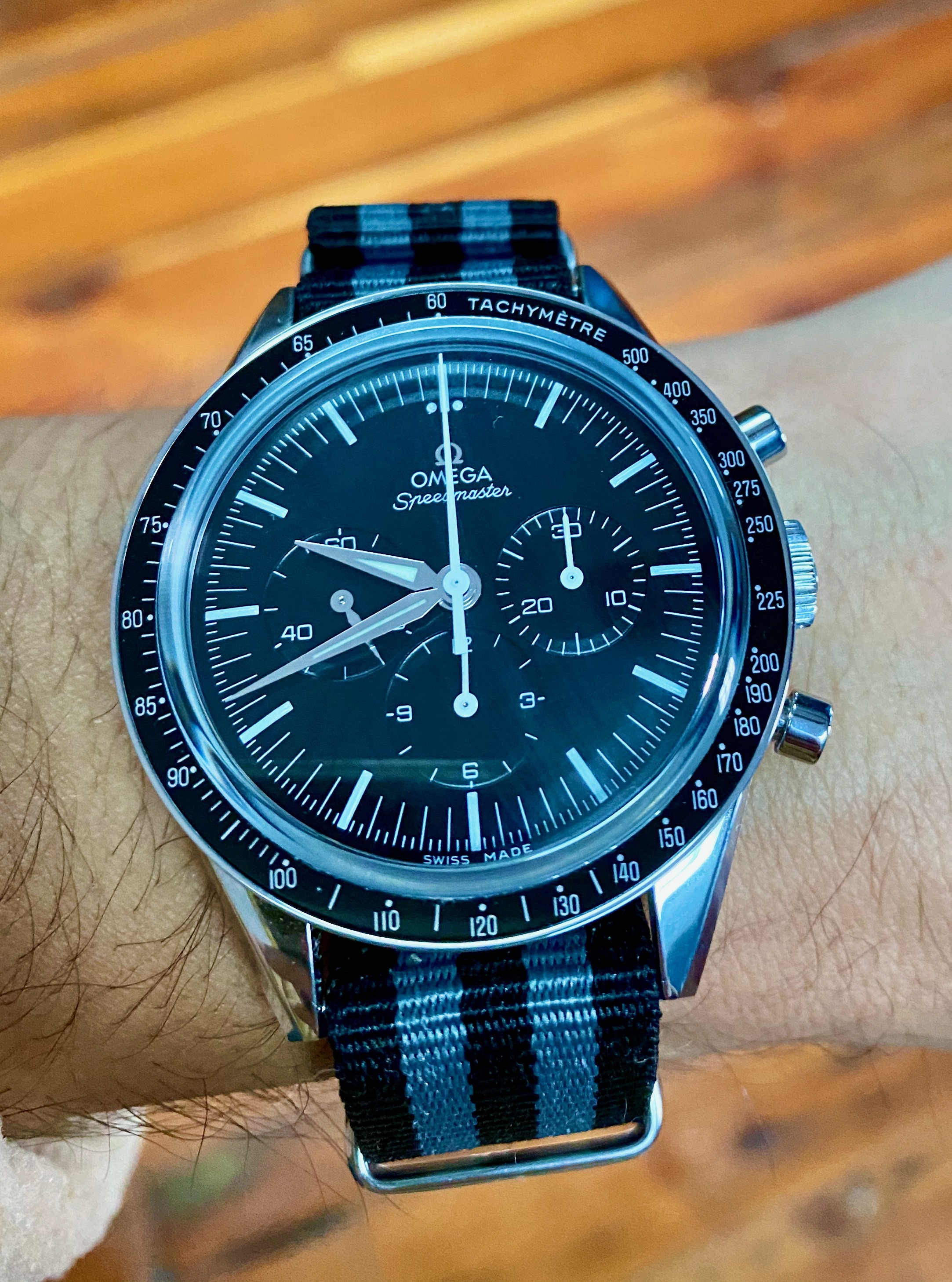 Posts 242 Likes 2,022 ezinternet 路Dec 1, 2020 Blue Mark III Speedy 176.002 cal 1040 The central minute accumulator makes a lot of sense for ease of reading. How else do you reliably time a 3 minute egg if it happens to be :10 to :13 minutes past the hour?
