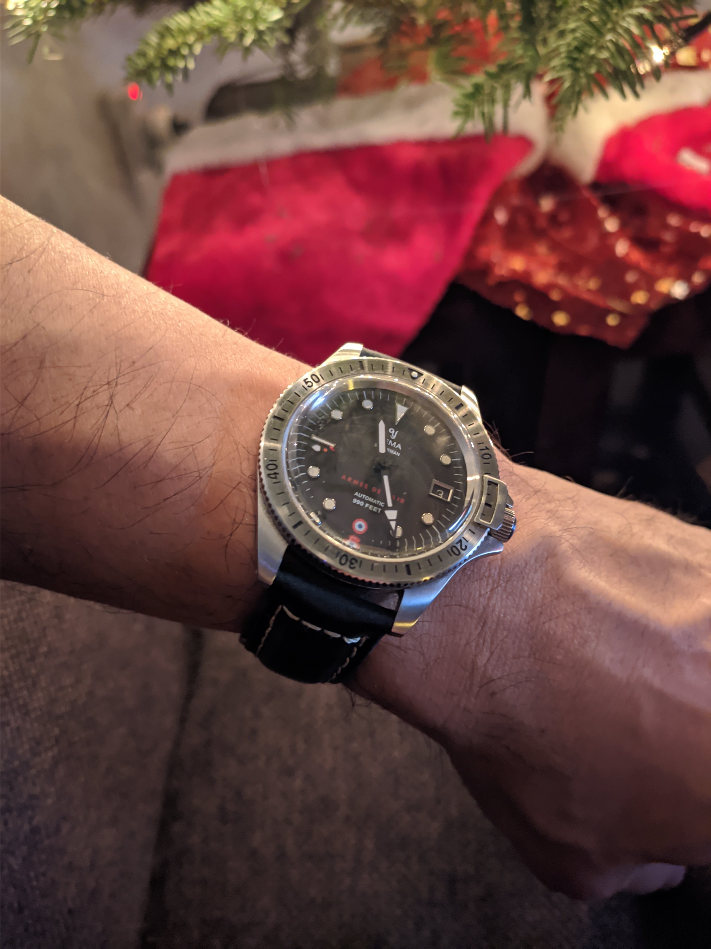 My Zodiac Olympos with the suede strap I received as a birthday gift. My birthday was yesterday but I'm just now feeling like I'm 24 馃槑