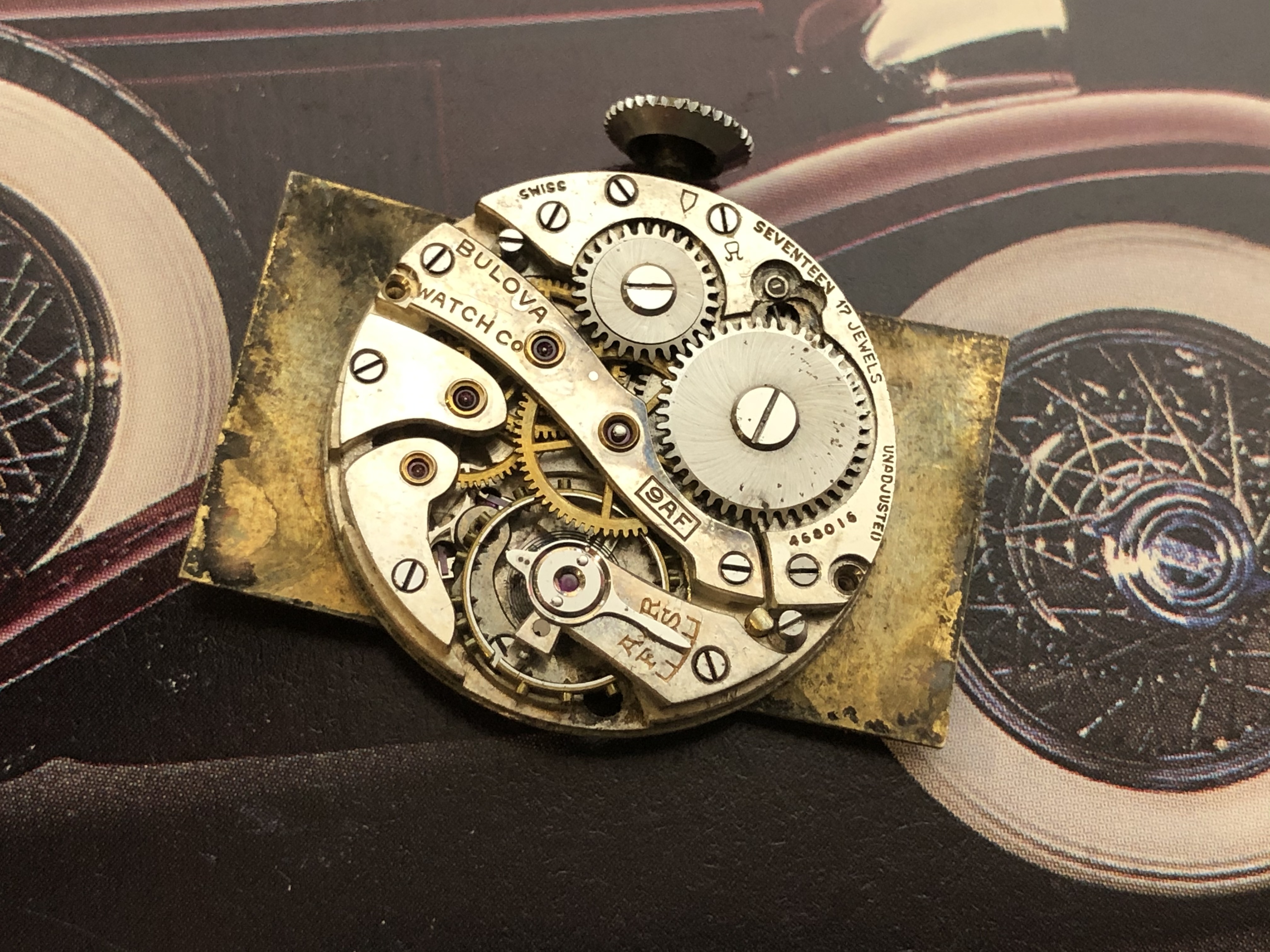 Wading into the deep end of the watch box again today, 1929-1931 “Prentice”. Bulova movements from the 1920s-1940s have date code symbols denoting their production year. This one is a bit of an oddity in that it has date codes for both 1929 and 1930 - i.e., the symbols located up by the crown that look like a shield (1929) and something similar to an omega character (1930).