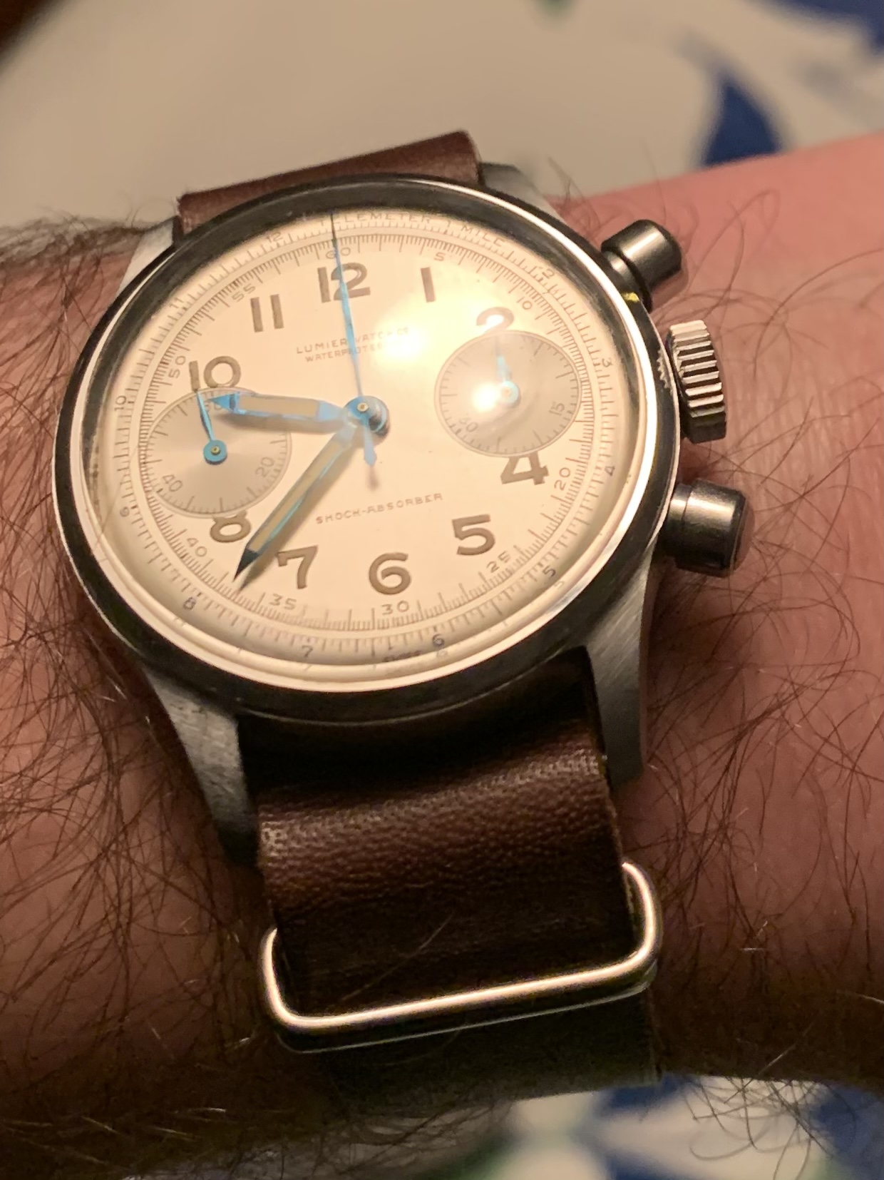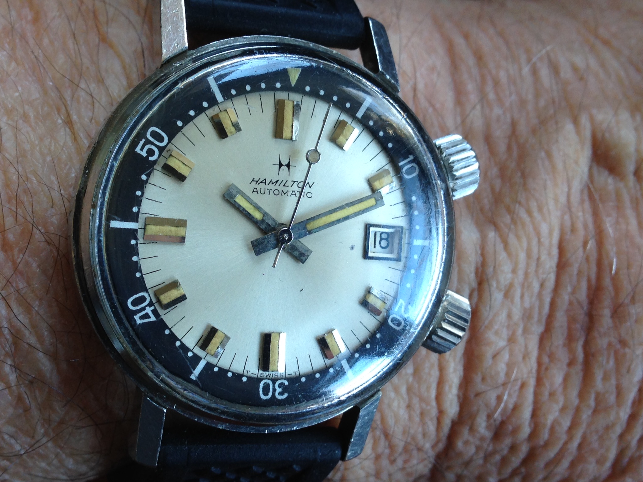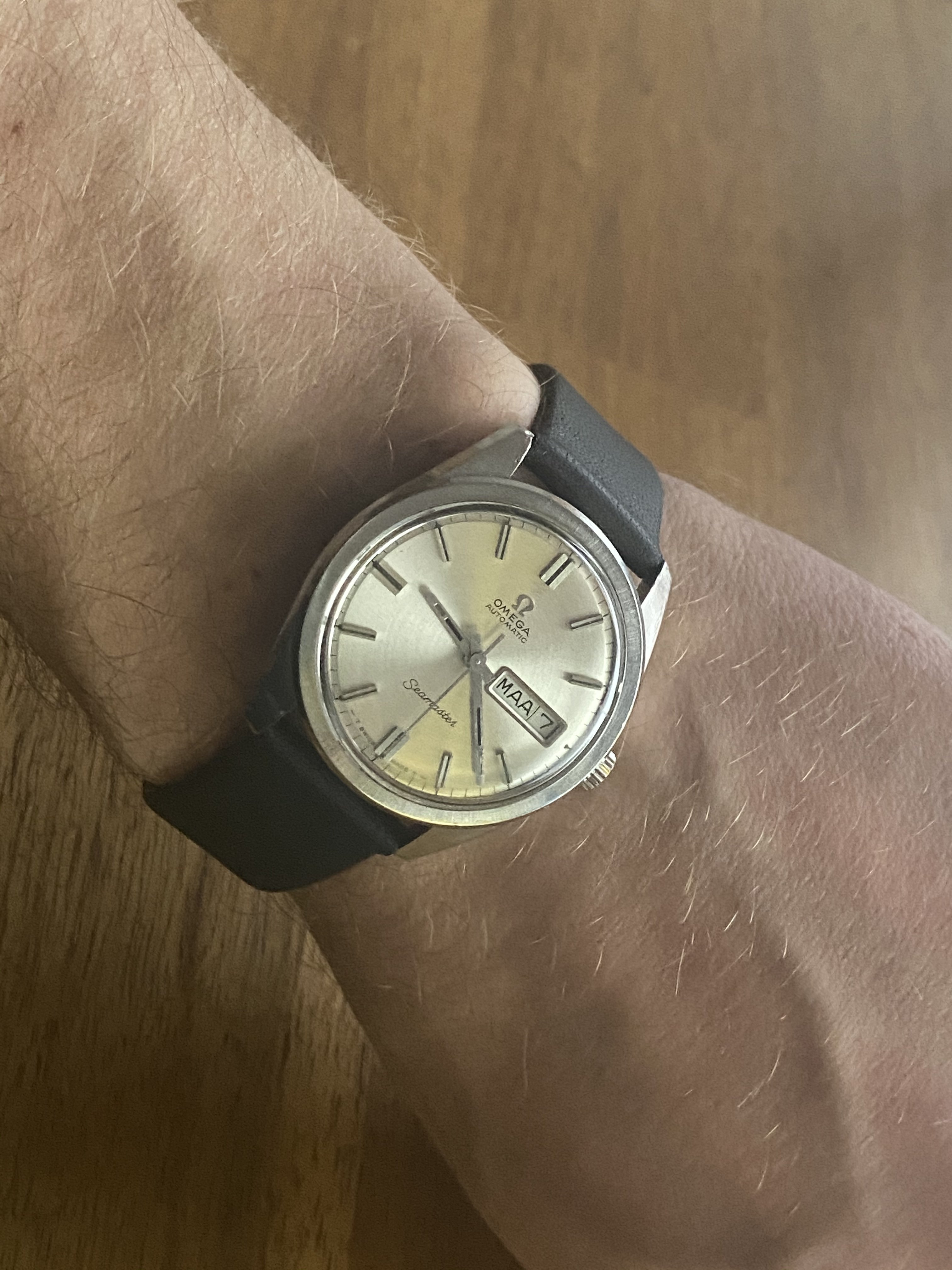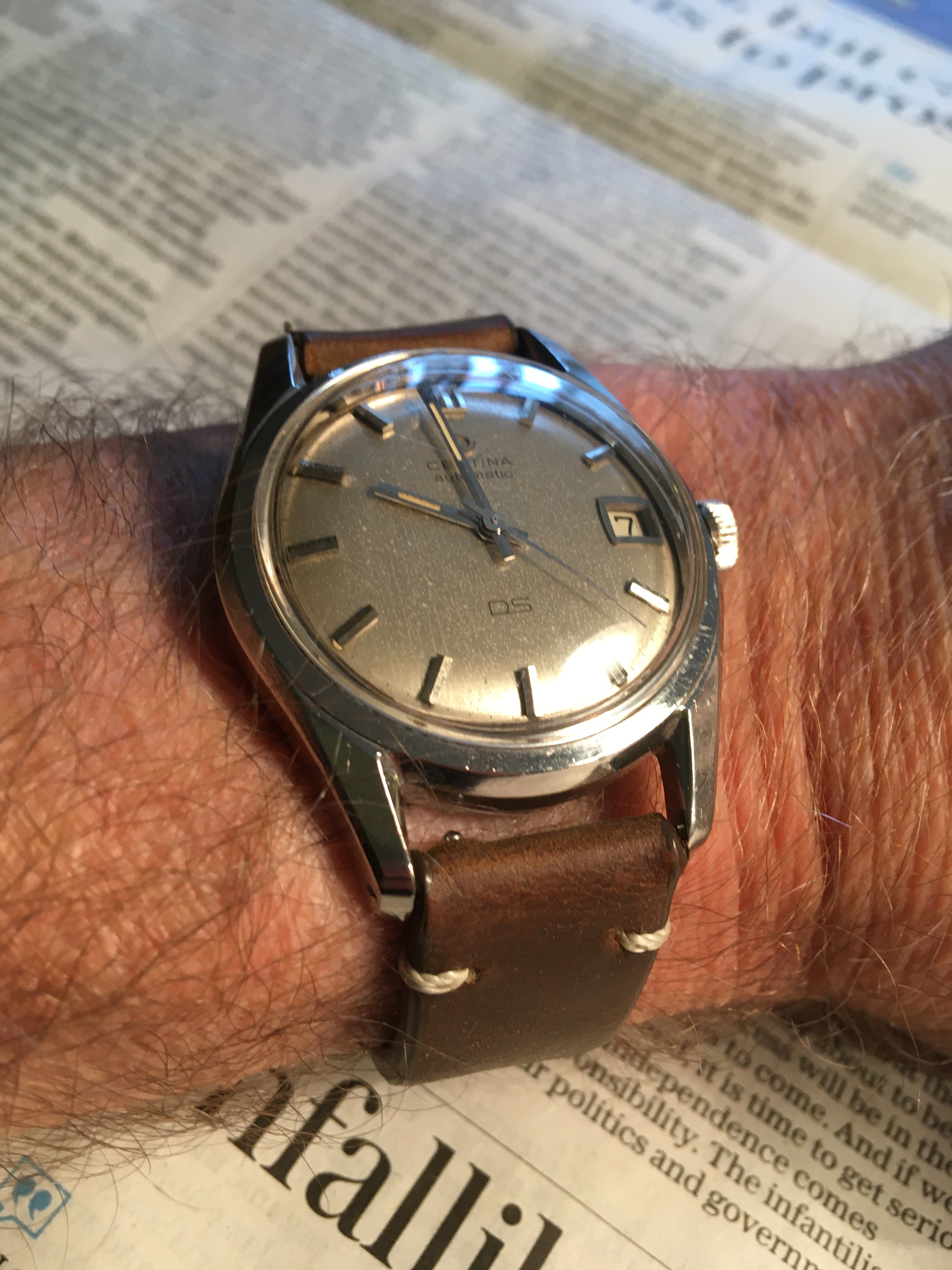 Recent pick-up of an Edox Delfin with a funky 1970s stainless steel C-case and a cream/grey fume dial with orange markers. Just back from service and the manually-wound 17-jewel AS 1951 is within 10 seconds per day after six days. Not bad...