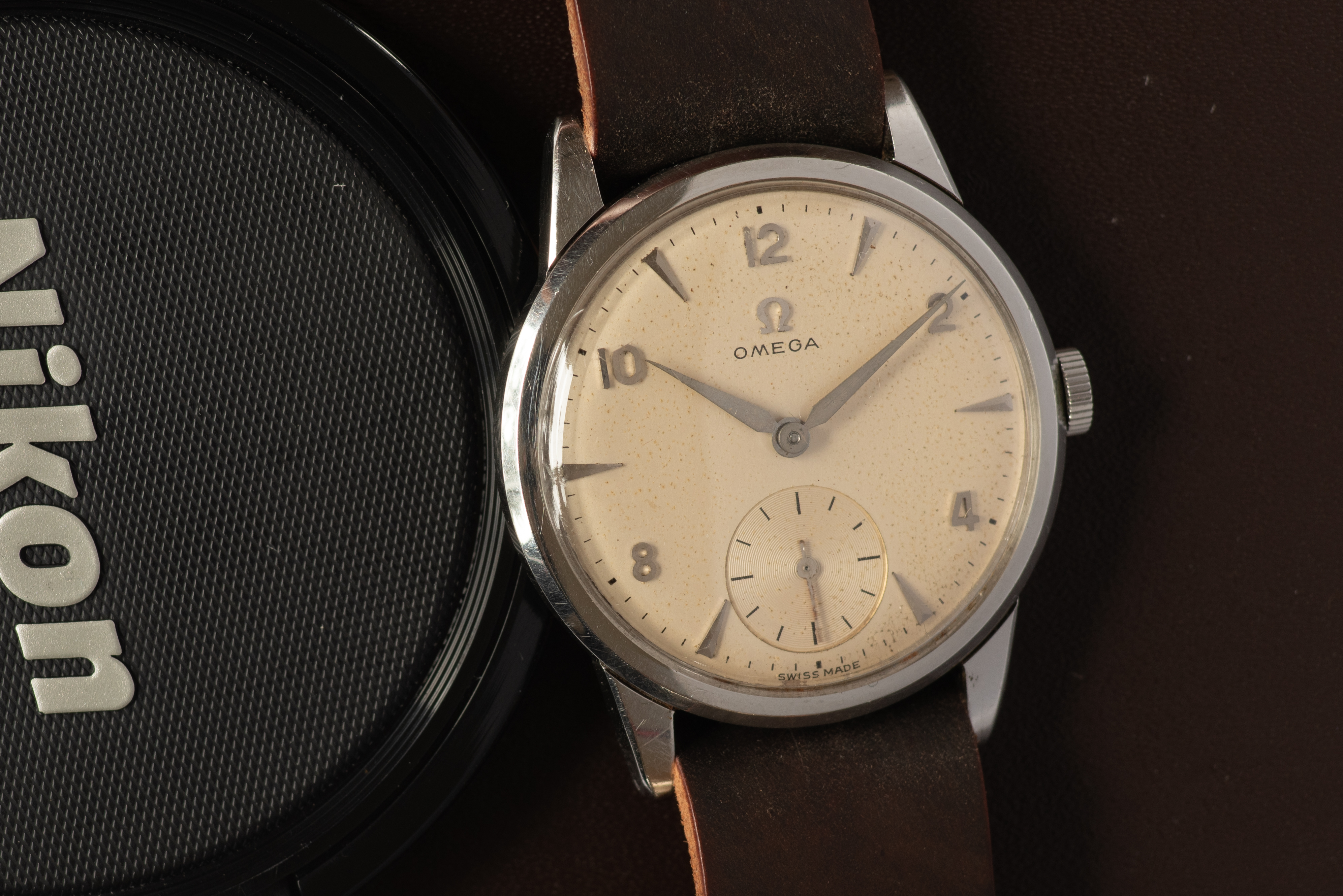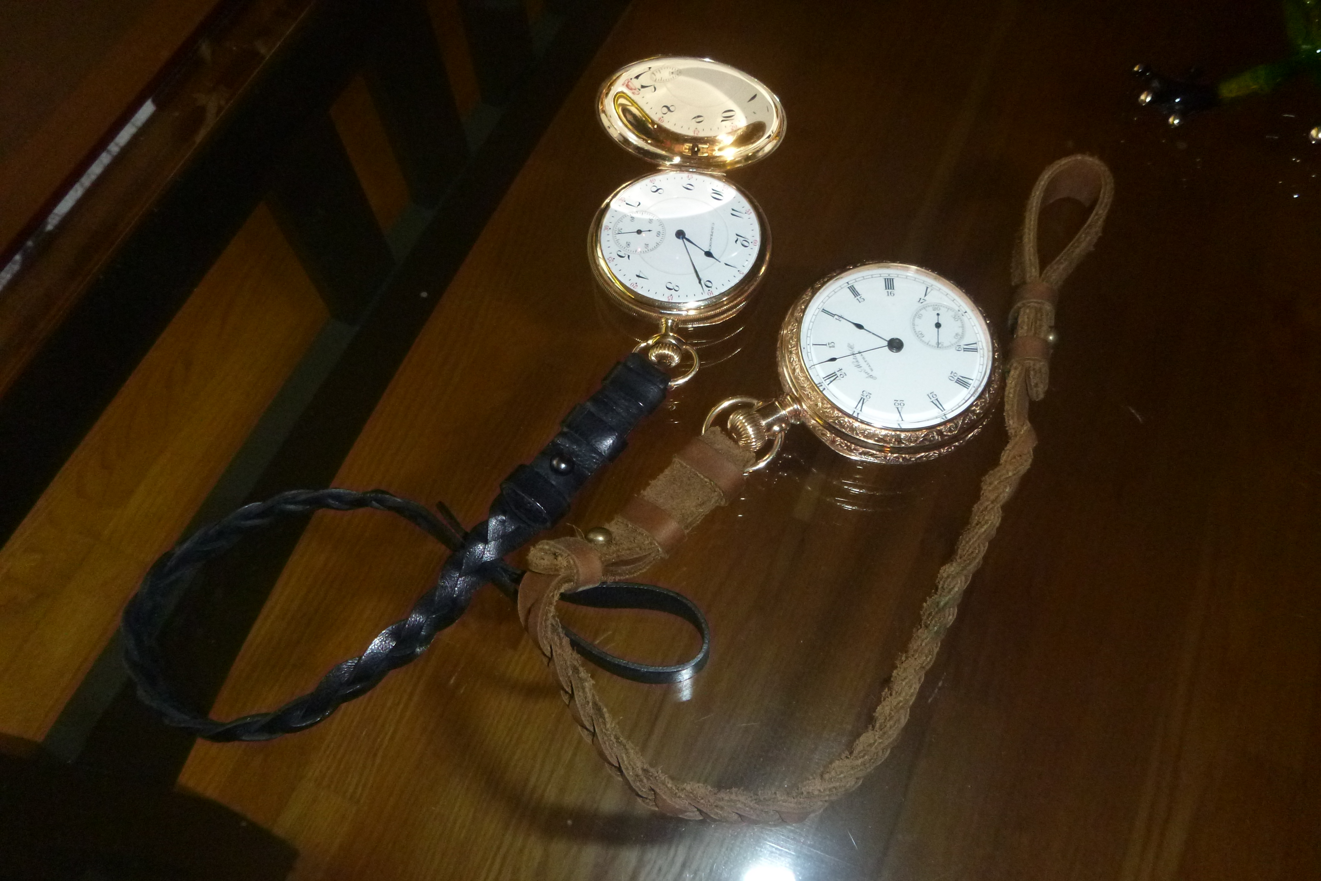 Posts 3,817 Likes 16,153 Fritz ·Dec 13, 2020 off with the 1888 Waltham model 83, on with the 1904 Elgin 156... both done in kinky leather courtesy of @DaveK this'll get @Mad Dog jealous. to balance things out we're also wearing the beater Hamilton on a cheap-ass Nato Sunday bonus leopard frog...