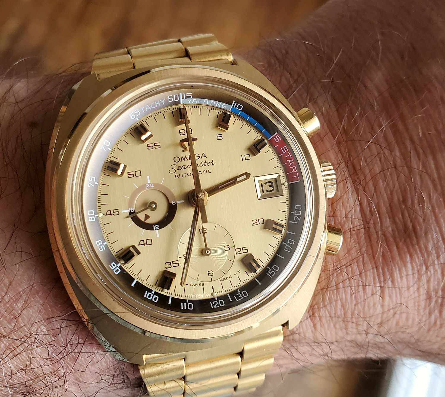 Posts 1,387 Likes 14,427 8926ob ·Dec 13, 2020 bristnj 1969 Waltham chrono -all lume indexes, hours bezel, Valjoux 7736 (custom vintage project). Nice bracelet. What is it? Gotta encourage resto-mods too!