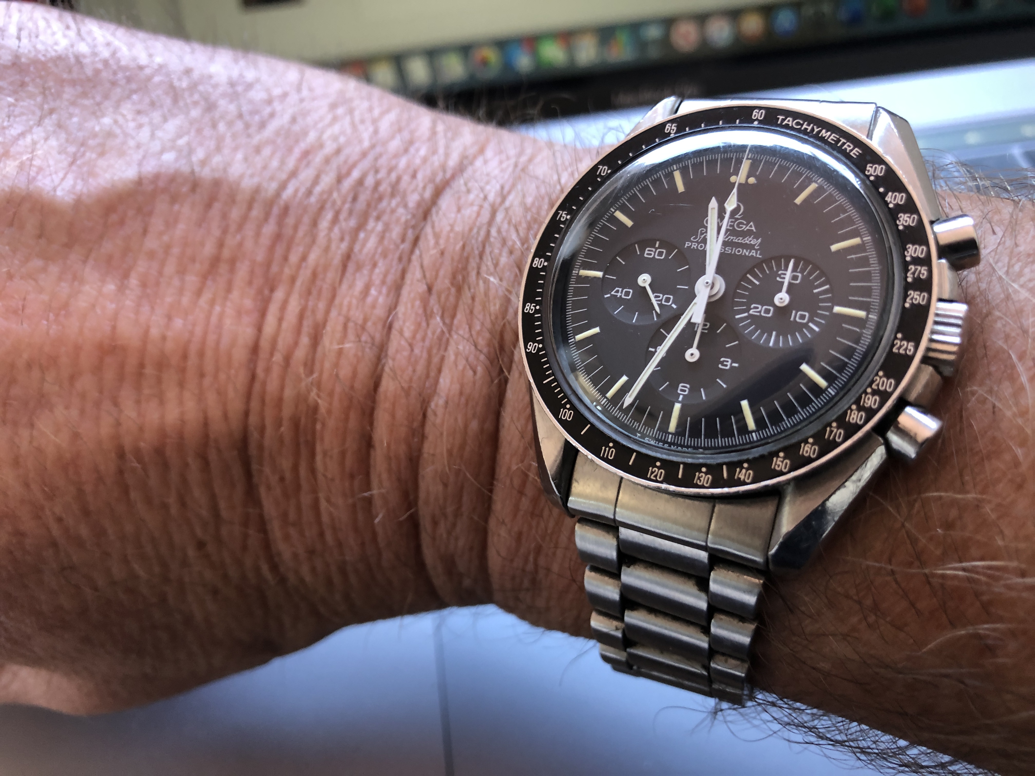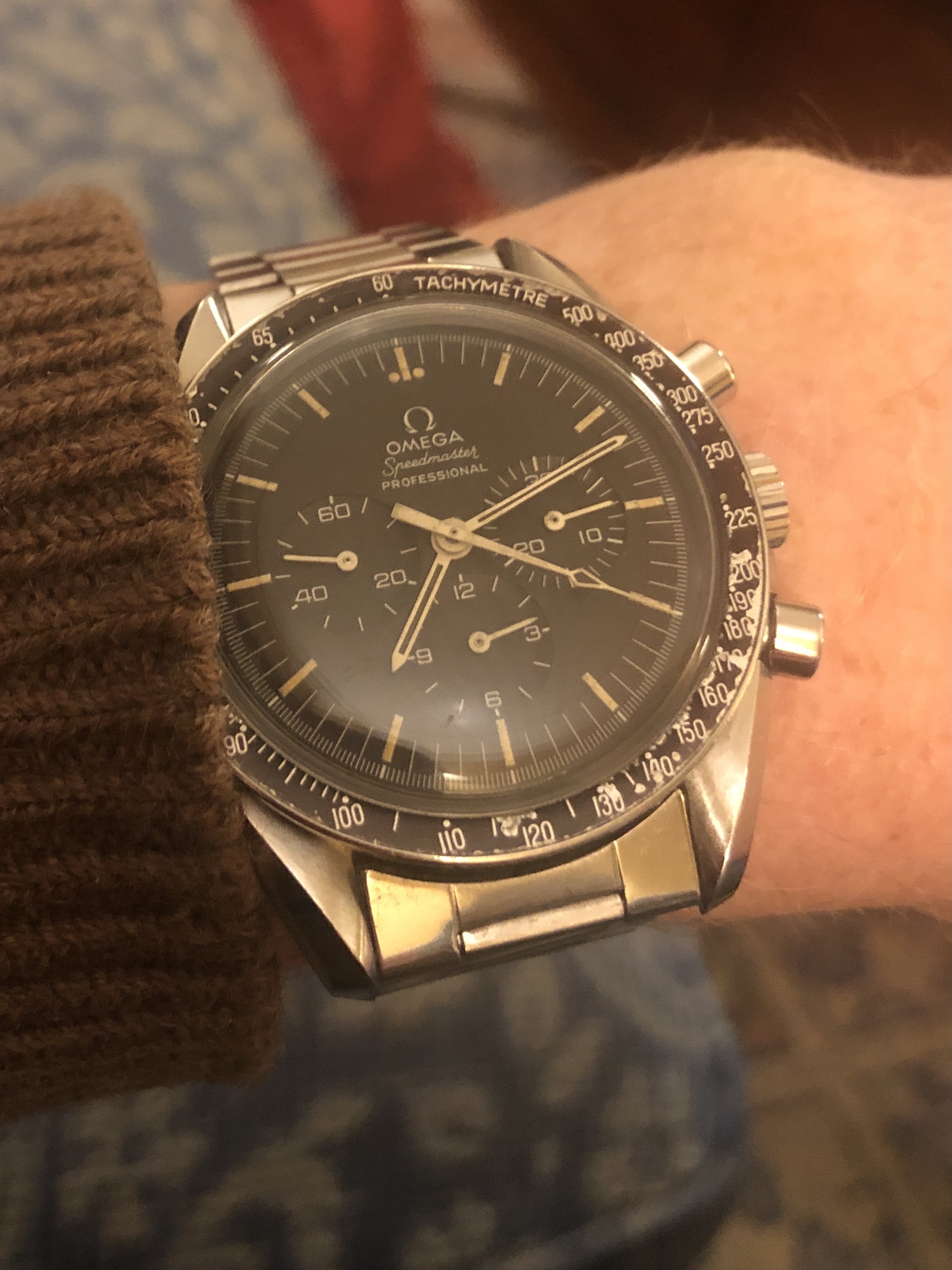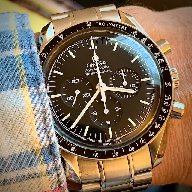 Wearing Speedmaster on the other arm at the moment due to broken left wrist. Not sure it is a great idea, am repeatedly clanging it against something, anything on that side....