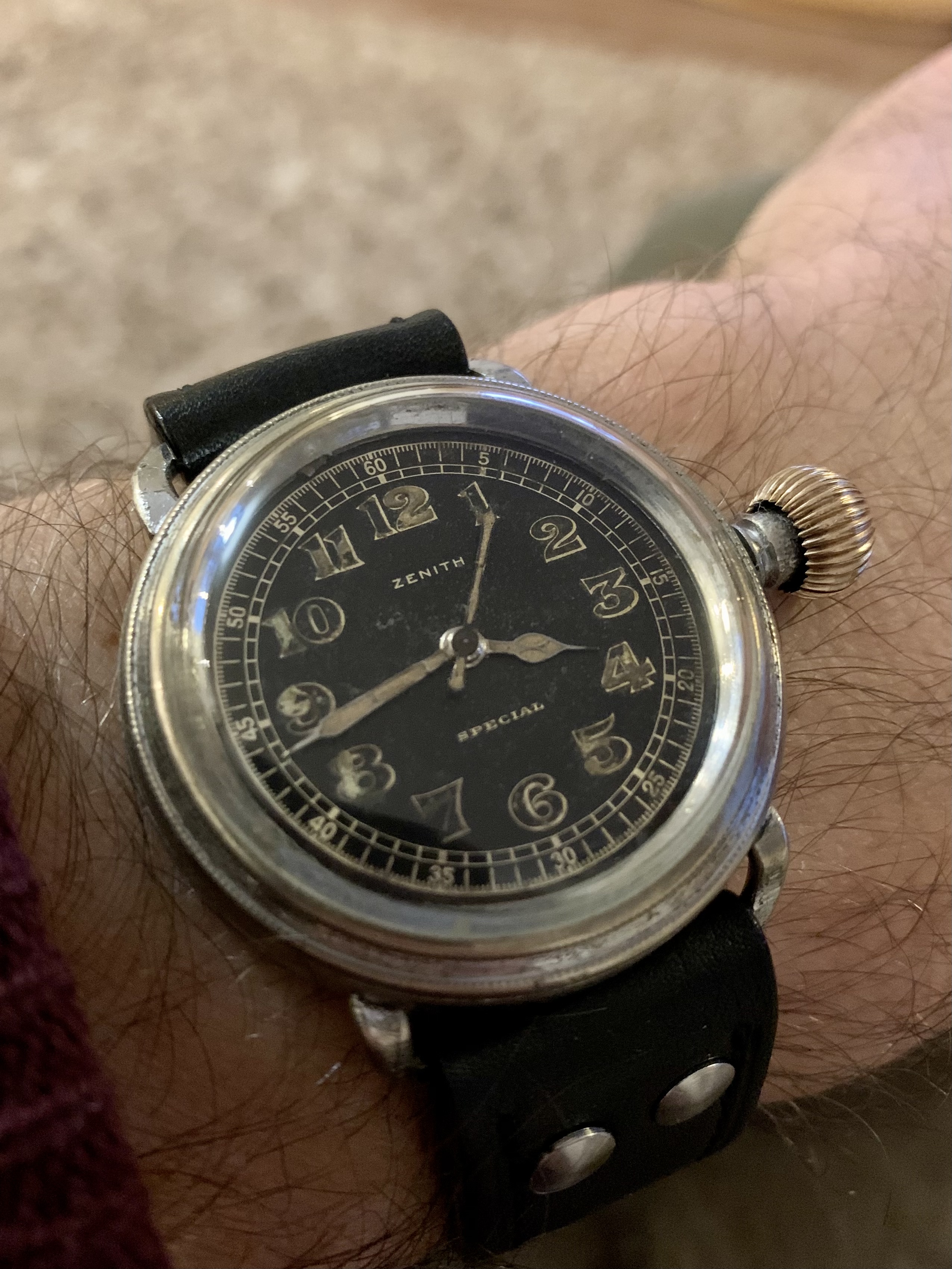 Posts 2,053 Likes 22,099 Norfolk ·Dec 16, 2020 1934 Zenith Special central second. Who likes a BIG crown?!!
