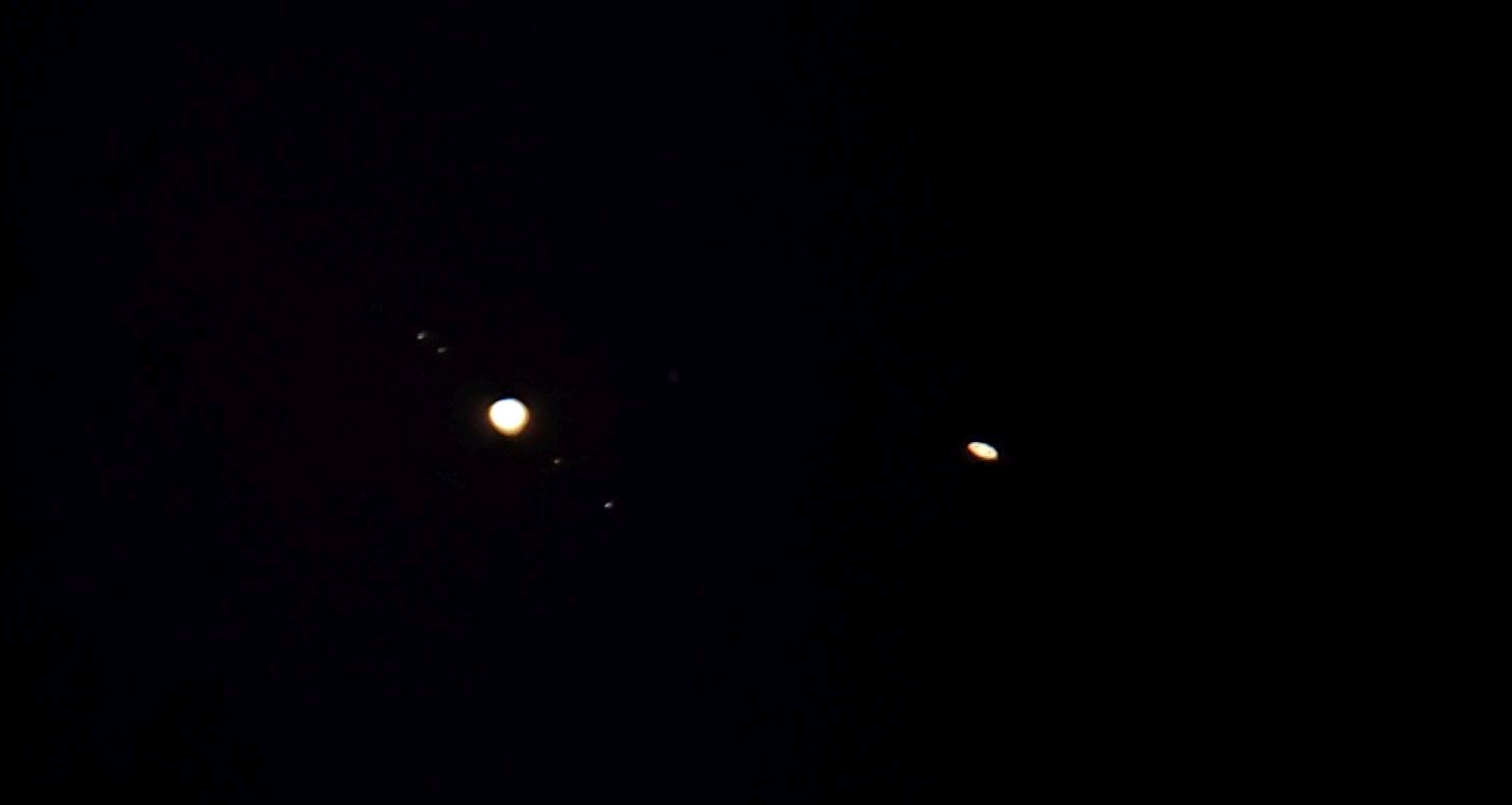 But overexposed shows Jupiter's moon's more like we saw them. We were also able to discern Saturn's Titan, but it do not come through here (taken the very amateurish way of holding my phone over the eye piece).