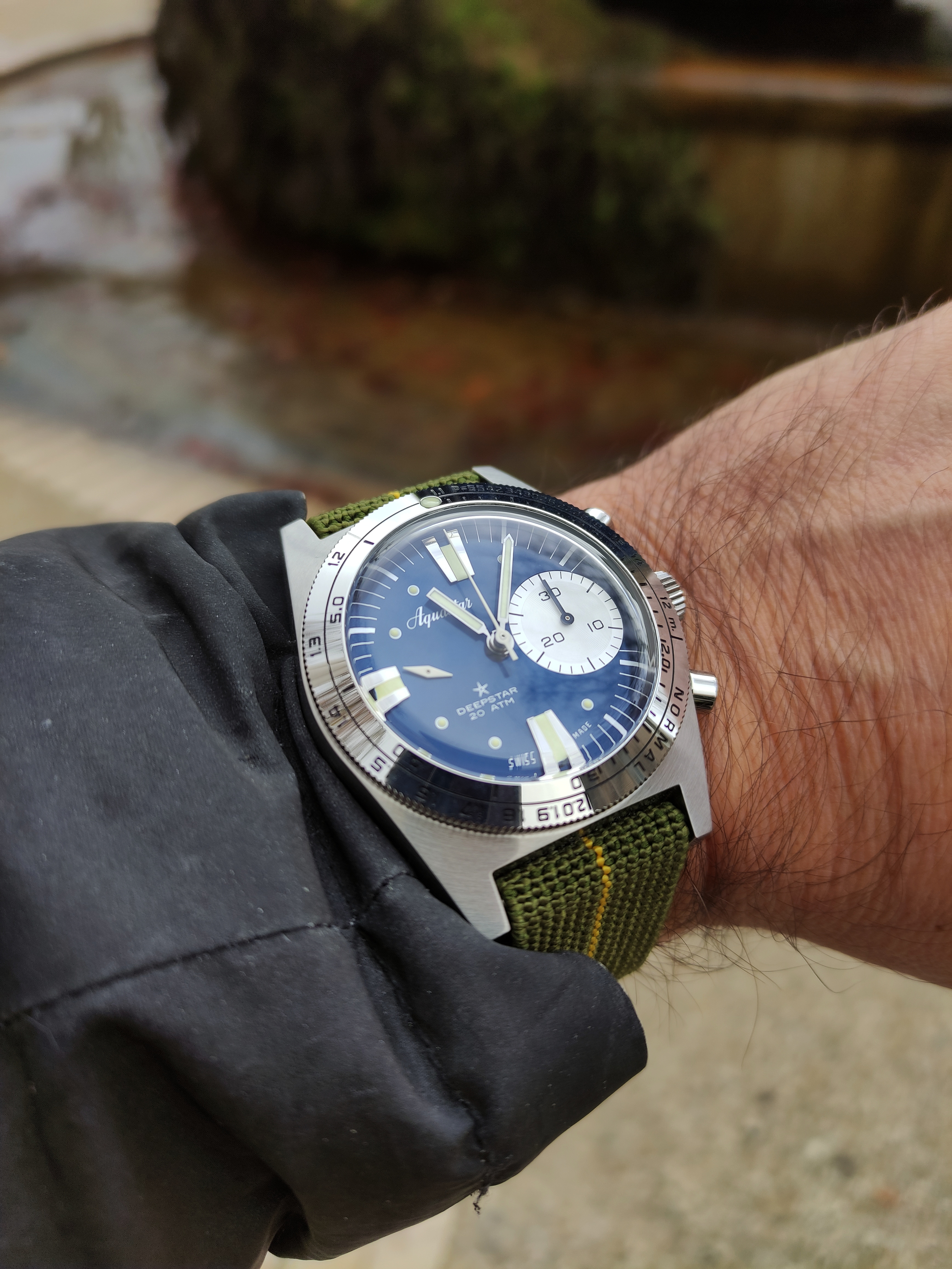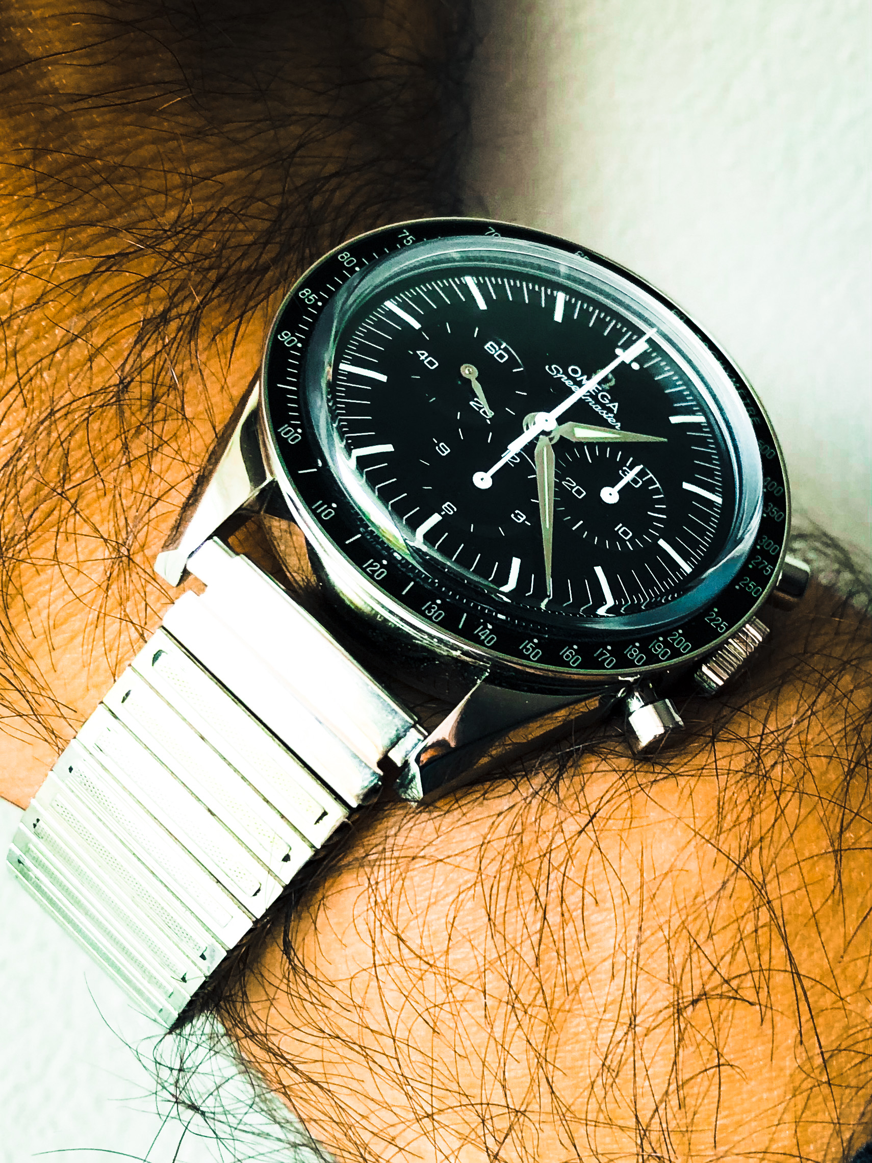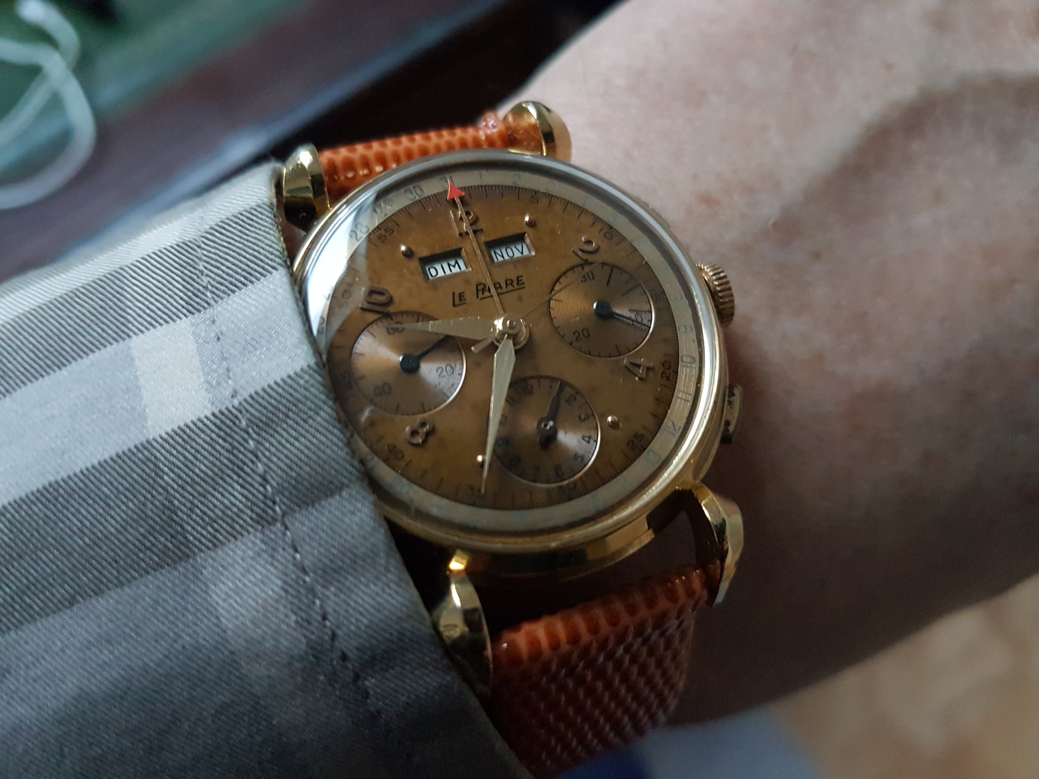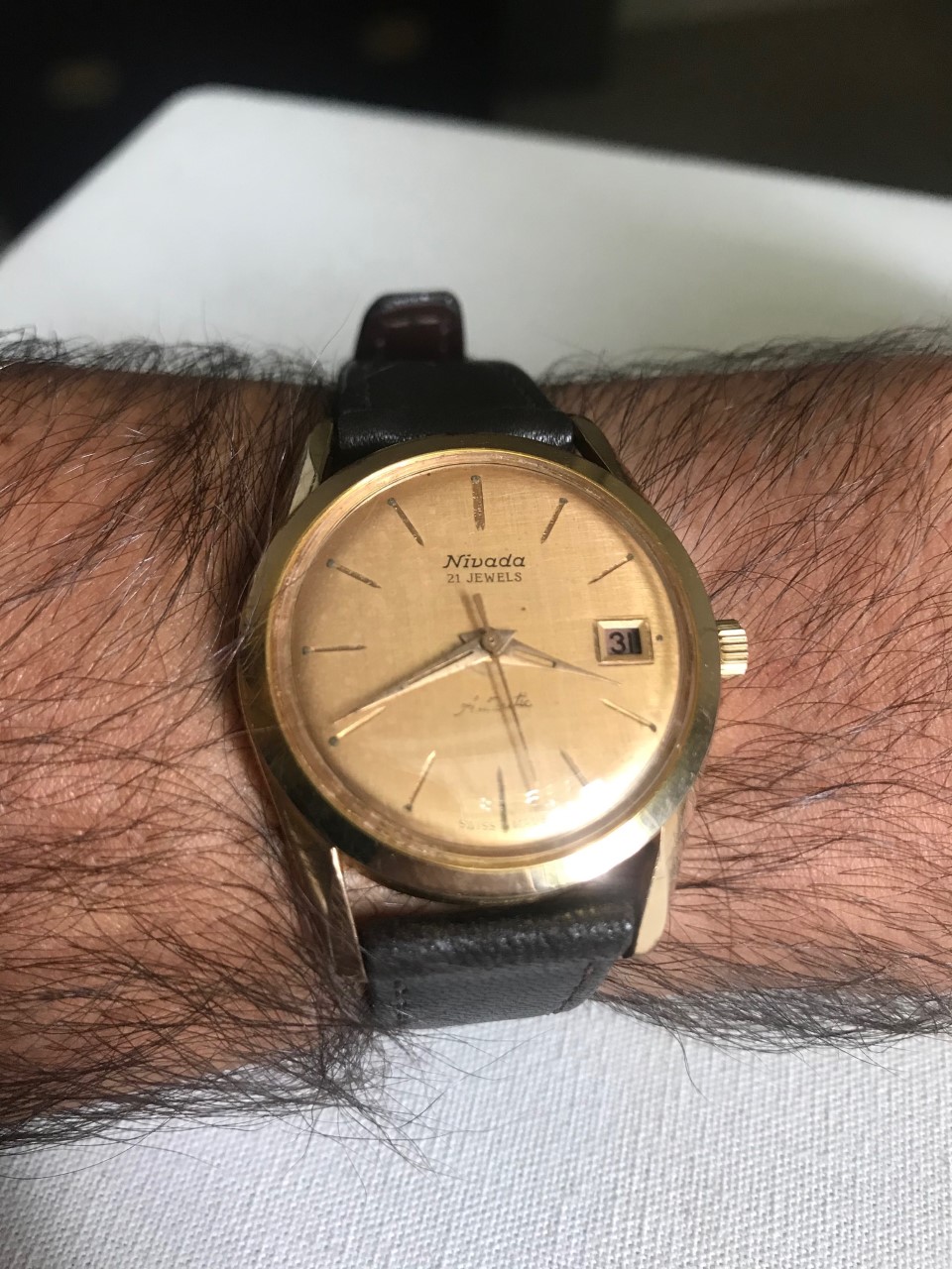 Last incoming of the year. Gold-plated, manual-wind Nivada Antarctic with gold linen dial. Interestingly, the hour markers are incised into the dial. Hard to capture the awesomeness of the faceted Antarctic lugs in photos.