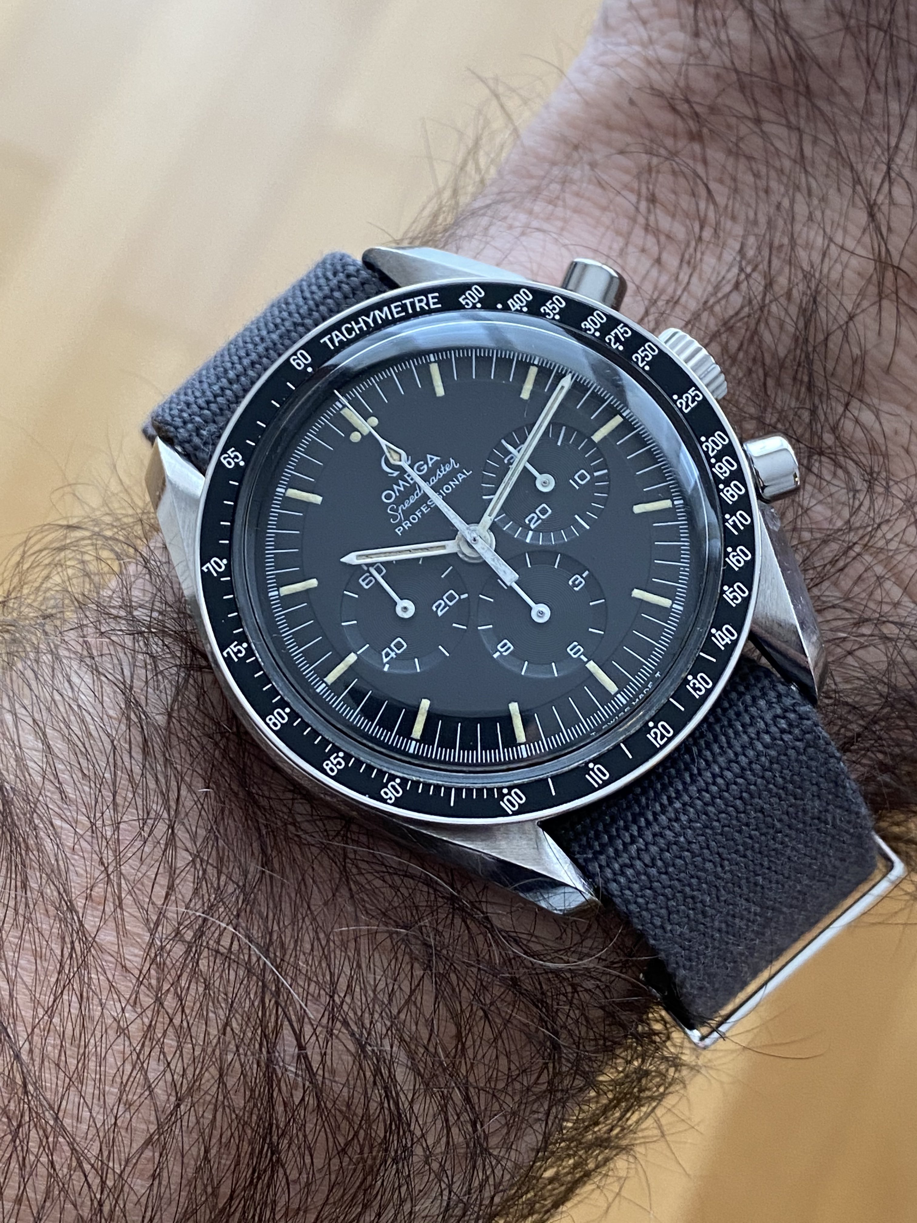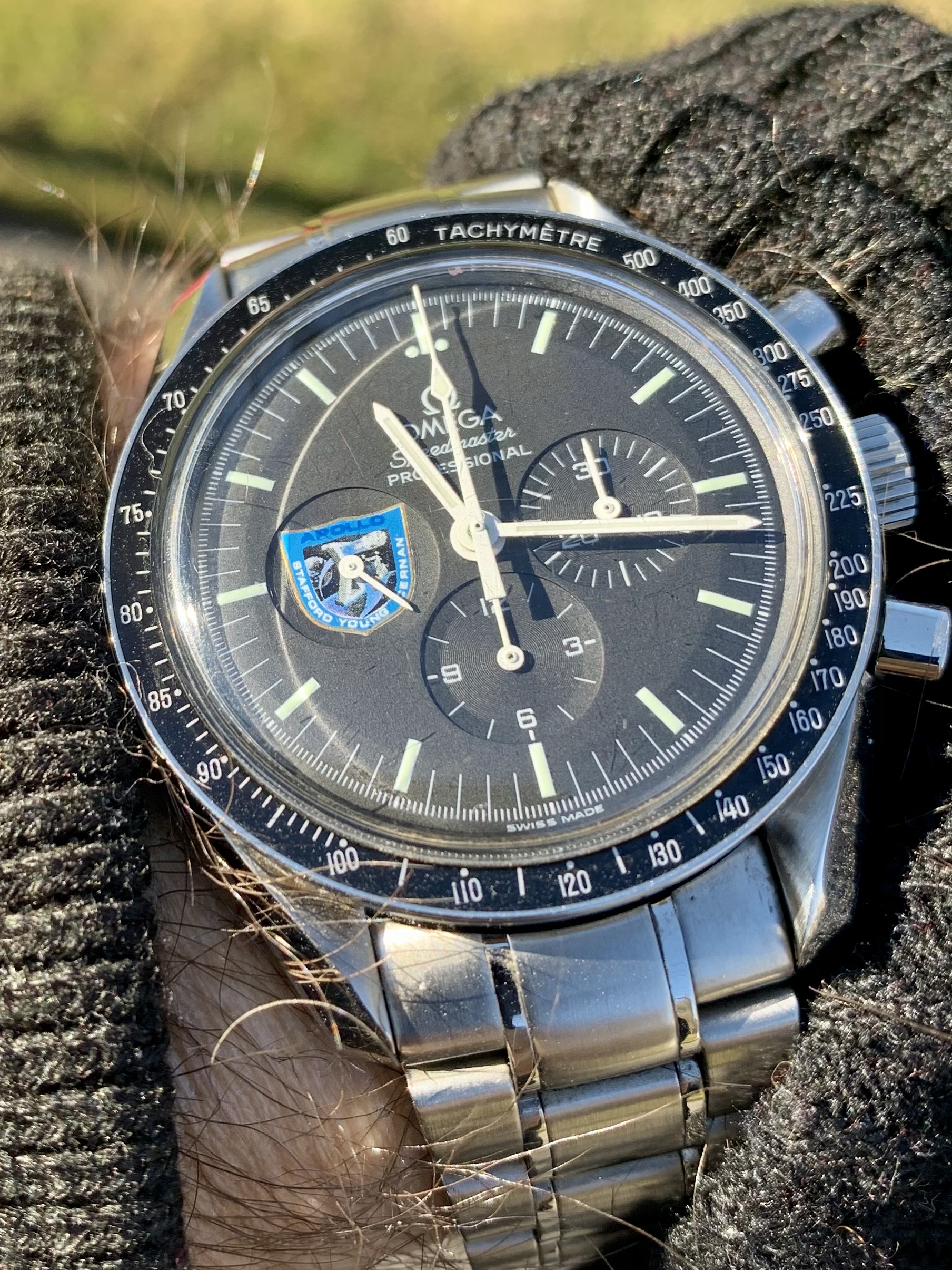 I like those Speedmasters with badges on the sub dial! Very cool piece 馃憤