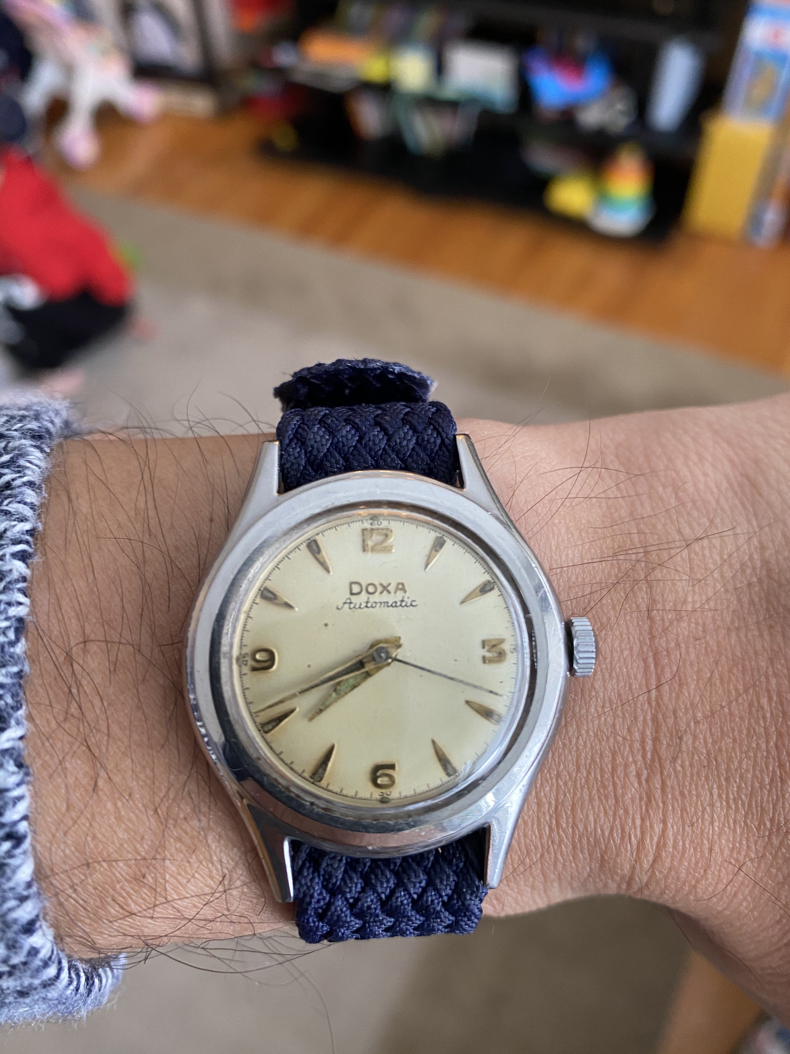 Posts 8 Likes 4 Selmaguy ·Jan 8, 2021 30t1 Taking out the hel chrono for a spin. Trying to show the blue hands, and the super lite cooper patina of the dial. Ok another photo, of the hands So many great memories are associated with wearing and seeing vintage watches. Thanks.