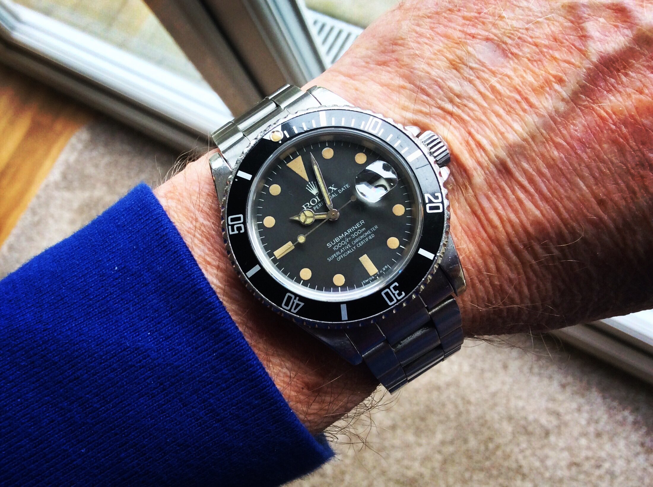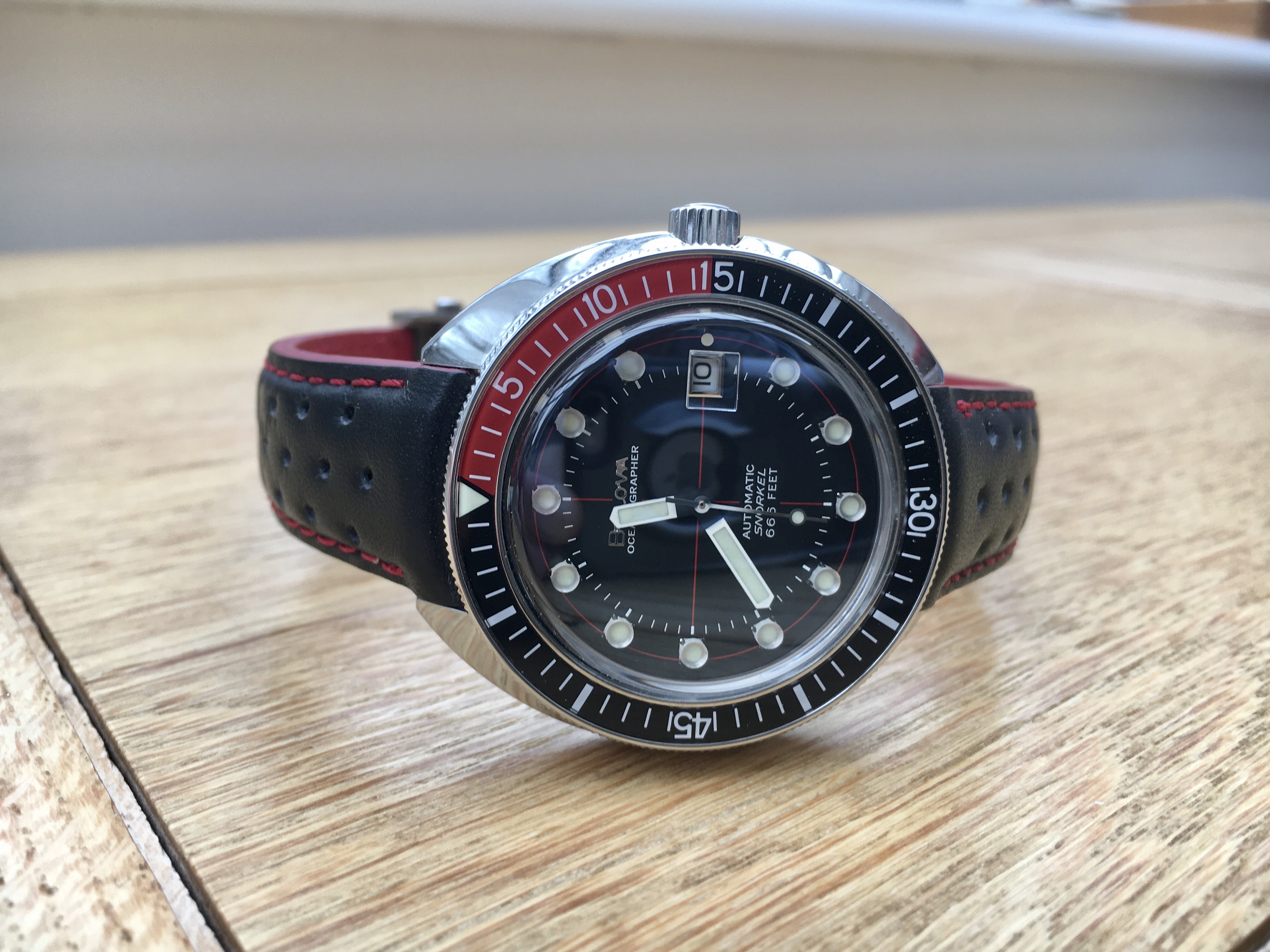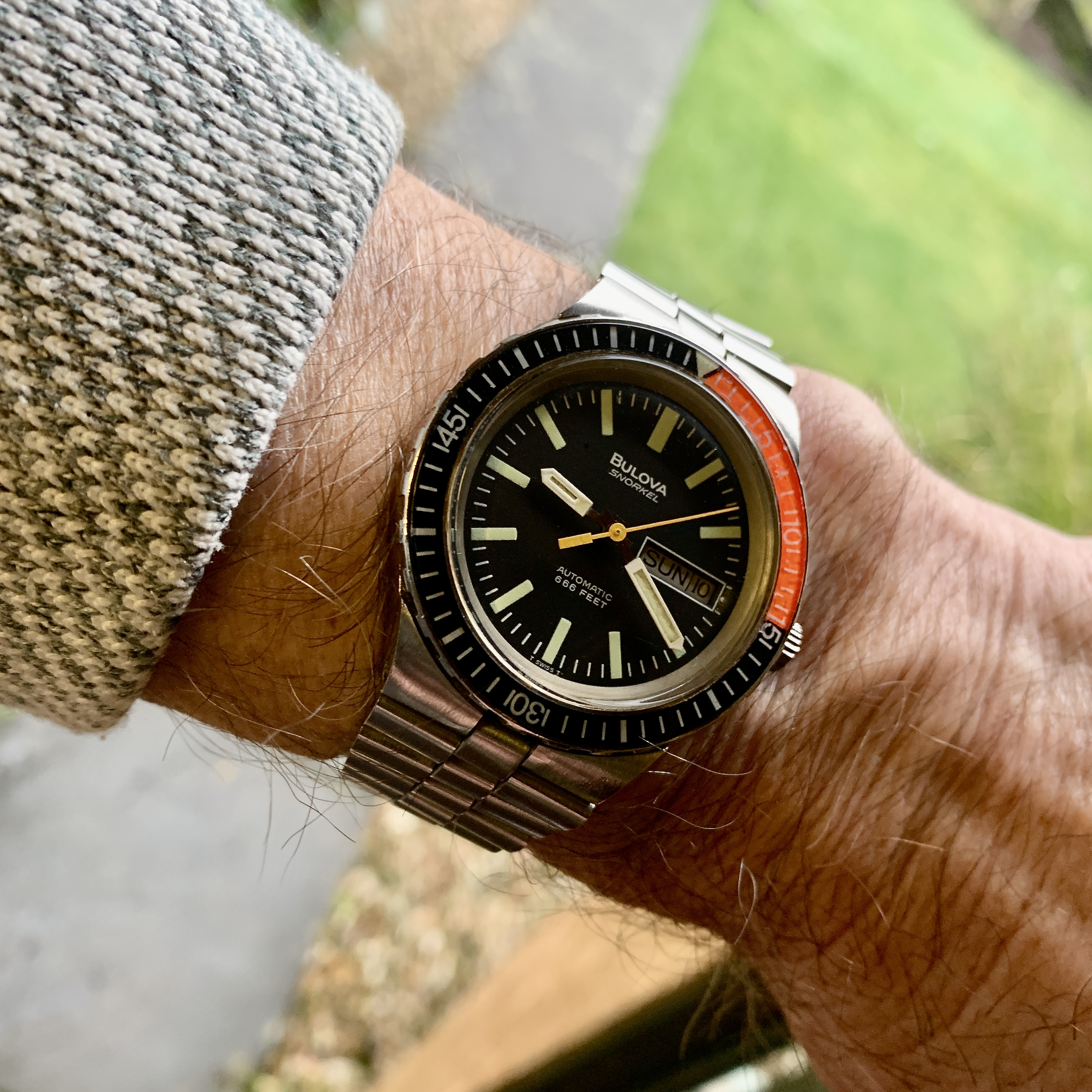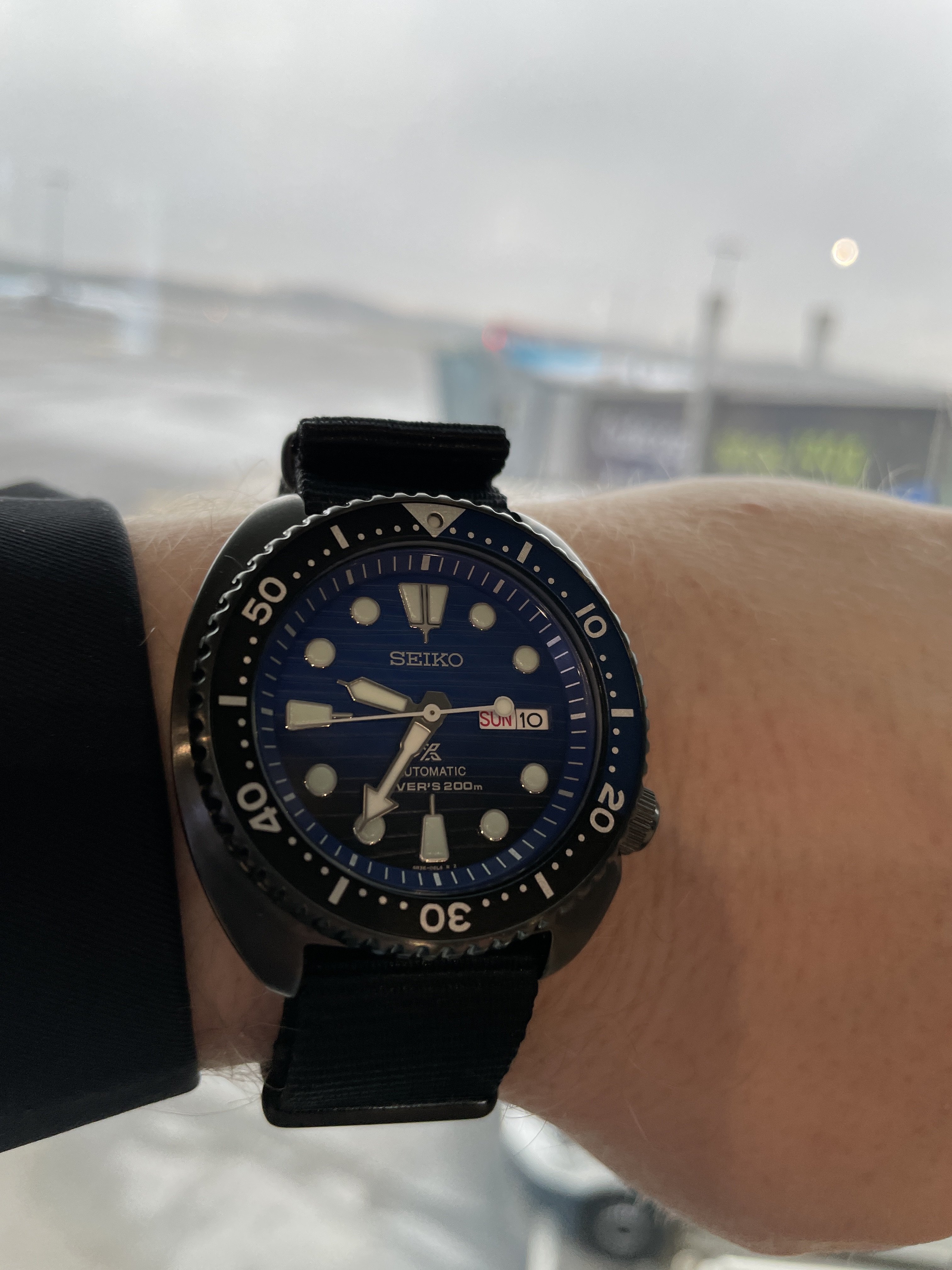 Haha...it's a stock SNZH53. There's also the SNZH55 black and SNZH57 black/gold variants. Their glassy bezels and generous 42mm cases make them the basis for the popular Fifty-"five" Fathoms mods with the Seiko mod sub-culture. Worth a look-up!