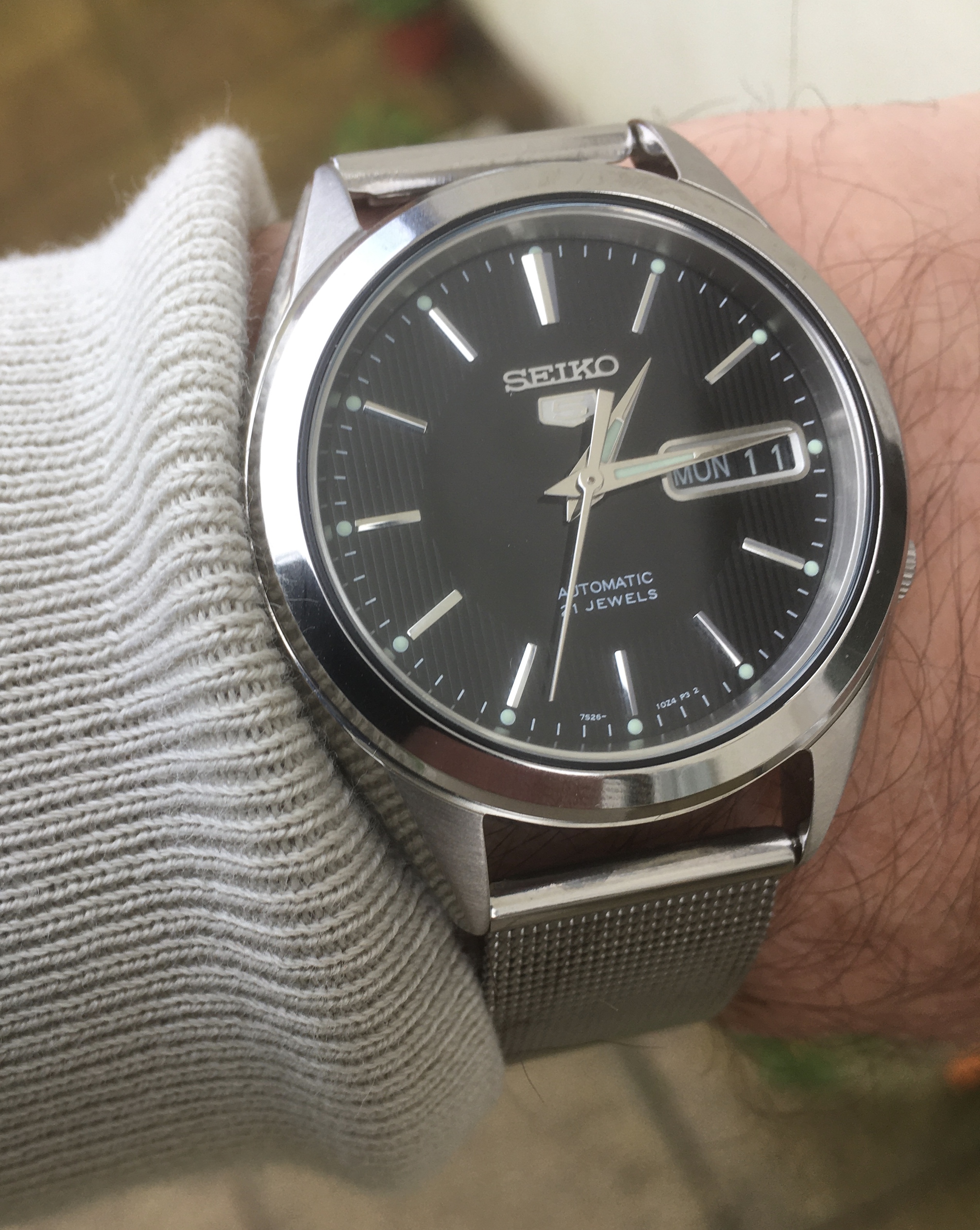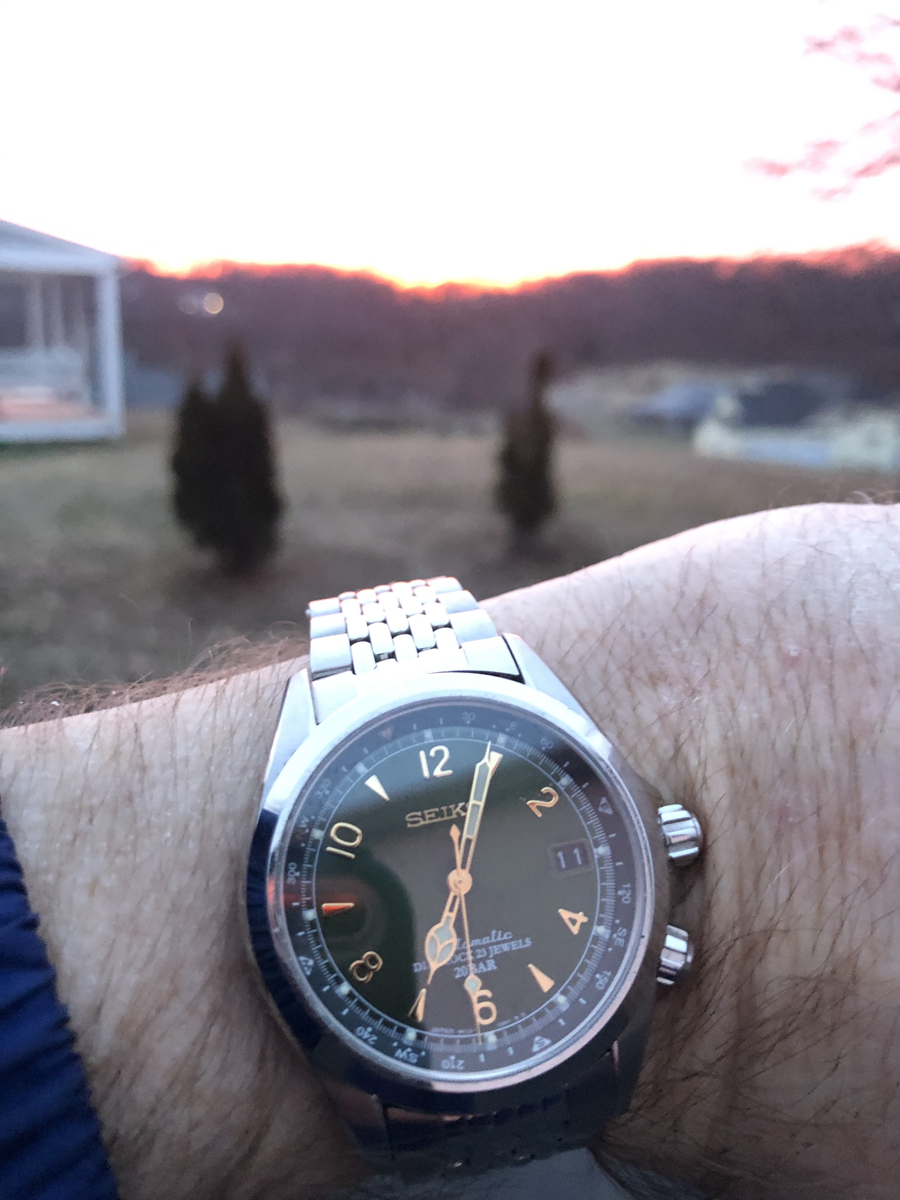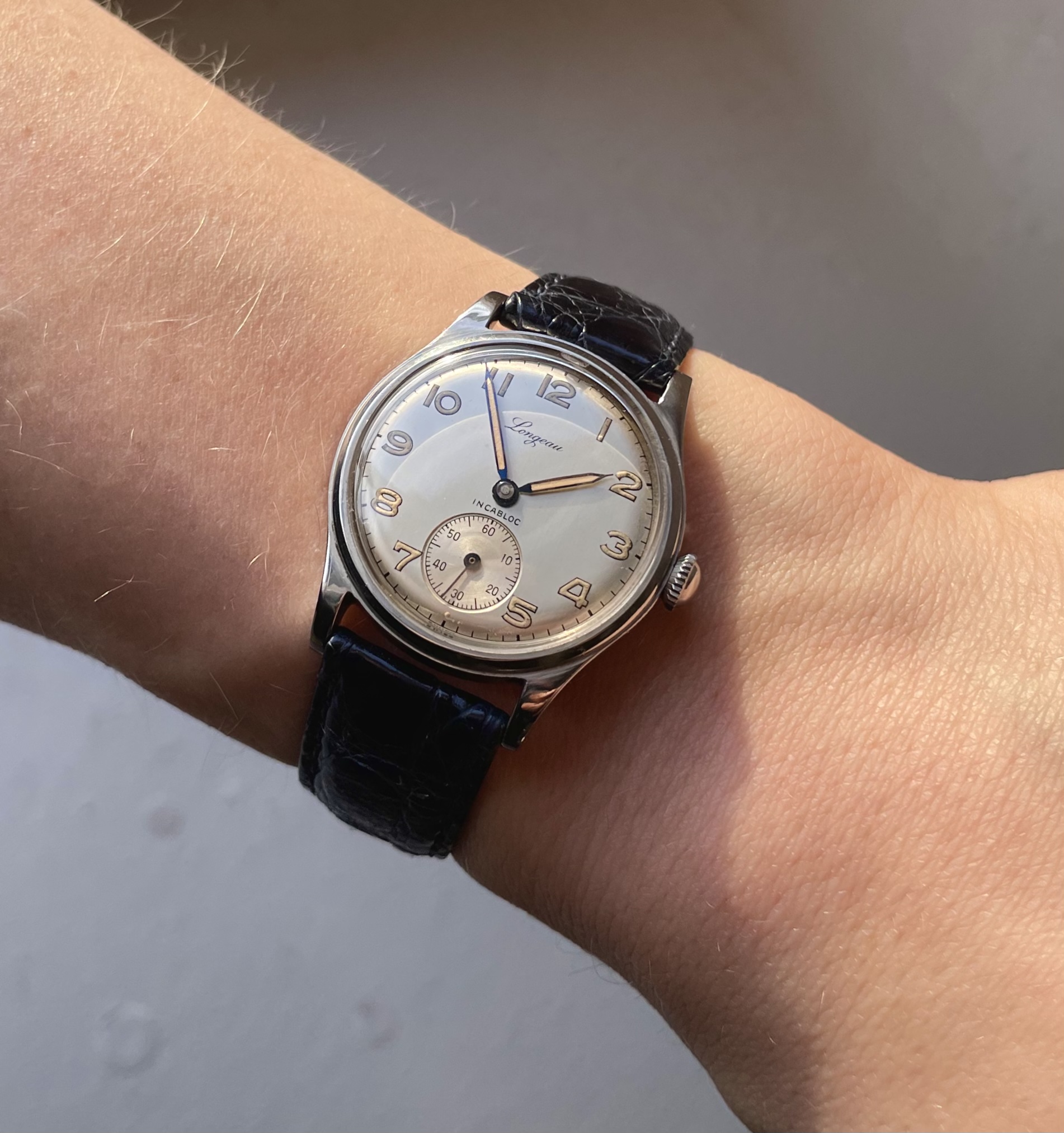 This today. I鈥檝e had it for decades, but may have worn it for a month in all that time. The Rodania version of the Bulova 955Q railroad model, with one difference. A screw-down crown. It has been on a black leather strap for all the years I鈥檝e owned it, but this bracelet came my way recently. Not my favourite bracelet, but it will do.