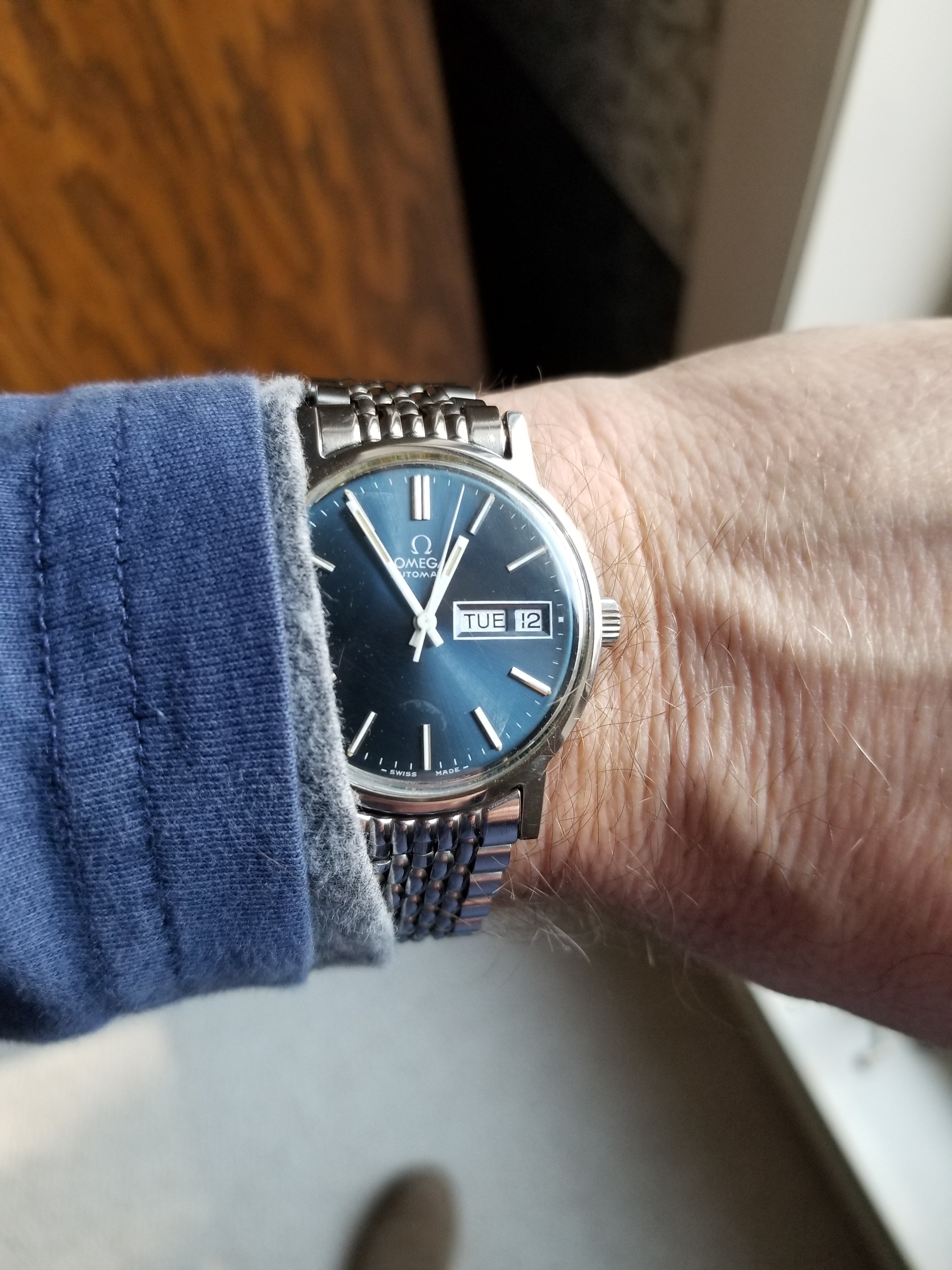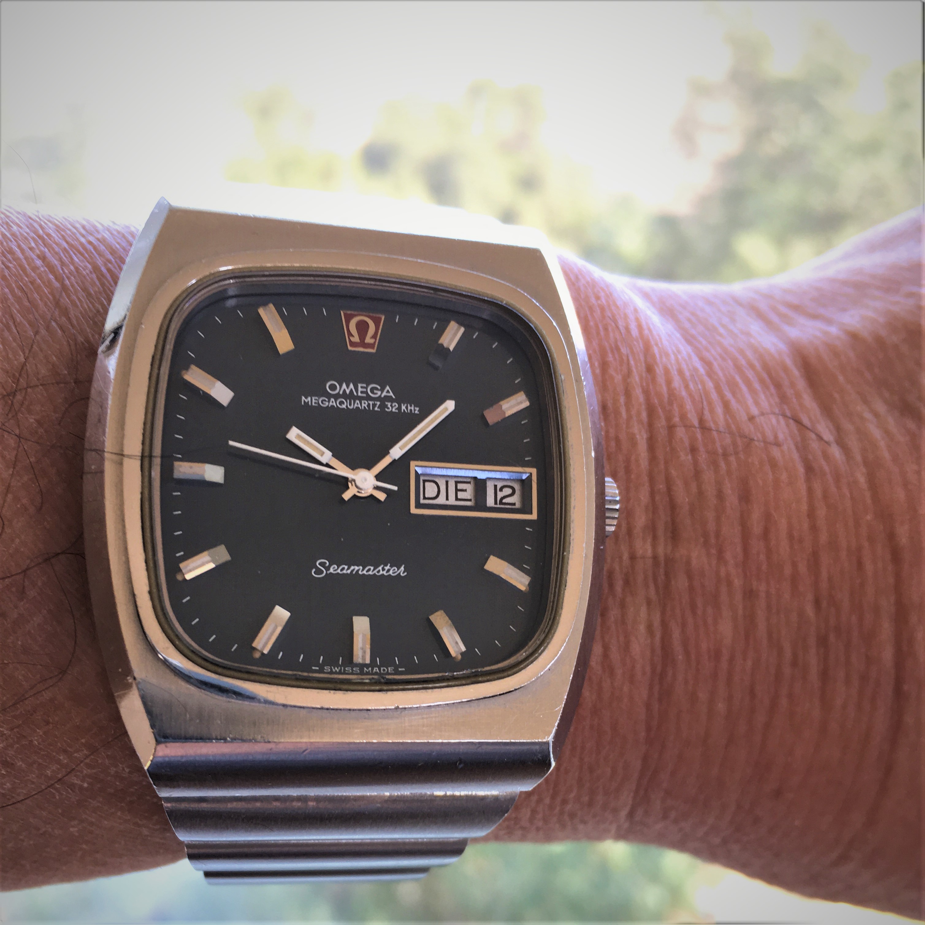 Showing off my "new to me" Seamaster Megaquartz 196.0023. She's a bit of a beast but such a beauty! A good thing is that I'm learning German day abbreviations. And how to access/change the battery!