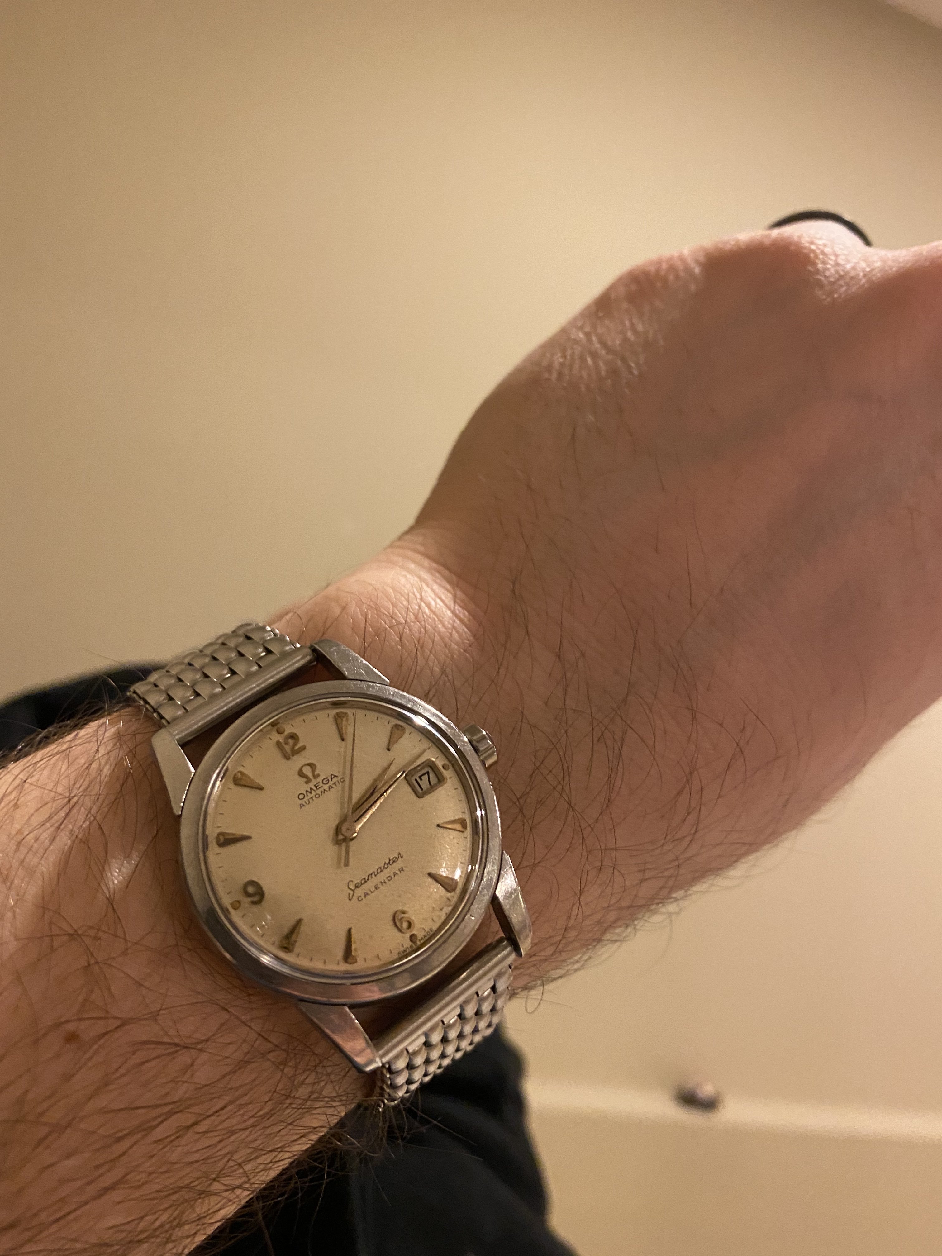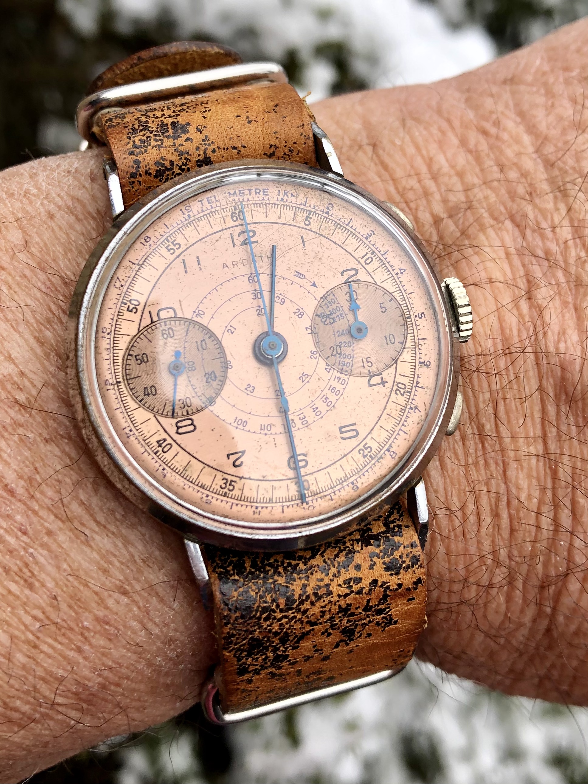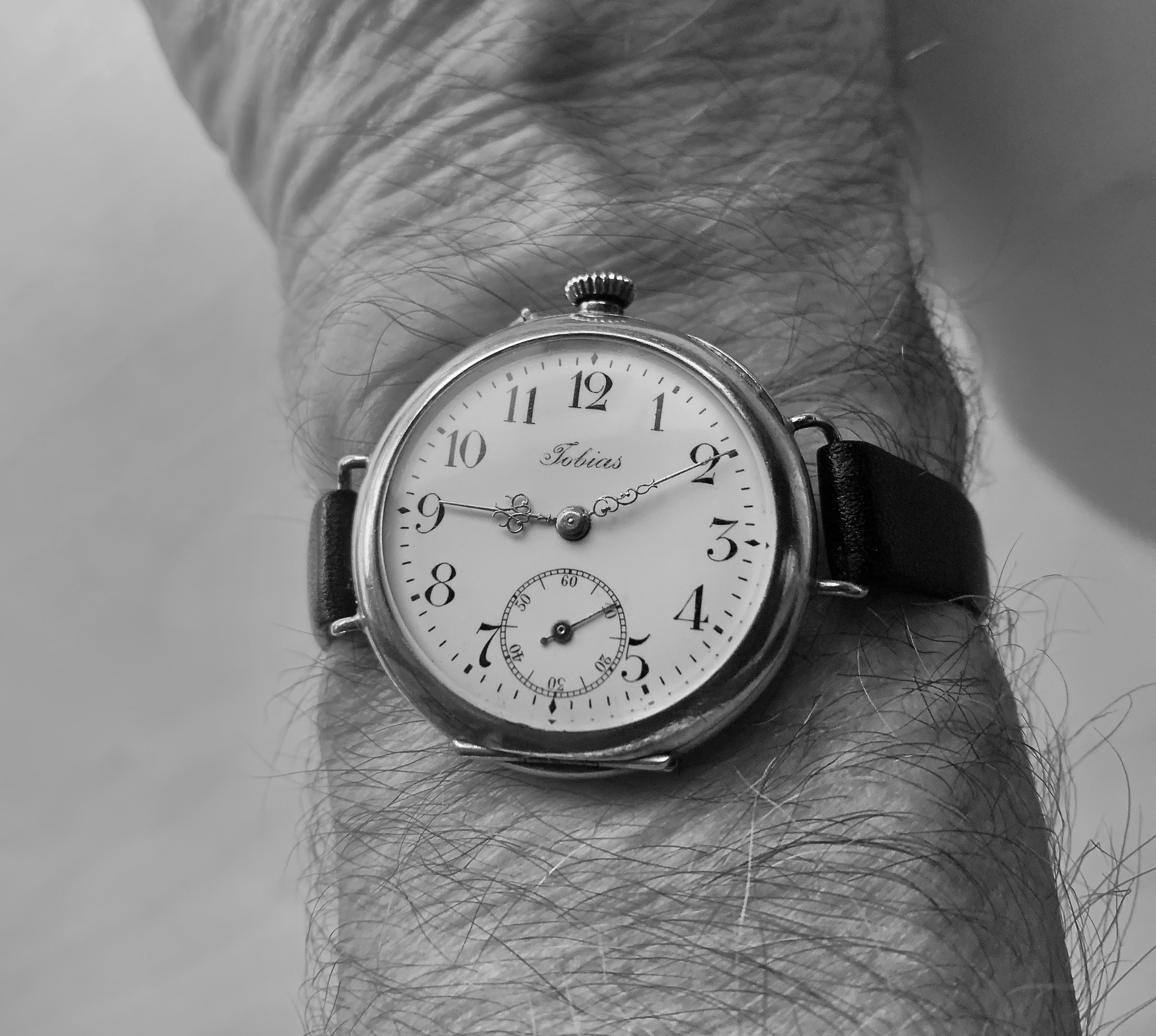 Posts 17,419 Likes 164,520 Alpha ·Jan 17, 2021·Kilt Owner, Beagle Parent, Omega Collector Going back in time this evening with a silver cased 'Tobias' conversion, freshly polished this afternoon so only right it saw some action 😀 Edited to add a wrist shot, surprisingly easy to read once you get used to it' Edited: Jan 17, 2021