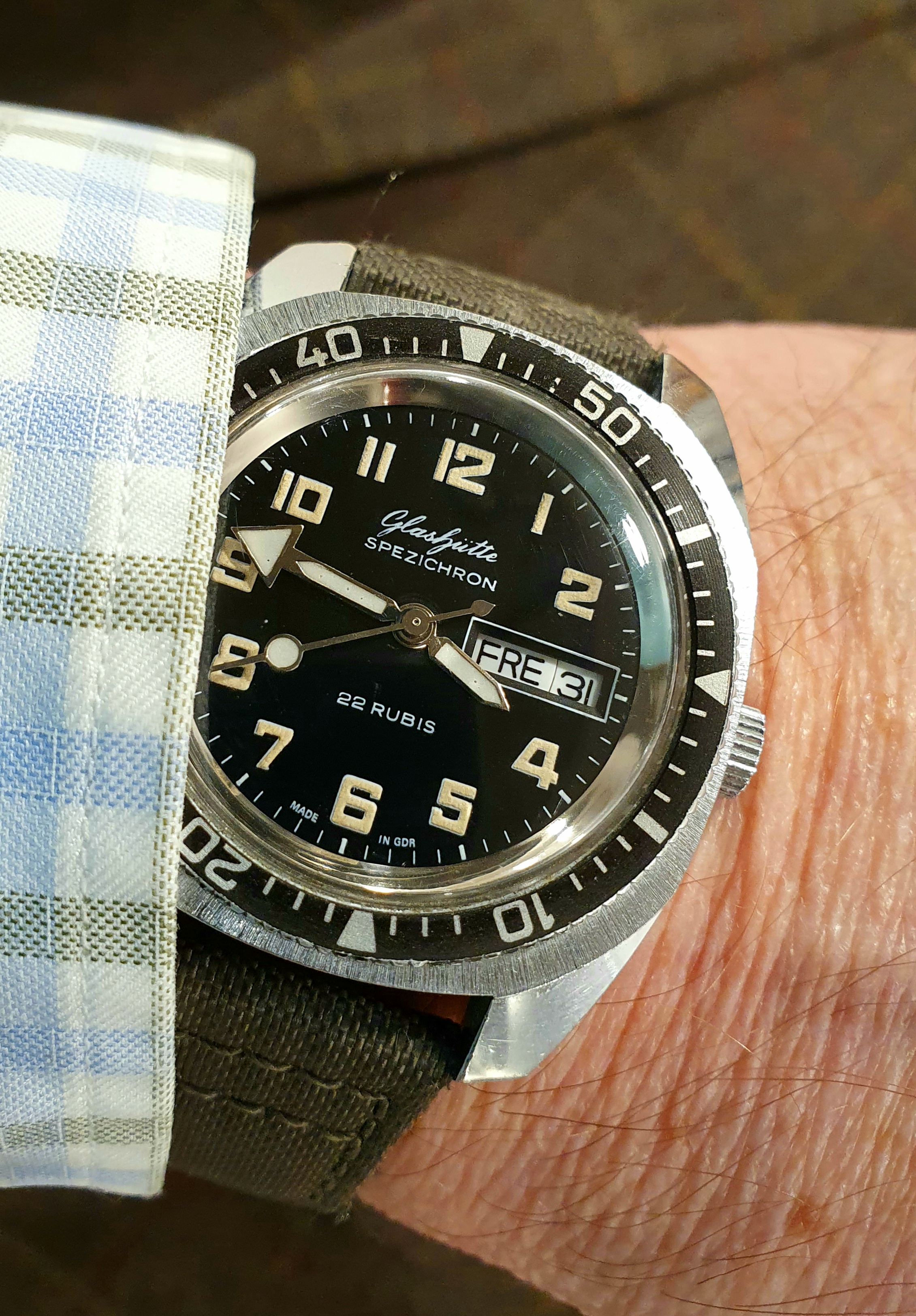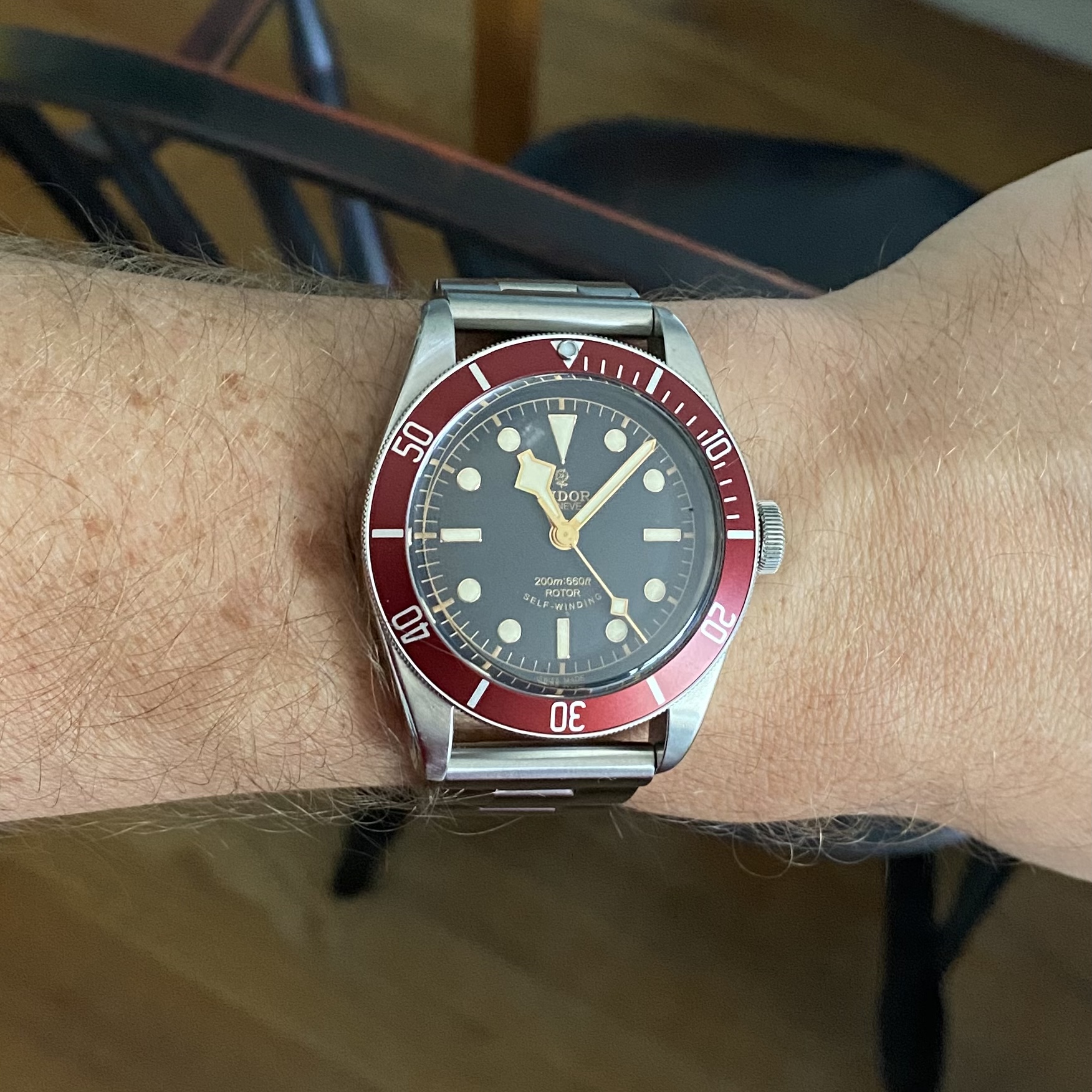 With tritium having a half-life of 12.3 years, I calculate that my watch has only 18.4% of its original luminosity. This seems about right, as it's pretty dim in the dark 😀