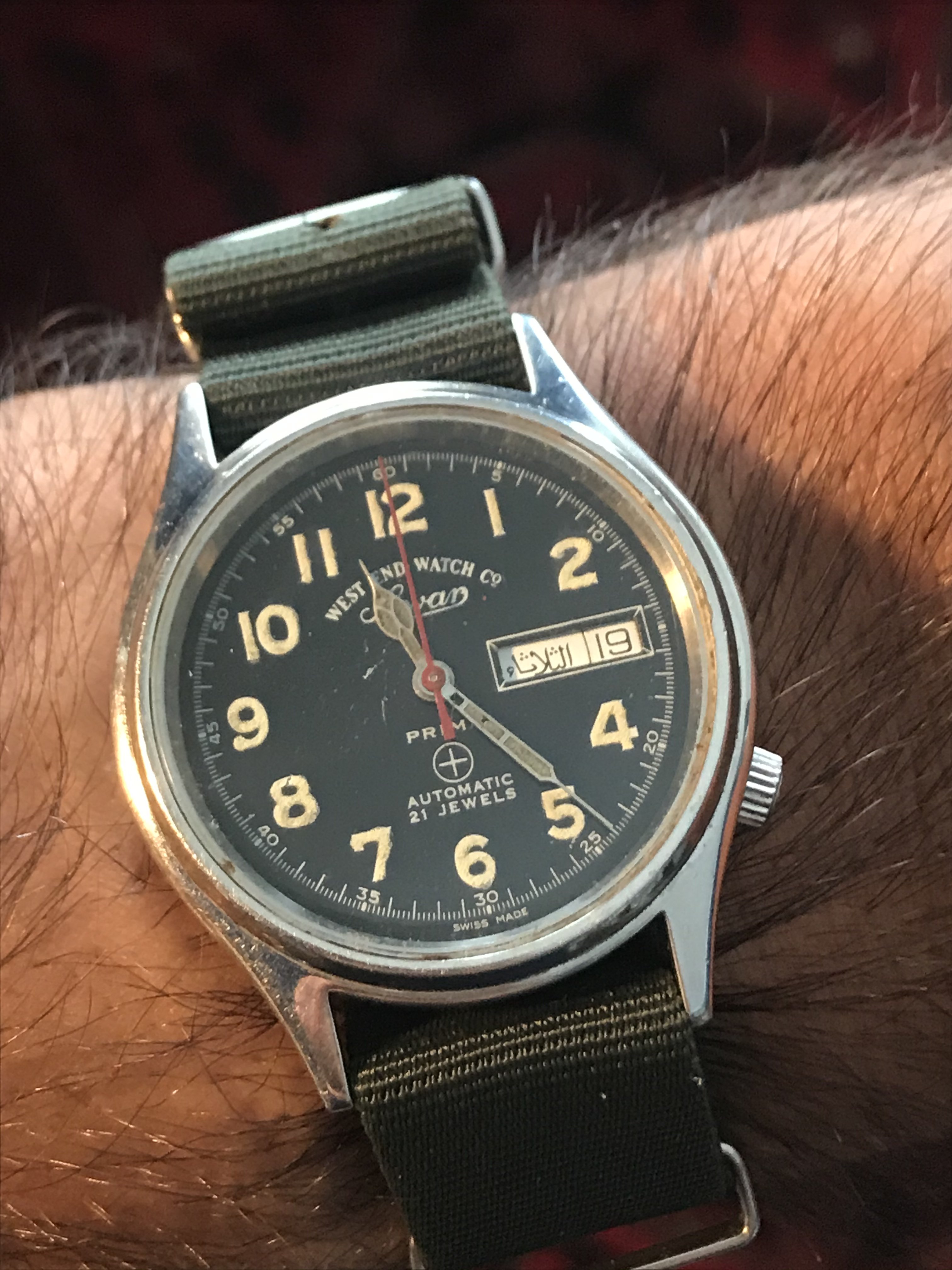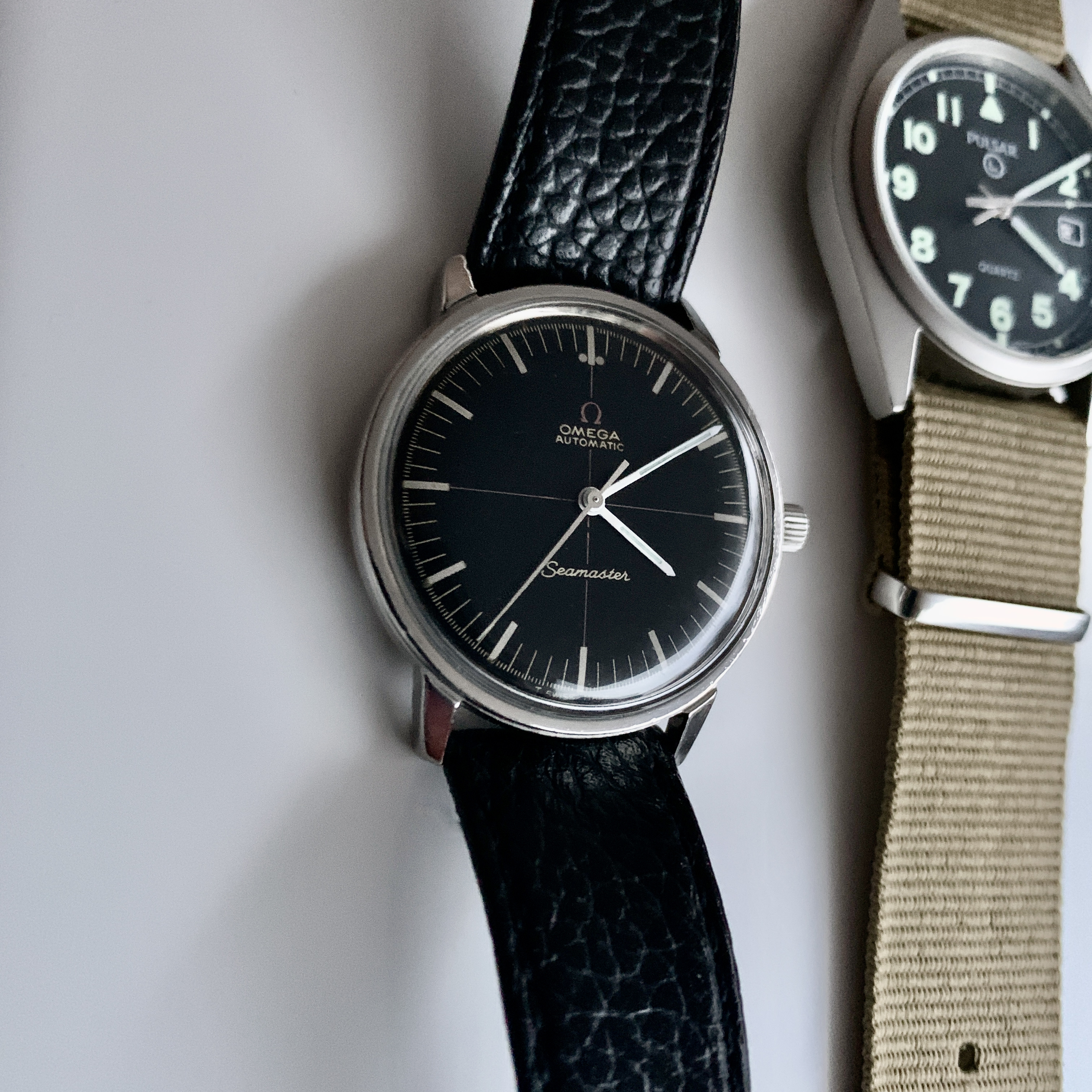 The 1960’s Belair Seapearl 600 - cal. PUW1363 with its unique day-date windows shares the same case manufacturer with the famous Seiko 62MAS, including its bezel. Sadly, many have been molested and bezels removed and used to restore the Seiko. This one is a near NOS survivor of this cool vintage diver. Also pictured - 1967 Seiko 6217-8001 - cal.6217A.