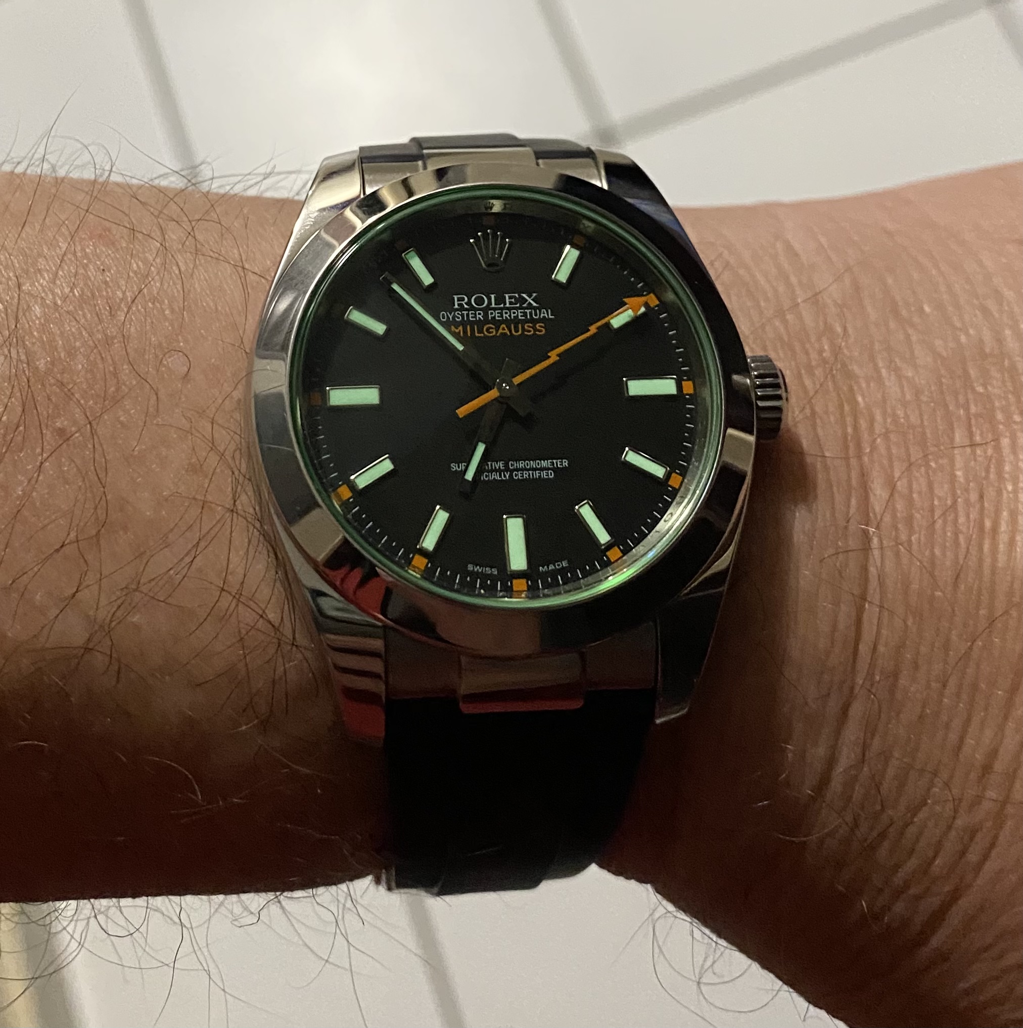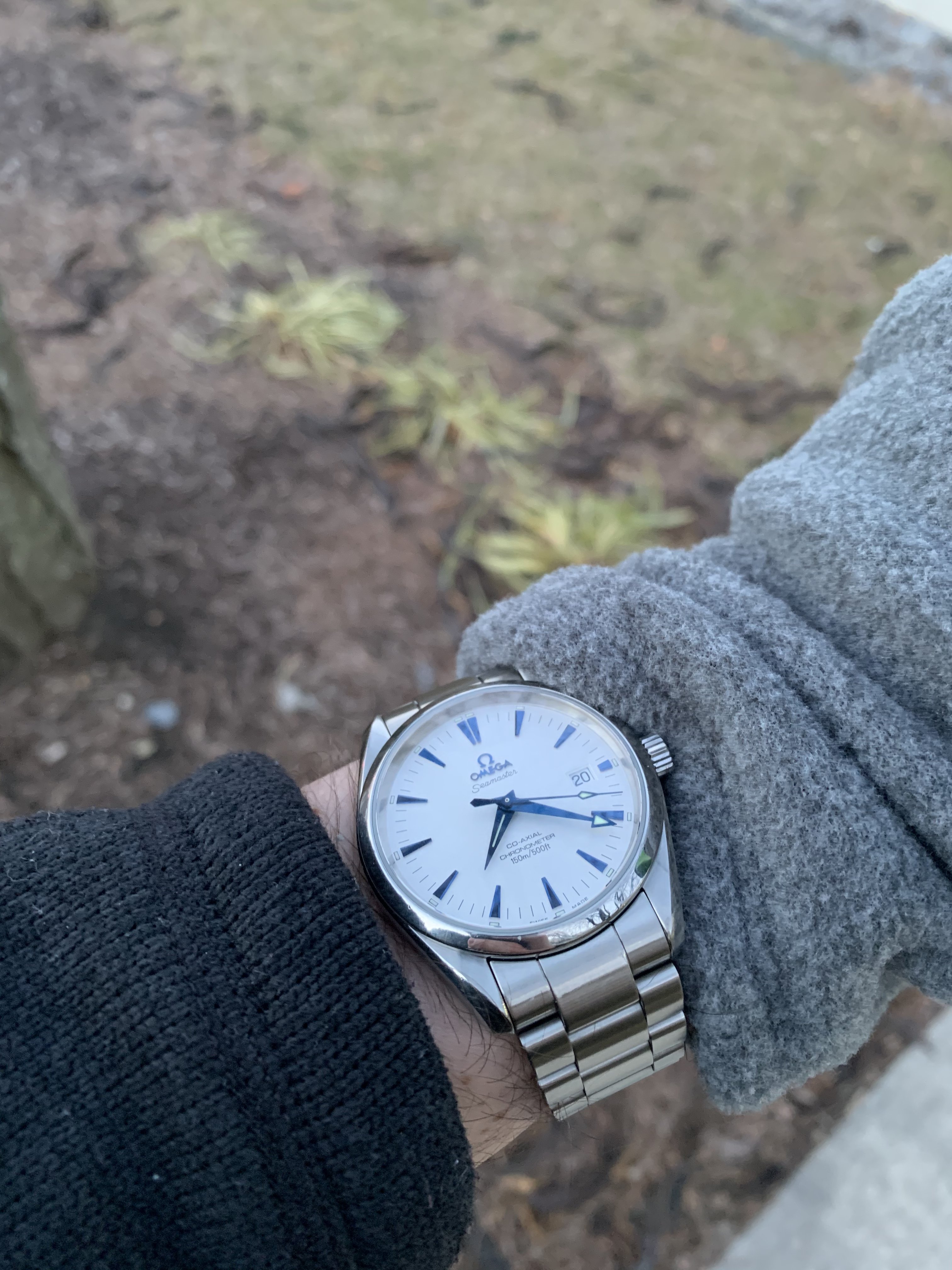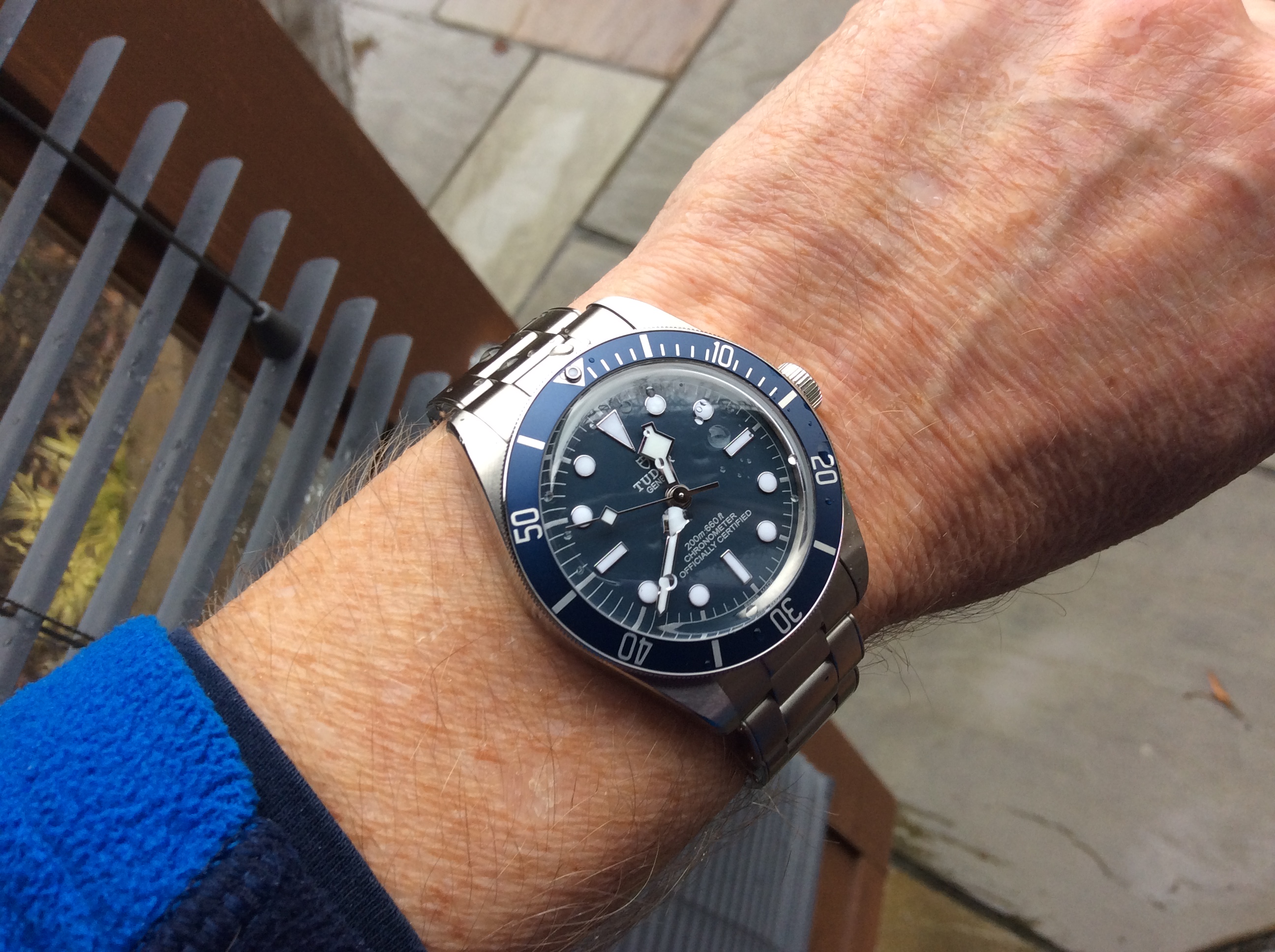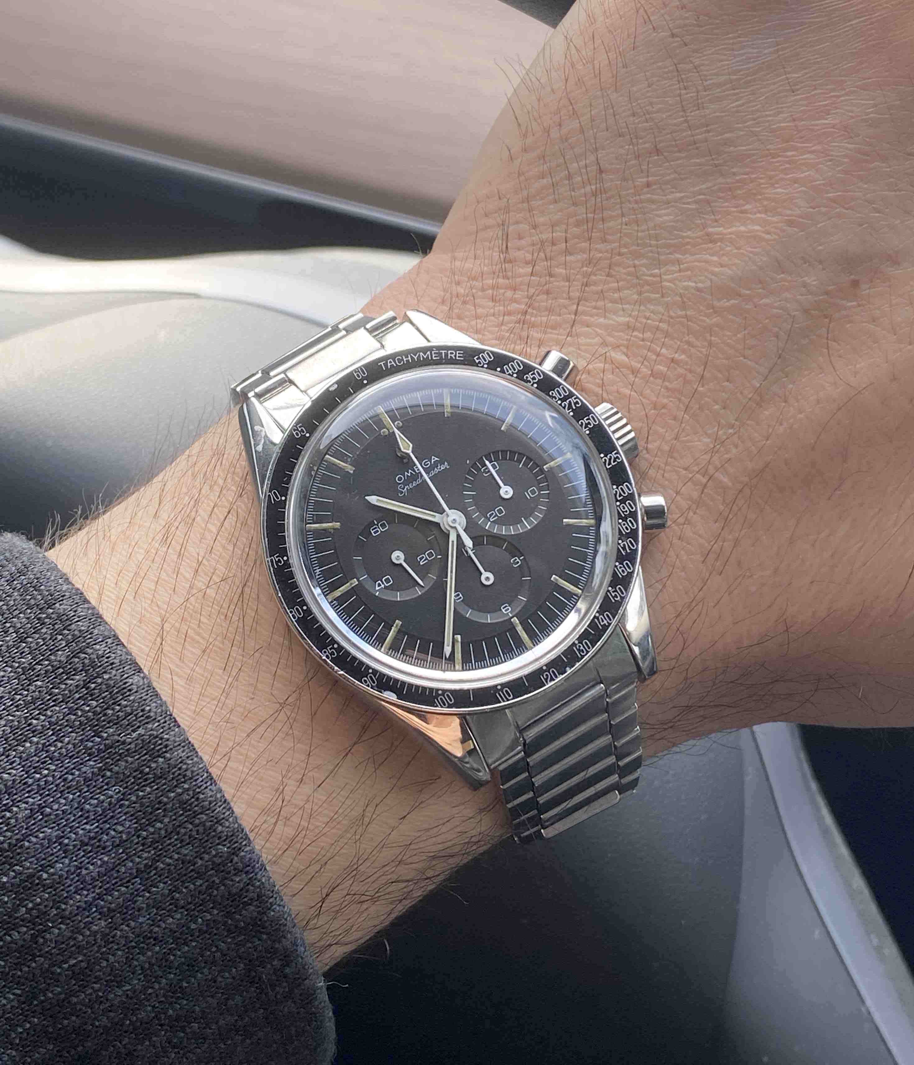 Big fan of Alain Silberstein's style, a blast of fun in the face of the staid Swiss in the 90's. This is a Kronomarine (200 m WR) from 1994 which I picked up on eBay about 10 years ago as NOS when Silberstein closed up shop. Came packed in all its original architect style packaging with metal and leather strap and COSC certificate. These are bright and colorful and are very well made, this one with a Valjoux 7751 movement, 500 pcs made. Silberstein was one of the pioneers in using PVD coating on cases, bracelets and movements.