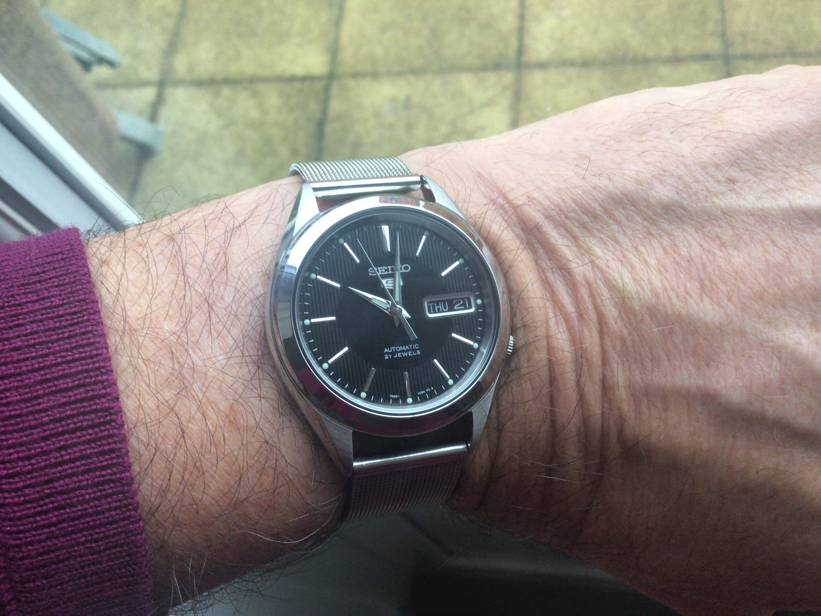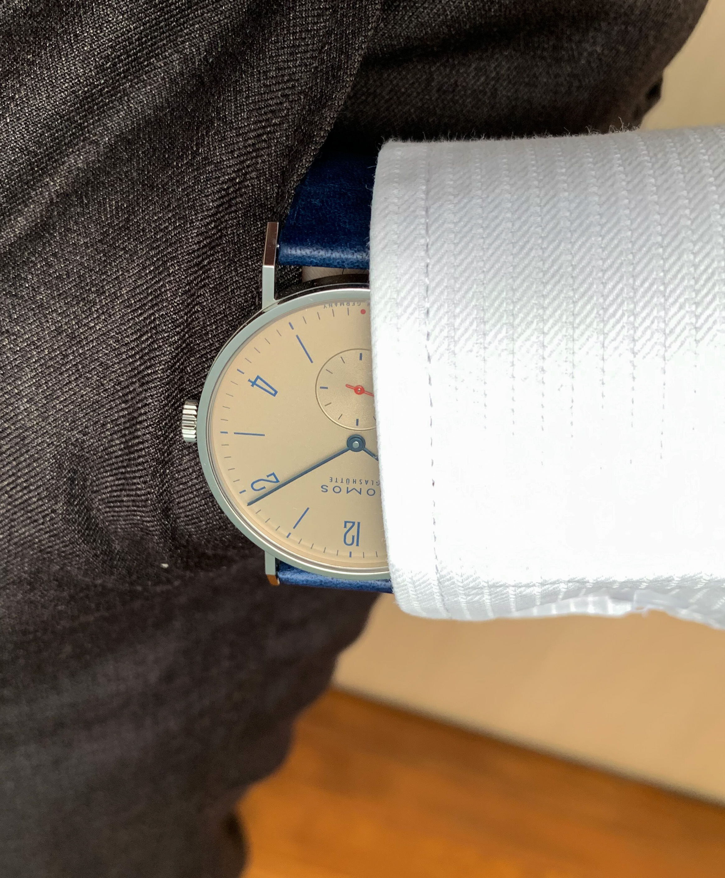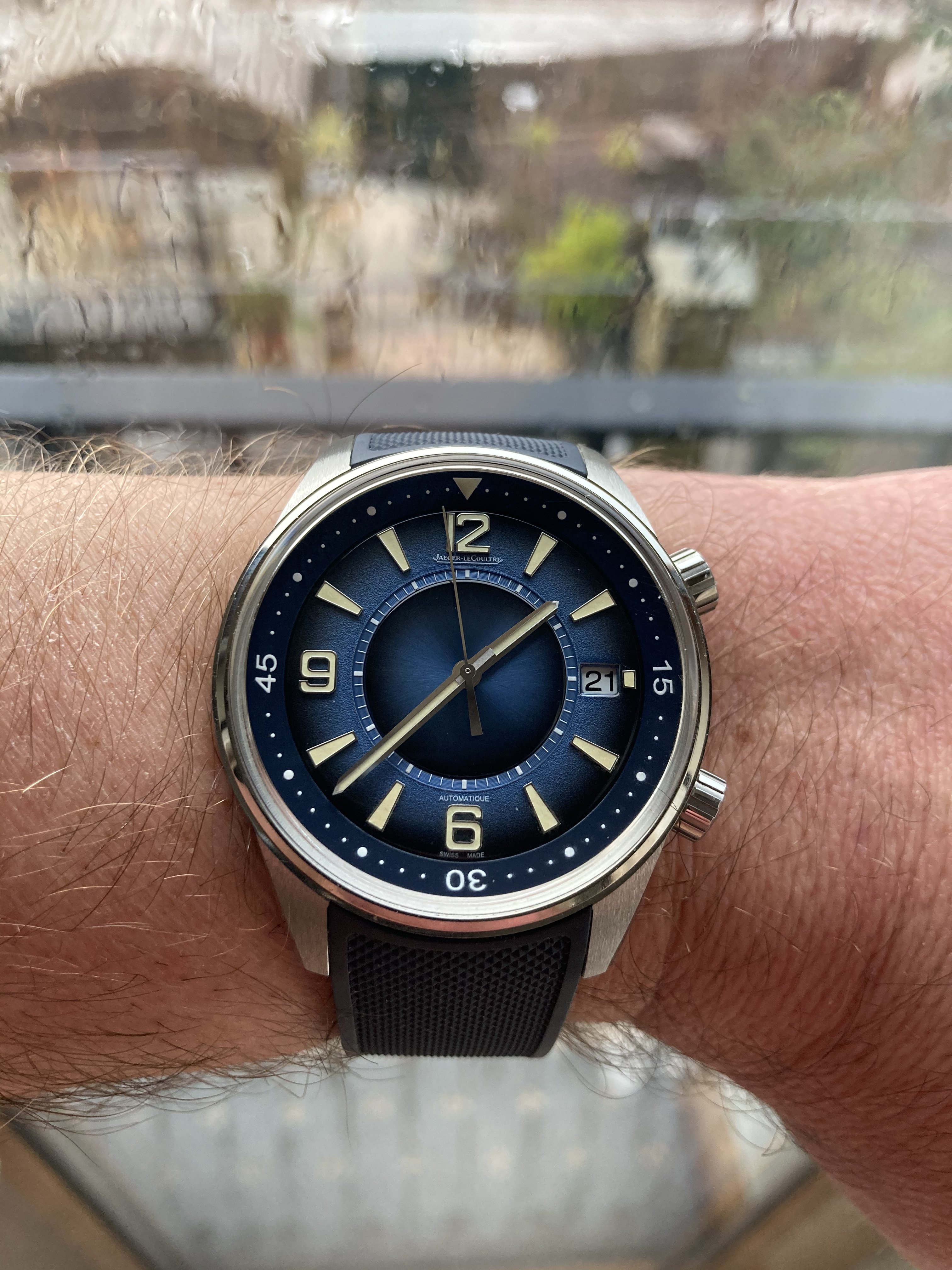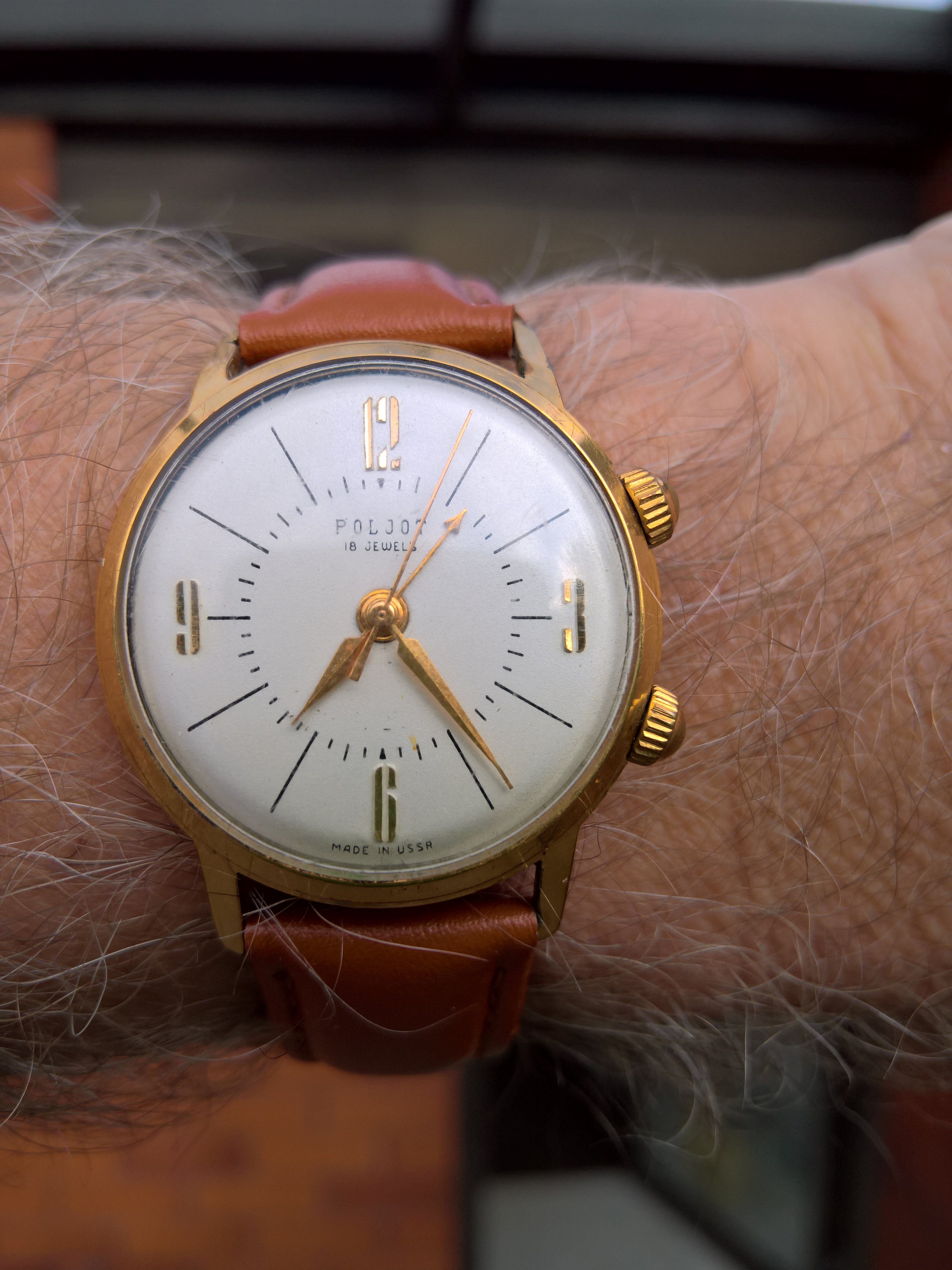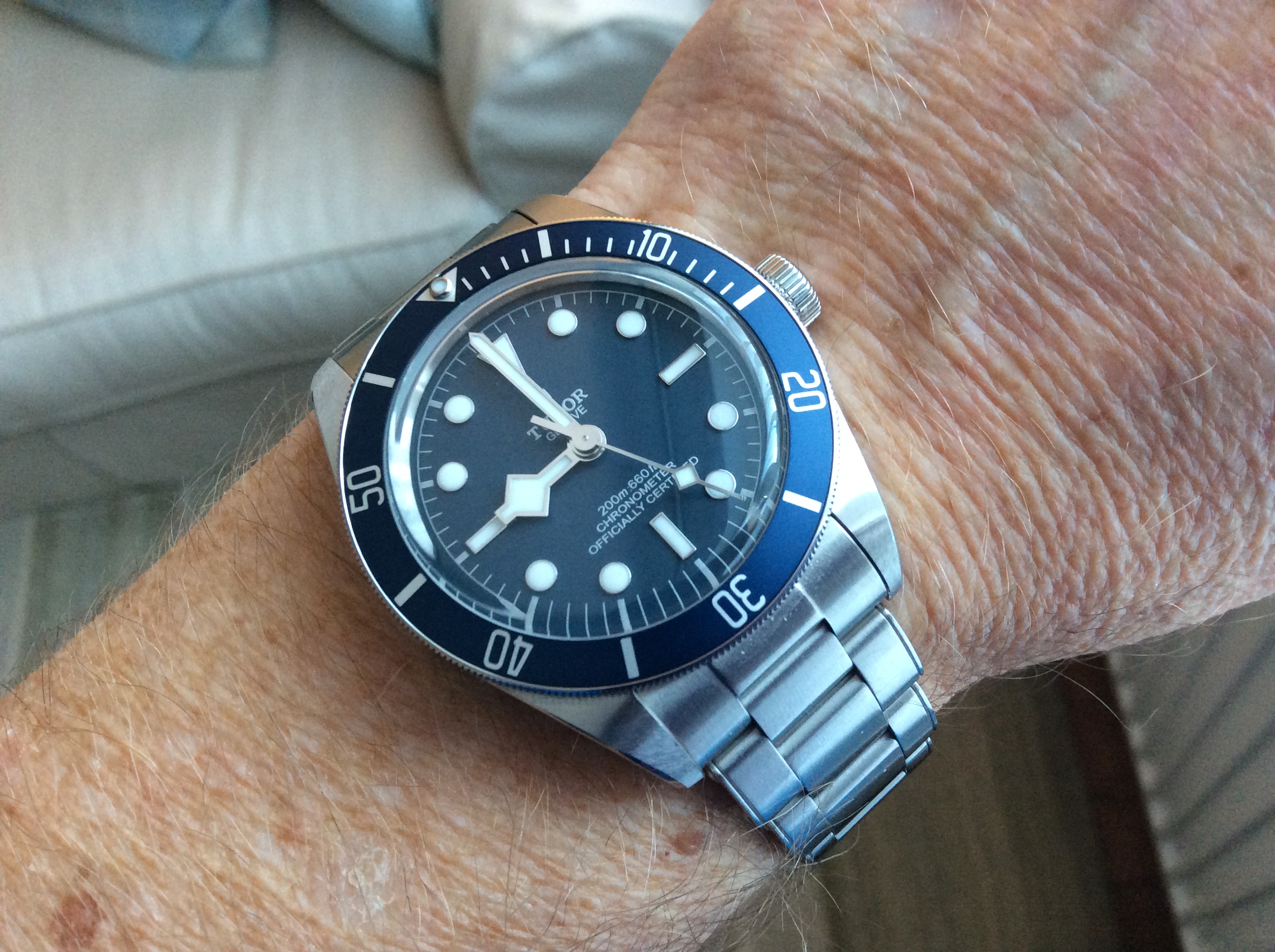 Hi, the cal 910 FMs are 43 x 52 x ~15mm with the cal 911 being at least 1mm thicker. Here it is next to my 42mm Moonwatch. The pilot case with hooded lugs has a lot of steel making it a 139g head vs the Speedy's 97g. 46% heavier! The odd thing is the FM's dial is a bit smaller. And if you disregard the contrasting white racing chapter ring, the remaining part of the dial is REALLY smaller. The hands are correspondingly shorter too. So it feels big and chucky on the wrist but the time telling part of the watch is visually smaller. Despite the busy dial, the all-white hands preserve excellent at-a-glance legibility, imo. I personally luv the watch’s character and it's become one of the anchors of my collection…YaY!