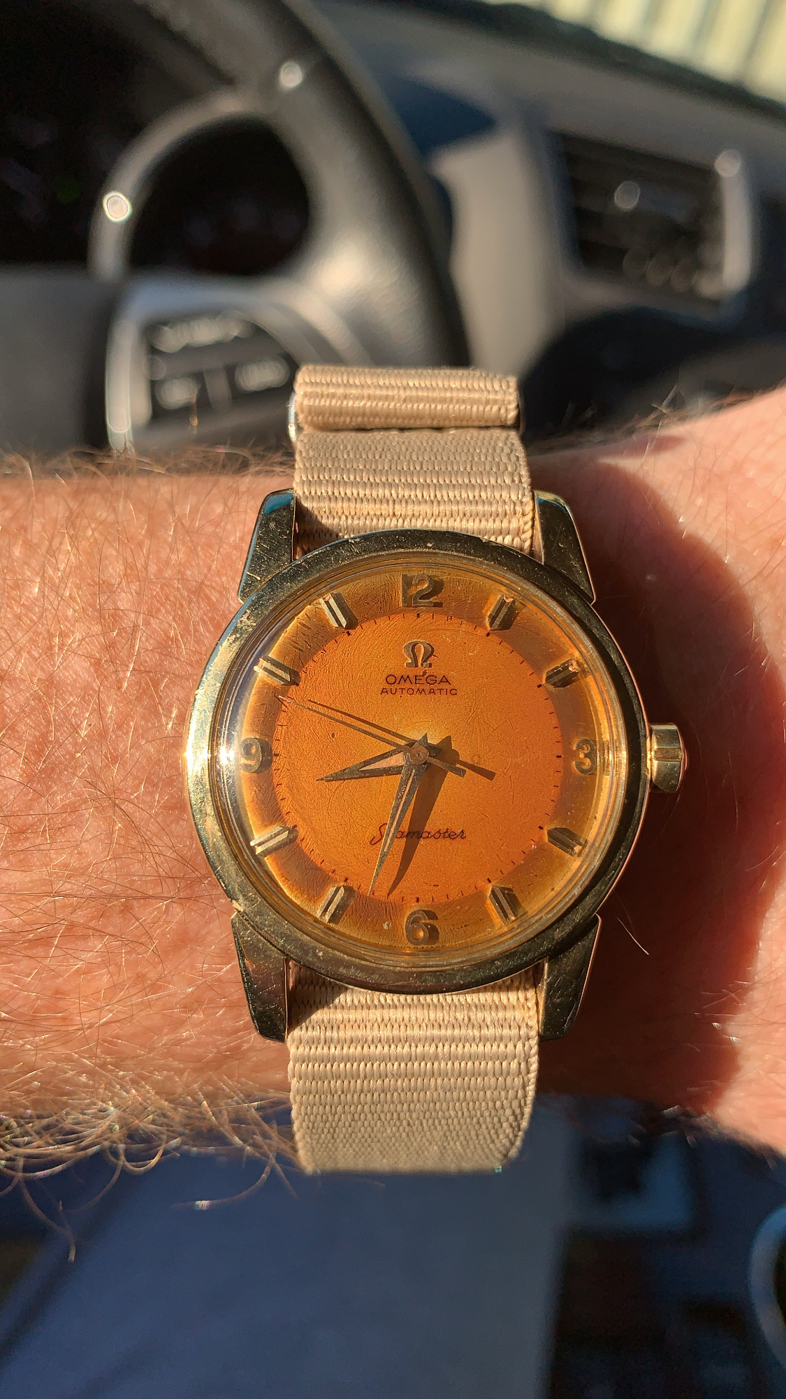 Posts 1,966 Likes 9,418 140dave ·Jan 22, 2021 Back to the ‘69 today, love the tone the dial has developed over the years. Not quite brown but I think it’s super attractive.