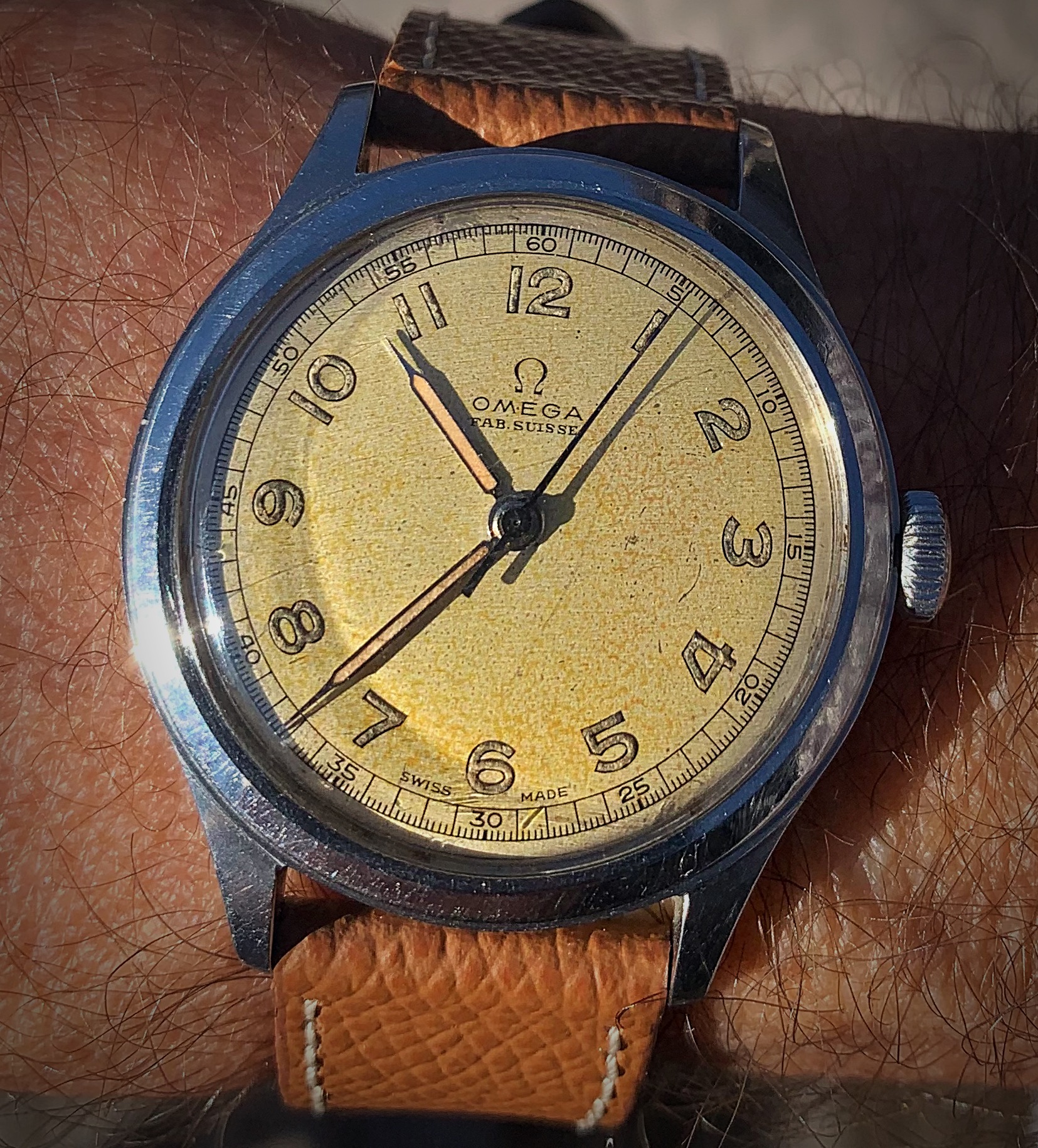 Posts 7,293 Likes 76,575 dougiedude ·Jan 22, 2021·Carpe horologium! Sunny day, sunny Omega! #FabSuisse My basking 1944 ref. 2179-6 cal. 30T2SC