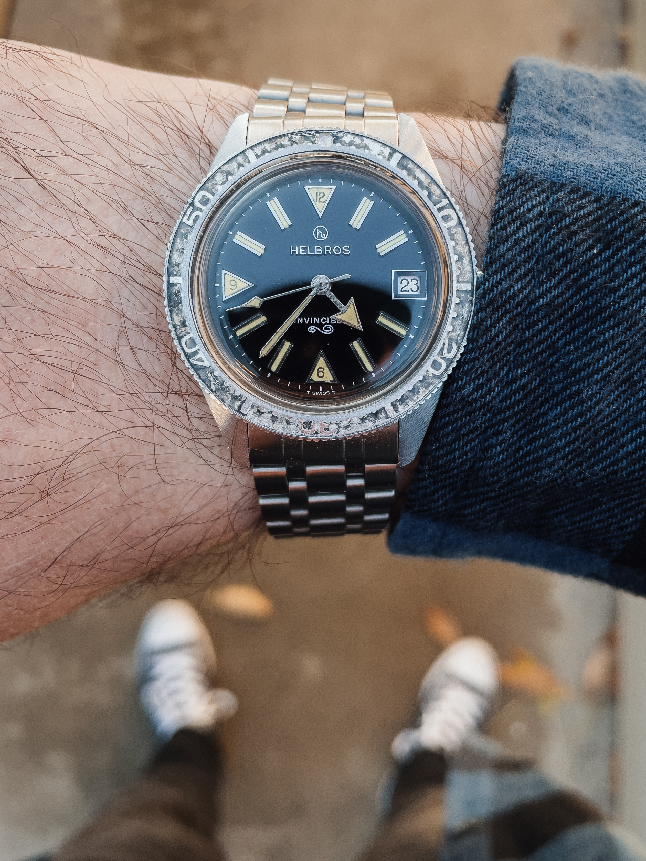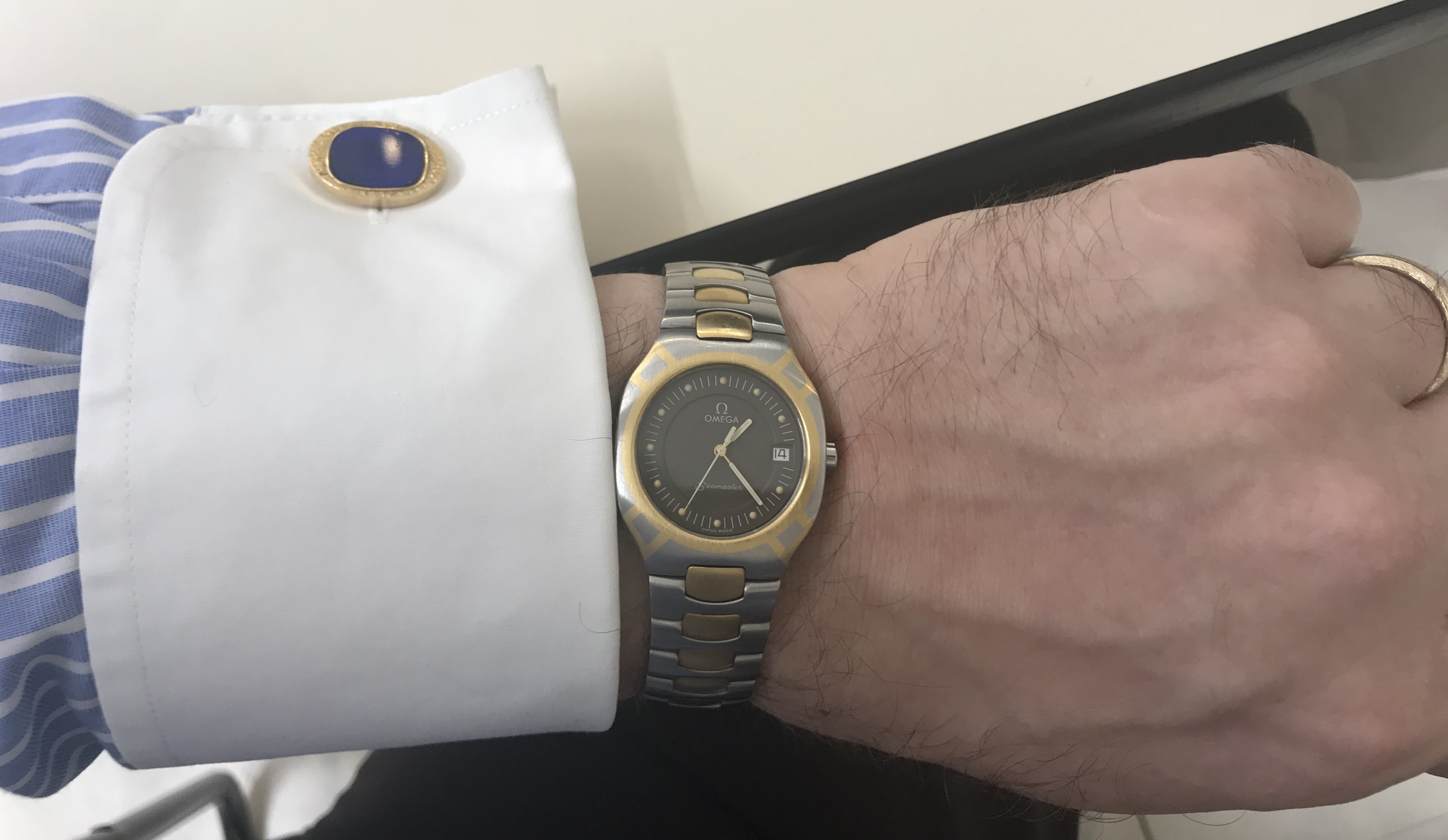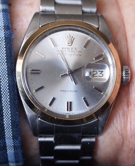 This one today, and for a long term test. My mid-1950s, grade 1623 (1952, one of approx 50,000 made, this one from the second last run of 15,000) 23-jewel Waltham Vanguard which may have had one year of use in its 68 years of existence. I am the third owner, and I have used it rarely, and I doubt that either of the first two owners used it at all. @DaveK .