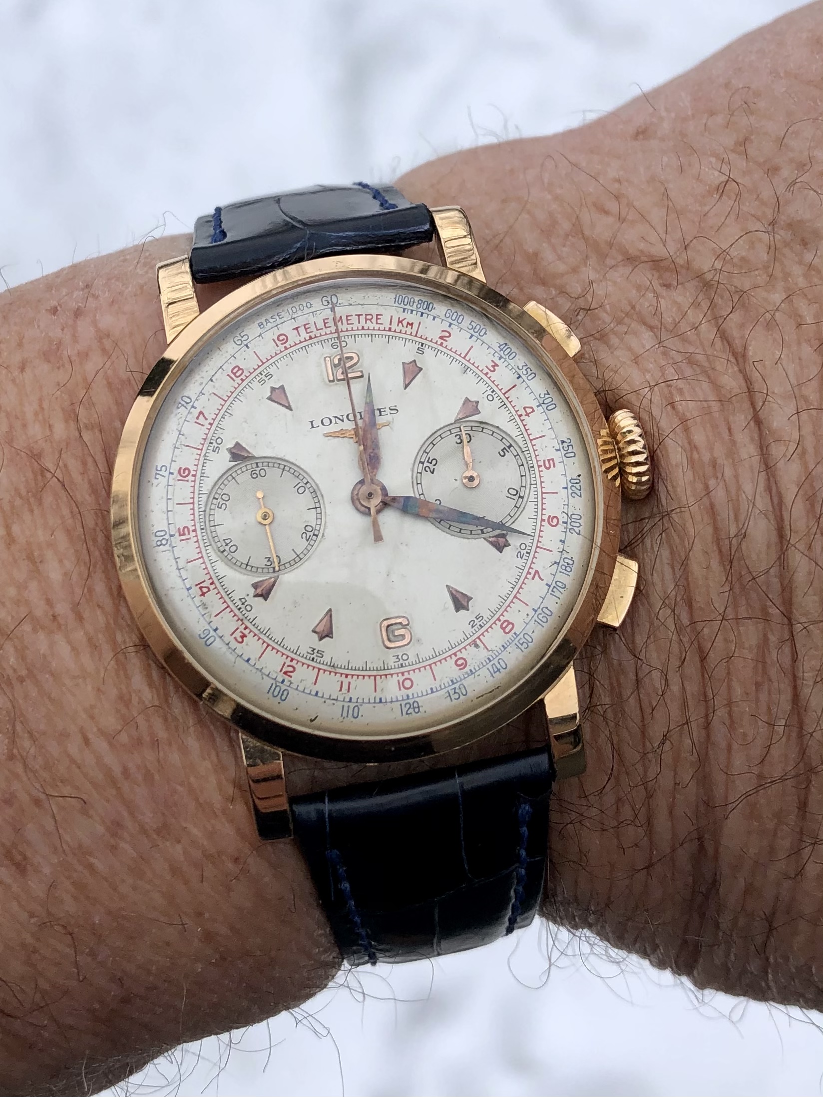 Posts 663 Likes 4,772 yvrclimber ·Jan 25, 2021 Neo-vintage? 2004 JLC Master Compressor Memovox on stingray. Been a mild winter, but we got snow yesterday. So much better than rain, rain, rain, rain.
